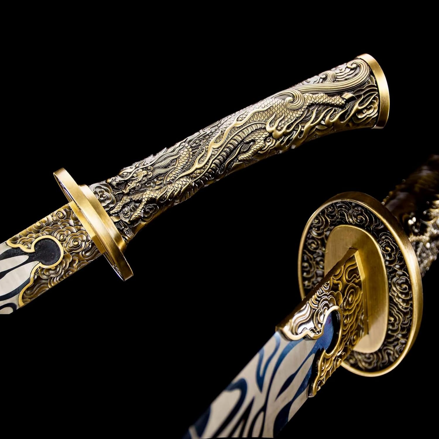 【Artigianato tradizionale】: questo coltello si basa sul tradizionale fabbro e il processo di forgiatura segue rigorosamente metodi antichi. Il bell'aspetto e le linee morbide sono il risultato degli sforzi del fabbro. Ogni katana porta con sé l'essenza dell'artigianato tradizionale. 【Buon materiale】: la lama è realizzata in acciaio al manganese ad alte prestazioni ed è realizzata con cura attraverso dozzine di processi. La maniglia e la protezione sono realizzate in metallo di alta qualità con intagli squisiti. Il fodero è realizzato in legno naturale, avvolto in pelle e decorato con metallo intagliato. L'intero coltello è molto bello e pieno di peso. Dimensioni: lunghezza totale 85,5 cm, lunghezza lama 58,5 cm, lunghezza impugnatura 23 cm, larghezza lama 4,35 cm, spessore lama 0,5 cm, peso ca. 2350 g (1350 g senza fodero). [Utilizzo]: perfetto per regali, giochi di ruolo, collezioni, decorazioni per la casa, esposizioni, regali di Natale, Halloween, feste in costume, oggetti di scena, autodifesa, ecc. [Informazioni storiche]: la Cina ha una lunga storia! La cultura cinese è ampia e profonda! Essendo una delle quattro antiche civiltà, la Cina è anche leader mondiale nella tecnologia di fusione delle spade. Questo coltello ha profondi significati storici e culturali. Non è solo un coltello pratico, ma anche un'opera d'arte dal valore collezionistico estremamente elevato.