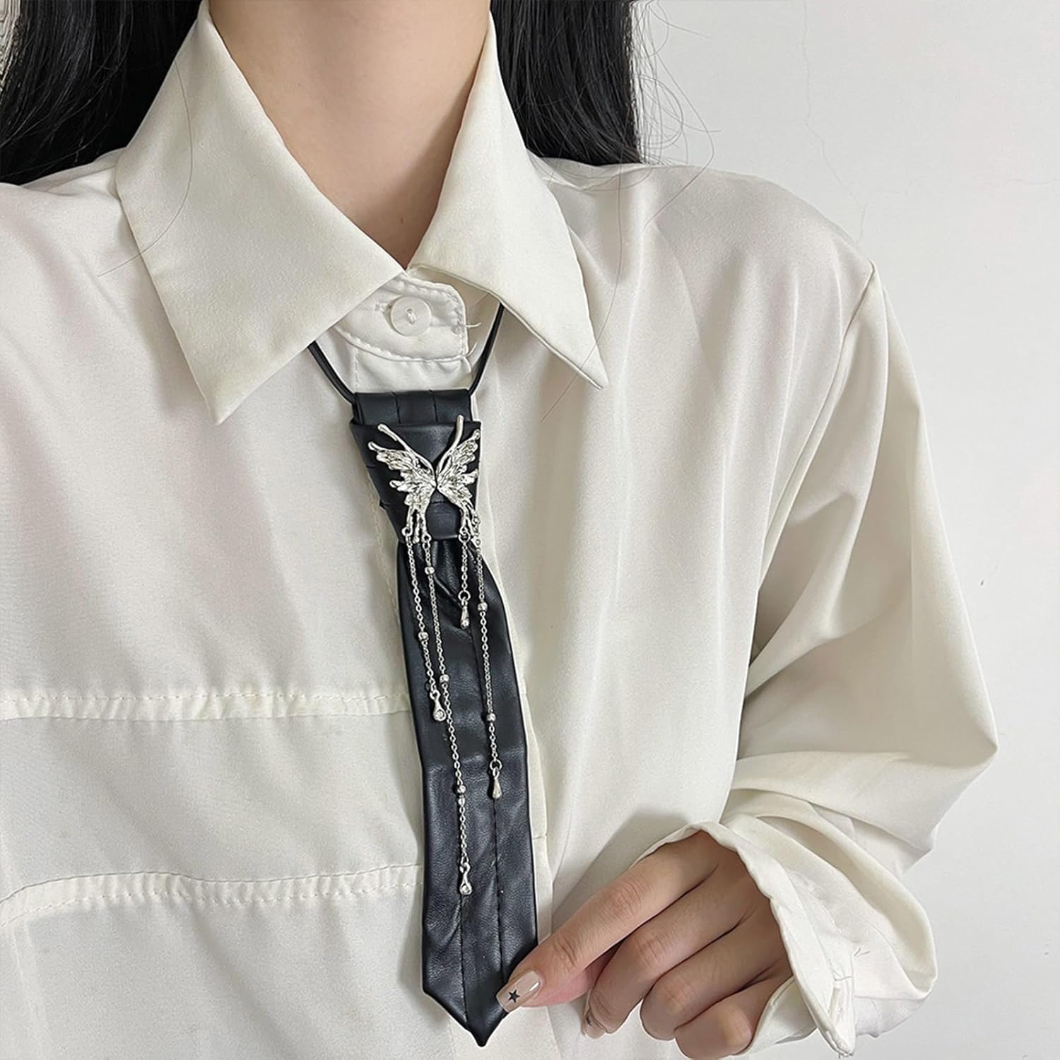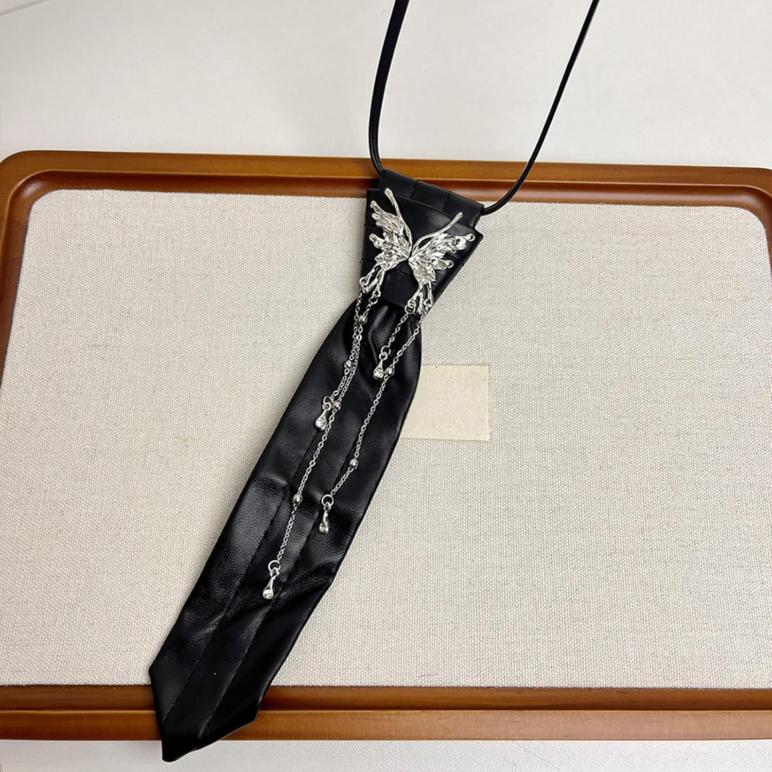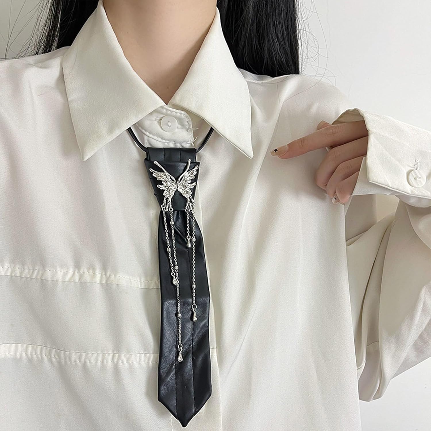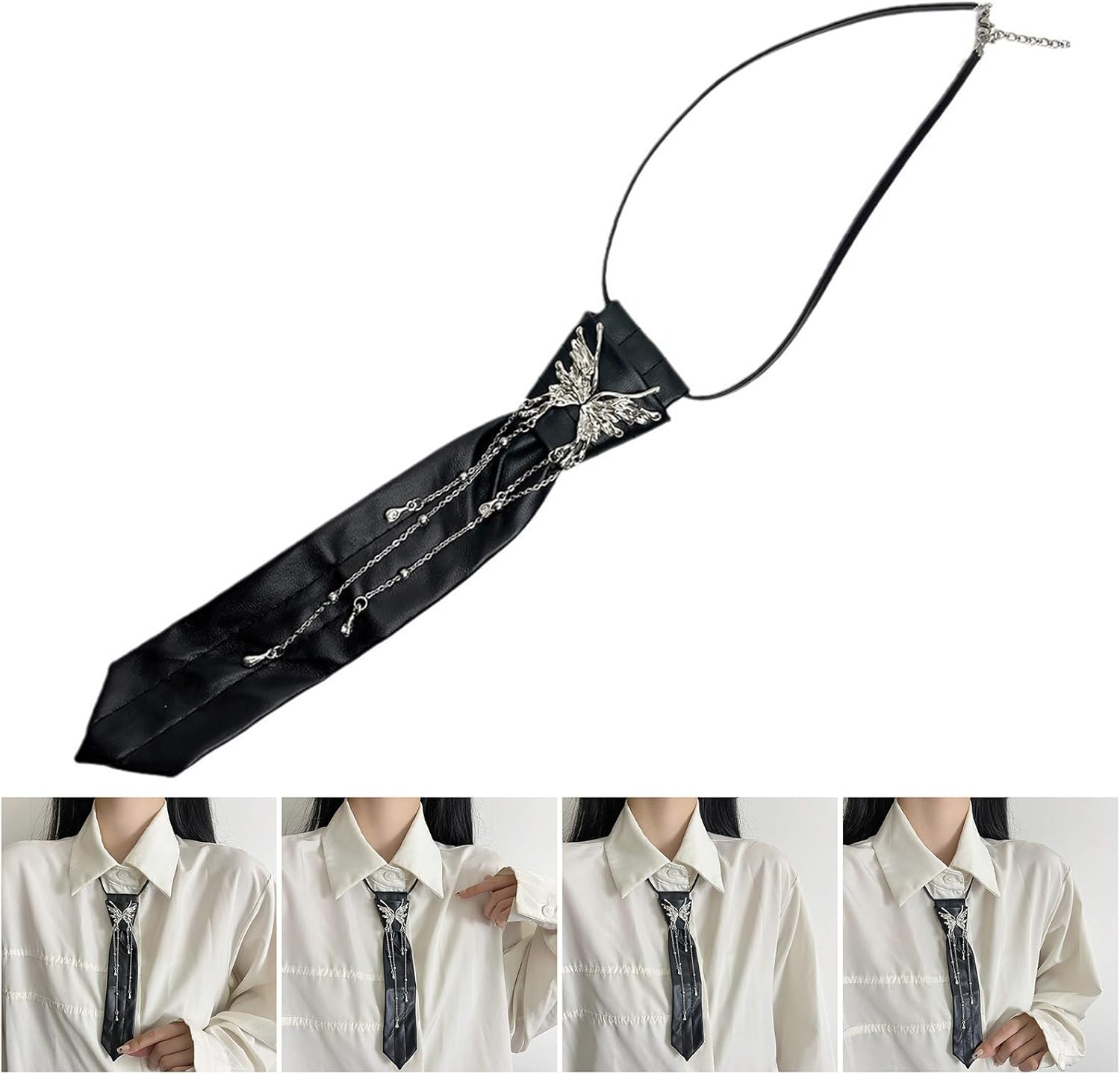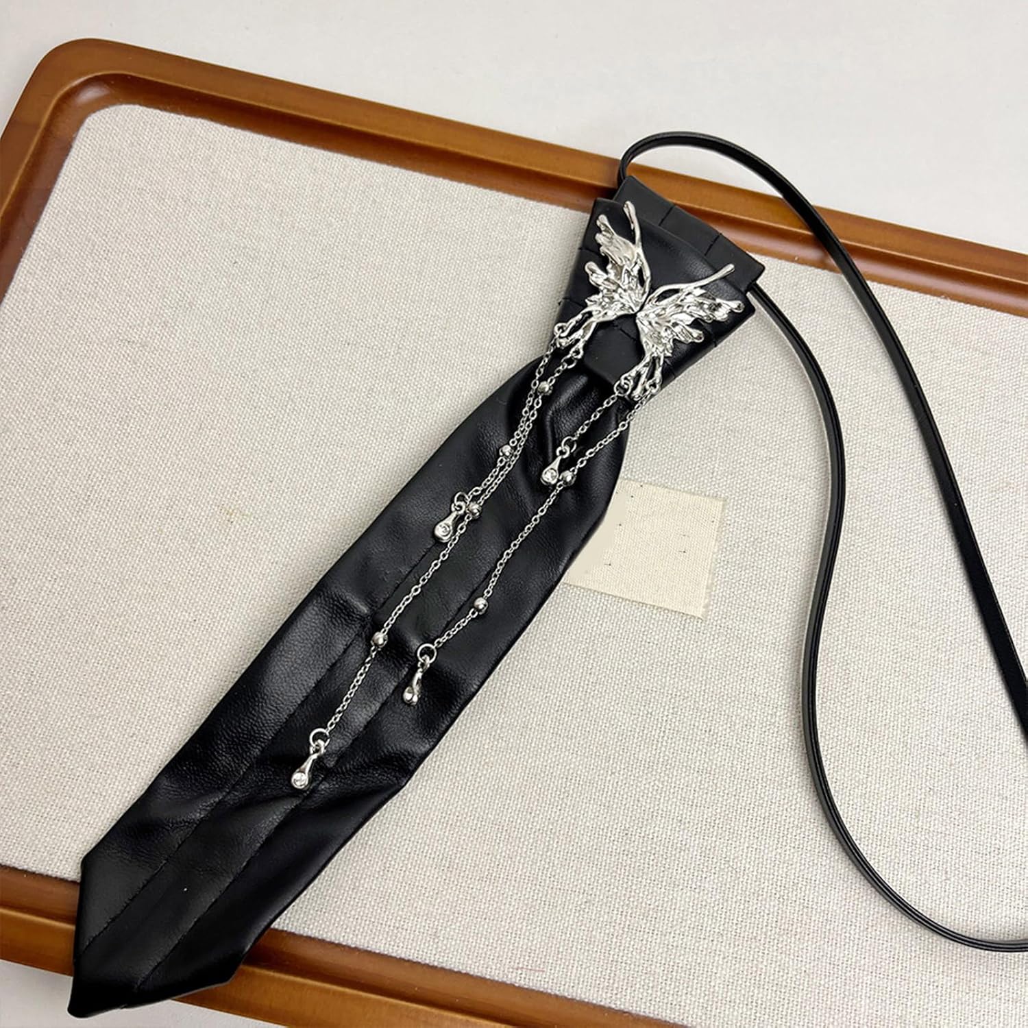 Comoda collana a forma di farfalla, cravatta alla moda, tessitura, accessorio gotico per feste scolastiche ed eventi a tema. Caratteristiche del prodotto: Scopri l'estetica scura unica della farfalla squast. Realizzato in poliuretano. Questa collana è progettata per combinare perfettamente lo stile preppy con la moda moderna, per una sensazione confortevole. Questa collana è adatta per giovani donne e studenti che cercano individualità e preferiscono uno stile JK uniforme o uno stile preppy. Adatta per l'uso quotidiano nel campus, incontri sociali o feste a tema, questa collana migliora l'aspetto generale e aggiunge un tocco di raffinatezza a qualsiasi occasione. Aumentando la tua collezione di accessori con questo versatile pezzo che enfatizza sia l'eleganza che il bordo, è un'aggiunta essenziale per chi apprezza il gioiello eccezionale. Caratteristiche tecniche: Texture : PU Dimensioni: circa 20 cm. Contenuto della confezione: 1 cravatta. Nota: Si prega di considerare un margine di errore di 1-2 cm nelle dimensioni a causa della misurazione manuale. A causa delle diverse impostazioni dei monitor, l'immagine potrebbe non rispecchiare il colore reale dell'articolo