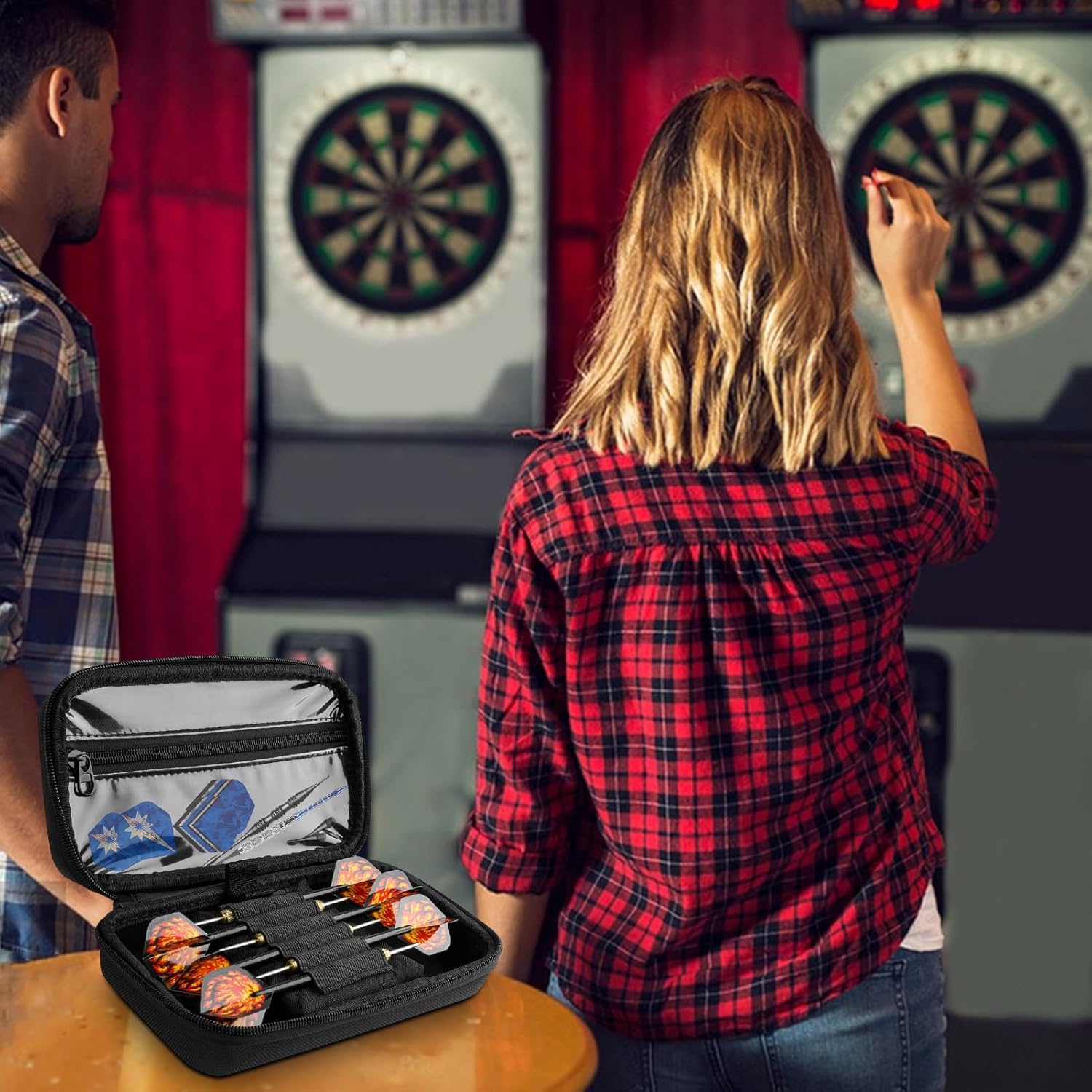 Protezione perfetta: la nostra custodia offre una robusta custodia in EVA e una fodera in velluto felpato che garantisce una cura impeccabile dei tuoi consigli morbidi e accessori. Resistente all'usura e alla deformazione promette una buona durata e un tocco morbido e mantiene la vostra attrezzatura in condizioni perfette. Accesso modernizzato: mantieni i tuoi suggerimenti morbidi al sicuro e nella nostra custodia con 6 fasce elastiche in posizione. Riparano e recuperano facilmente senza preoccuparsi di errori o danni durante il transito. Spazio sufficiente: consente di memorizzare facilmente fino a 6 consigli morbidi in 1 custodia compatta. Con una tasca per accessori per ali e altri piccoli oggetti, questa custodia è perfetta per mantenere tutti i tuoi oggetti di freccette organizzati e pronti. Portabilità Conceentg: questa scatola unica con una comoda impugnatura è sapientemente progettata per freccette professionali e si adatta facilmente a zaini o valigie per garantire che le freccette siano protette con punte in acciaio e morbide e pronte ovunque ti porti il gioco. Regalo perfetto: colleziona la persona amata, i colleghi e gli amici con questa custodia di qualità che contiene diverse marche e tipi di freccette. Aggiungi fascino alla tua casa, al negozio o alla tua sala giochi con questo regalo perfetto per gli appassionati.