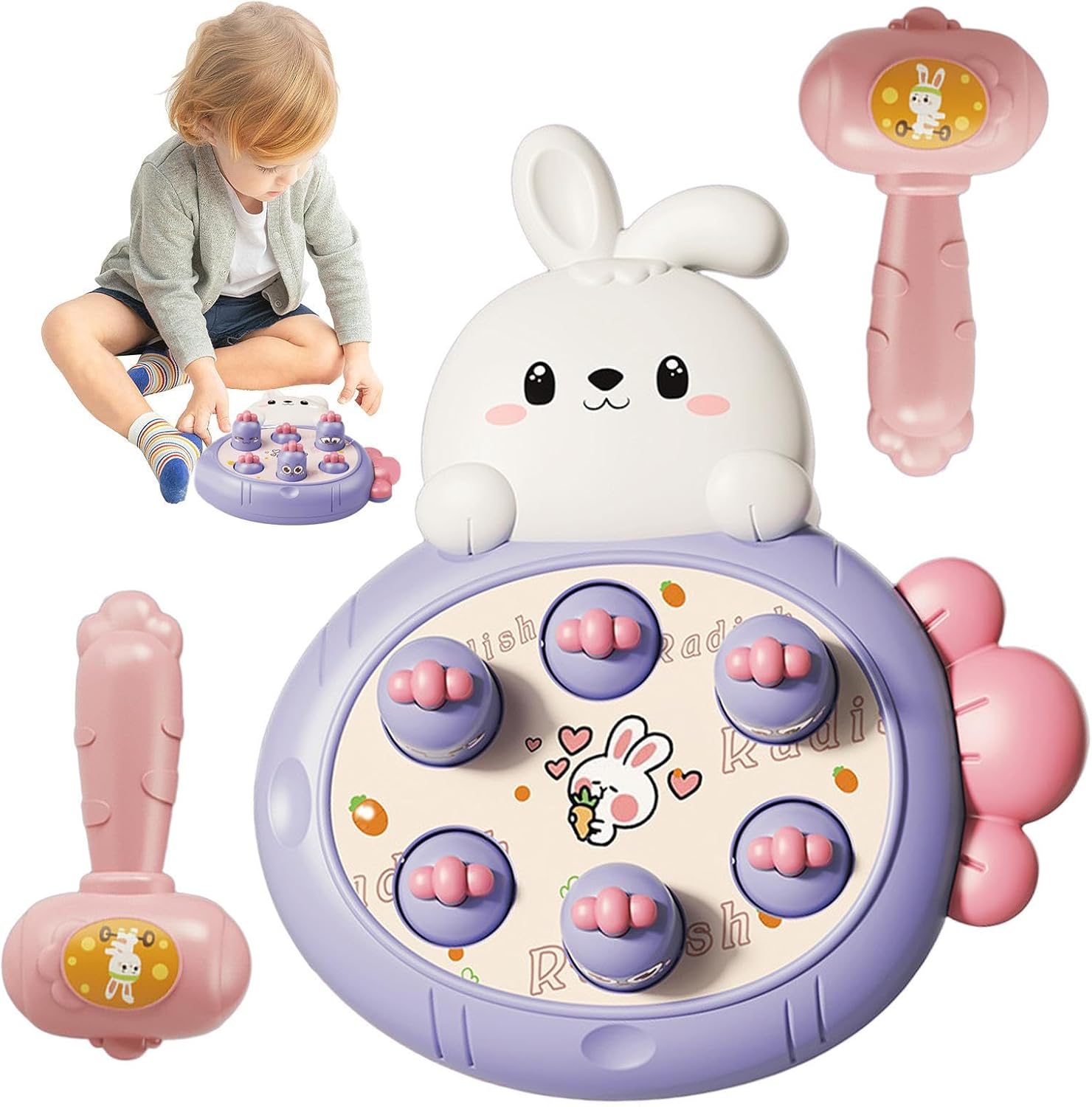 Eccellente giocattolo educativo: Mole Game for Kids aiuta a migliorare la concentrazione e la coordinazione occhio-mano dei bambini e farli monitorare il gopher lampeggiante. Gioca con i tuoi bambini: Whack-A-Rabbit è il giocattolo interattivo perfetto per bambini e adulti per divertirsi insieme e competere per il punteggio migliore. Gioco sicuro: ha bordi lisci e martelli morbidi e abbiamo utilizzato materiali ispessiti durante la produzione perché sappiamo che vuoi solo il meglio per i tuoi bambini. Forte potenza di aspirazione: il gioco di Wackamole per bambini ha una base stabile grazie a forti ventose per evitare che scivoli sul tavolo durante la pigiatura. Che può essere assorbito sul desktop o sulla parete liscia. Ottimo regalo per bambini: questo giocattolo per bambini è la scelta ideale come regalo per feste di compleanno, feste di famiglia o intrattenimento all'aperto al chiuso con i genitori. Sicuramente lo adoreranno!