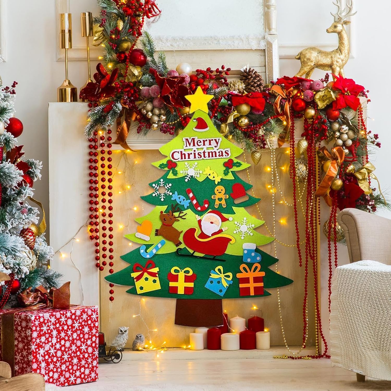Stimola la creatività: regala ai bambini un gioco creativo unico per i bambini. Con il suo effetto 3D e il design carino, è una decorazione accattivante per la stanza che stimola l'immaginazione Divertimento adatto ai bambini: con feltro di alta qualità, il nostro – offre ai bambini un'esperienza di bricolage sicura e divertente e allo stesso tempo promuove uno stile di vita ecologico Divertente attività familiare: Rendi indimenticabile questo periodo natalizio con il nostro - per bambini. Con oltre 20 toppe colorate, tra cui regali, fiocchi di neve e caramelle, è possibile personalizzare il posizionamento di ogni toppa per creare un'attività divertente e interattiva con i vostri bambini. Ampiamente utilizzato: questo è perfetto per qualsiasi stanza, dalle aule agli hotel ai salotti. L'uso versatile in diverse occasioni garantisce un'atmosfera di vacanza unica che tutti possono godere Ottima scelta regalo: questo albero in feltro è ideale come regalo di Natale, perché promuove il contenuto della famiglia e stimola la creatività dei bambini giocando in modo emozionante e pratico