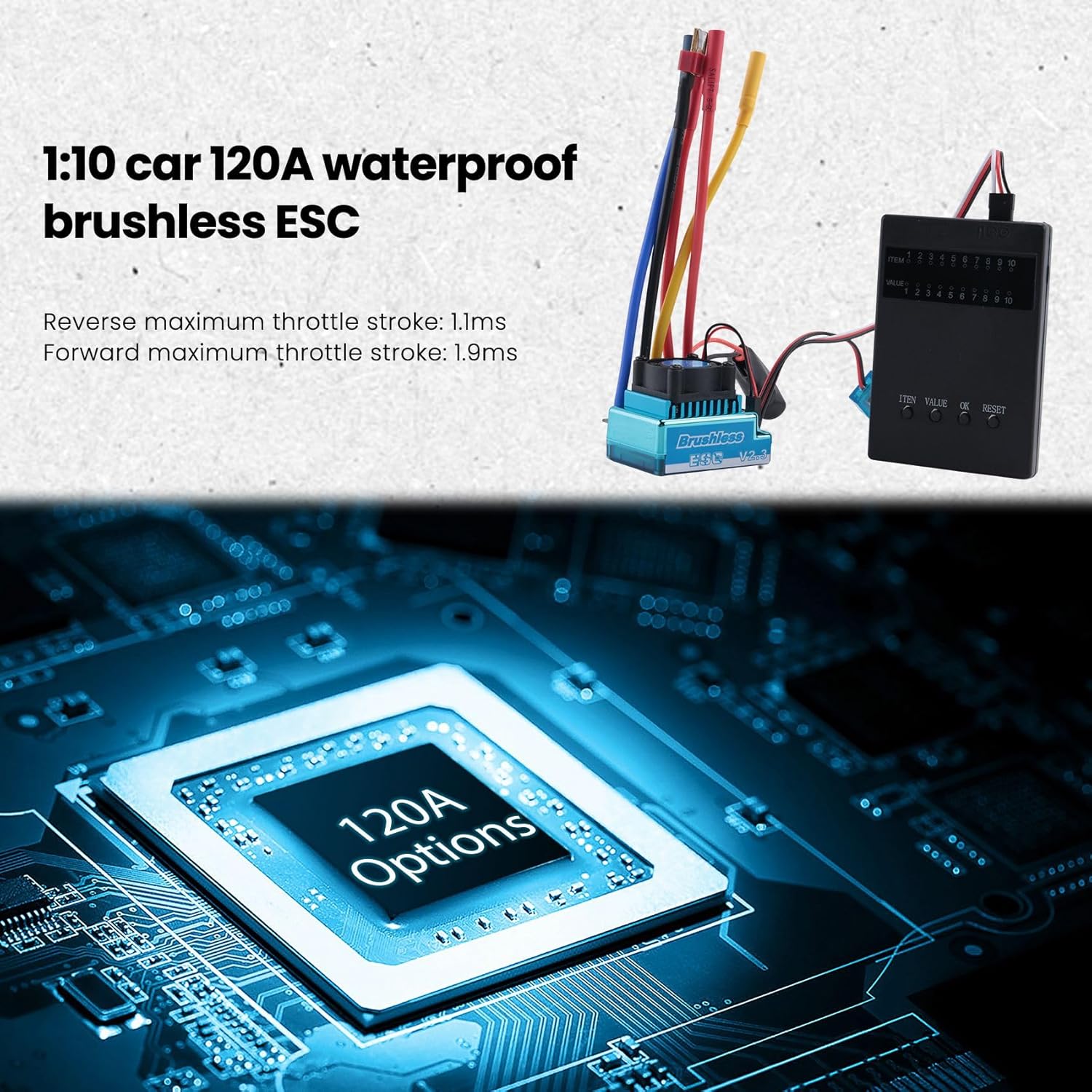 Impermeabile, antipolvere, adatto a tutte le fonti meteorologiche. Componenti elettronici di alta qualità aumentano la durata attuale di ESC. I materiali di alta qualità gli conferiscono un'elevata resistenza alla corrente. Potente durata attuale e funzione di uscita BEC integrata. Pezzi di ricambio di alta qualità per il modello RC. È leggero e resistente per un uso a lungo termine.