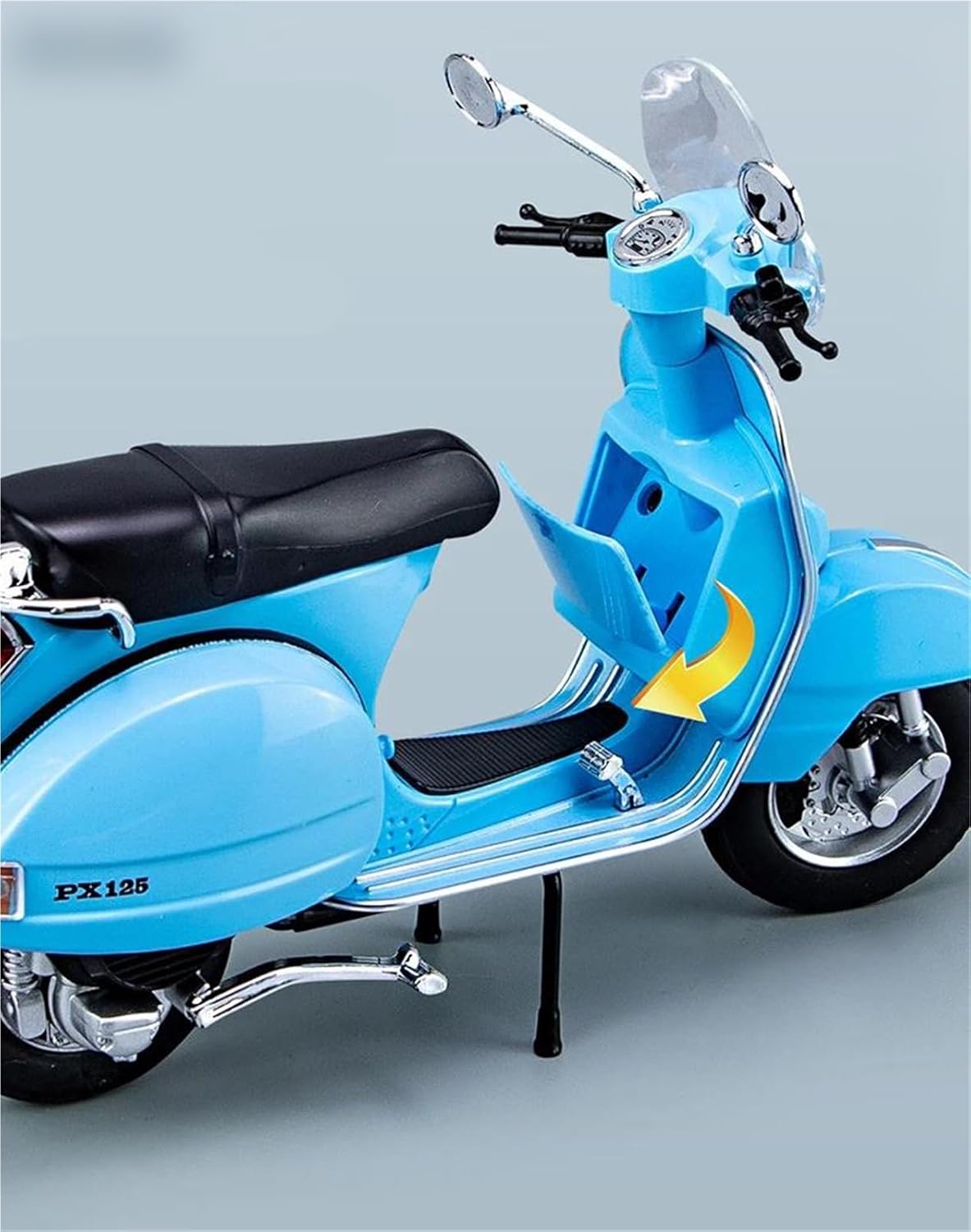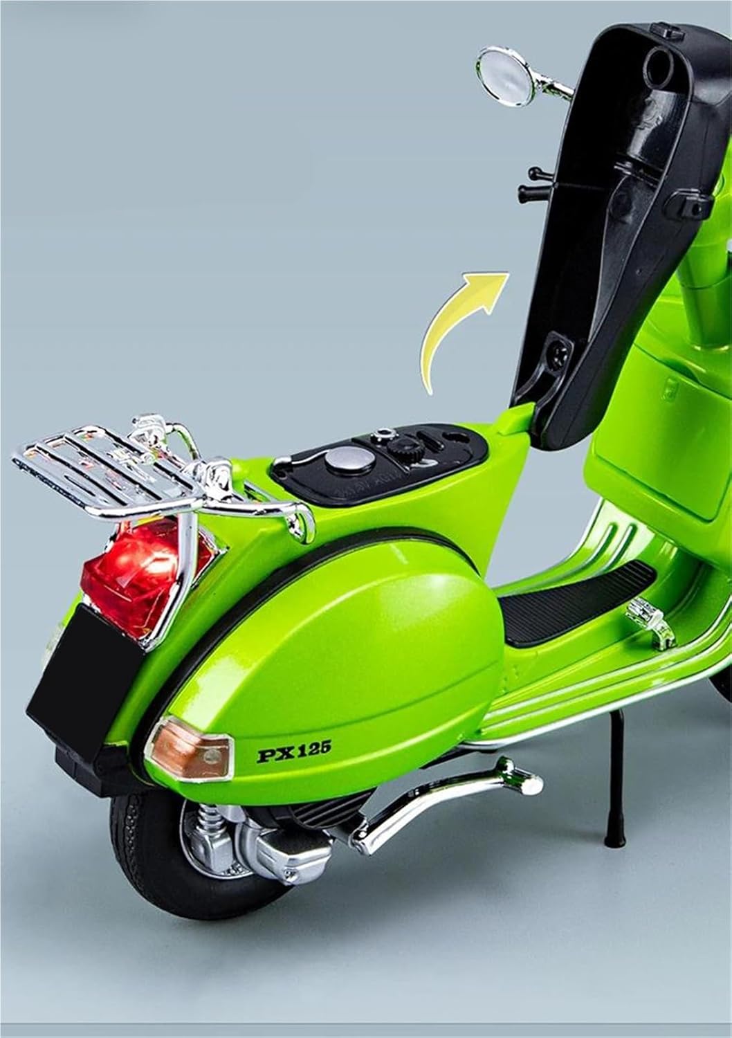 Modello di motocicletta Per Roman Holida Per 125, Funzione: Le porte possono essere aperte, Tirare indietro, Luce, Musica Modello di auto giocattolo per motocicletta in scala 1:10, Materiale: Corpo in metallo + Telaio in ABS + Pneumatico in gomma, Colore: Blu, Verde, Rosa Il modello di motocicletta è un modello squisito realizzato in stretta conformità con la forma, la struttura, il colore, gli interni e altre proporzioni del veicolo originale. È un modello in miniatura del veicolo originale ed è progettato per riprodurre l'aspetto del veicolo originale. Modello di auto di simulazione Realizzato in resistente lega di zinco, è resistente alle cadute e all'usura, garantendo la durevolezza del modello e la sua lunga conservazione. La finitura della vernice è uniformemente liscia, con colori vivaci e duraturi che resistono allo sbiadimento e alle scheggiature, garantendo un aspetto costantemente brillante.