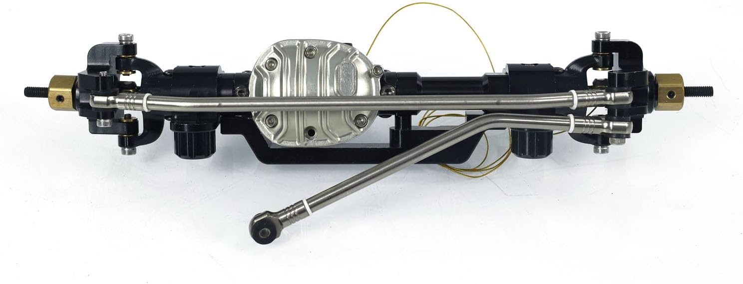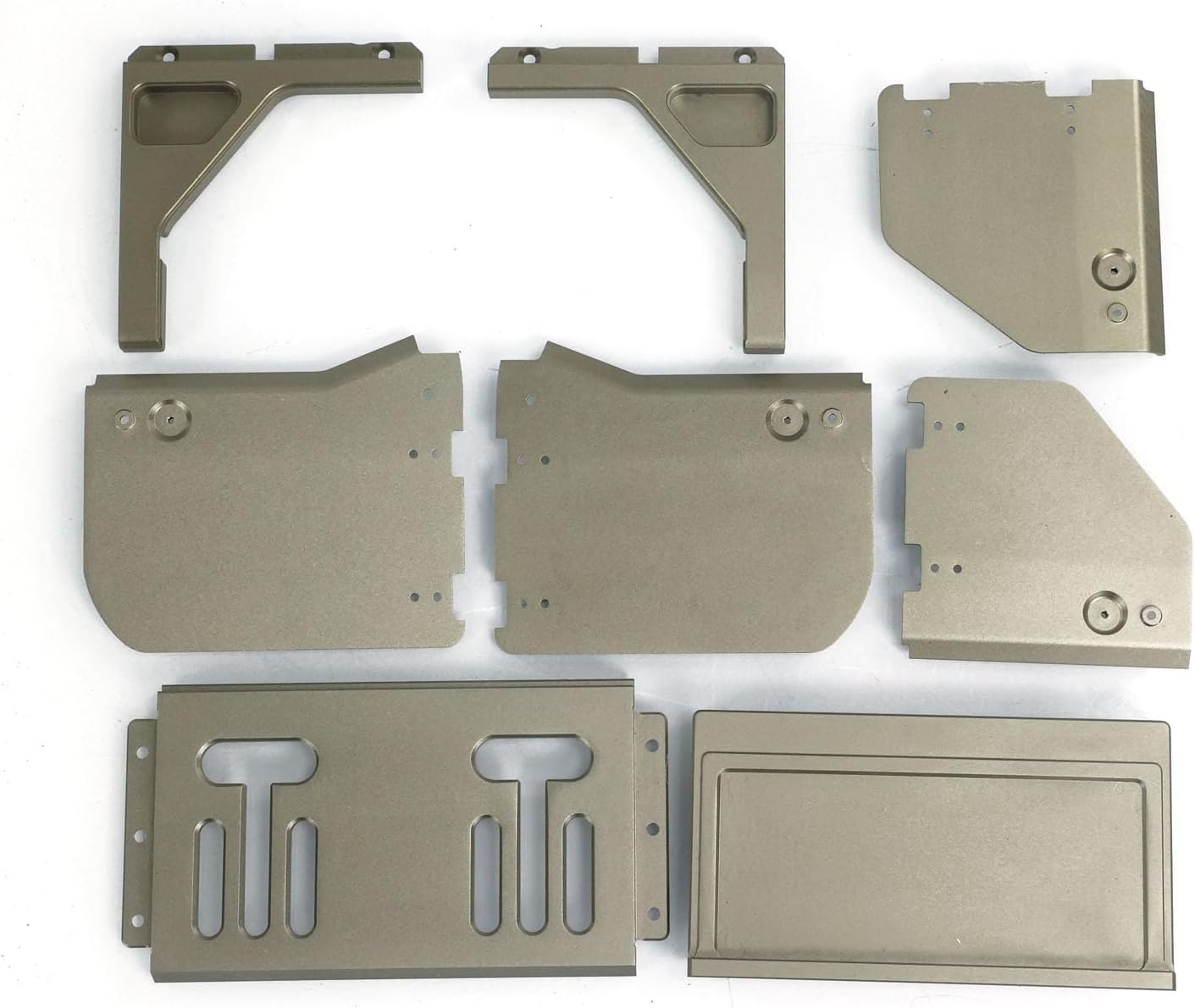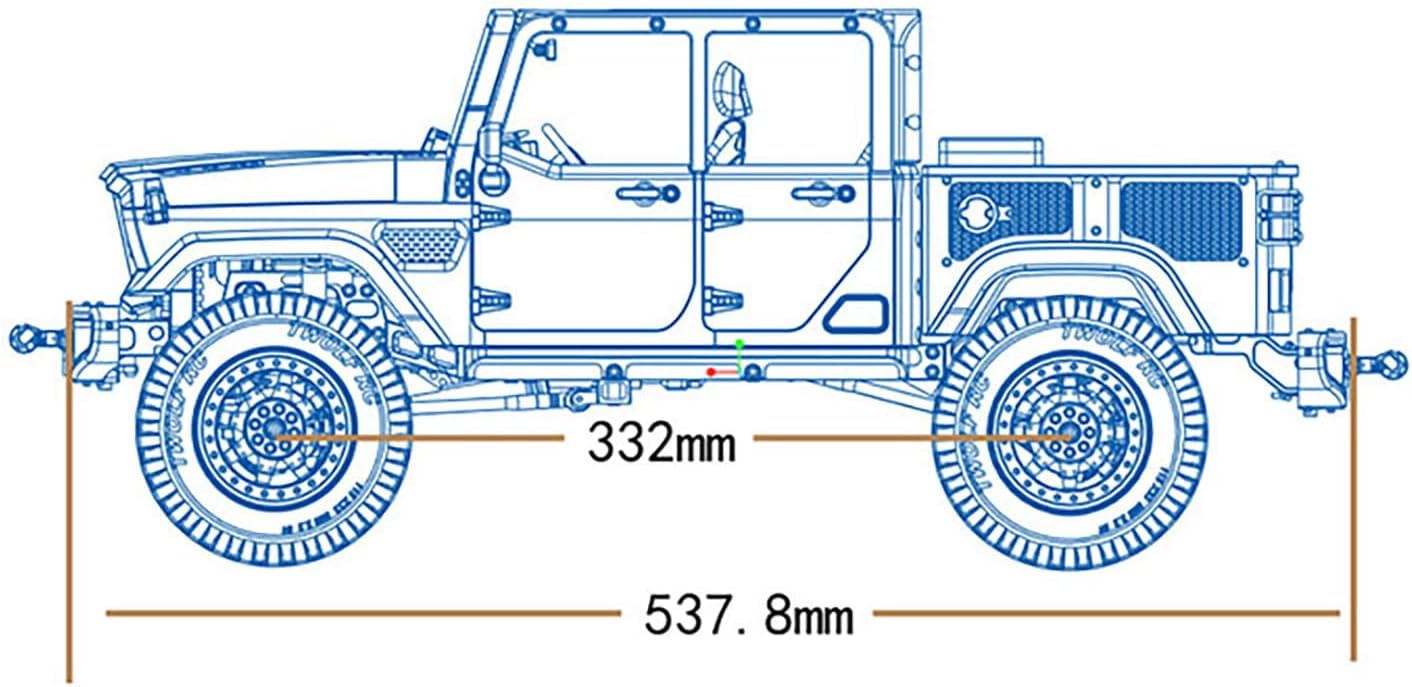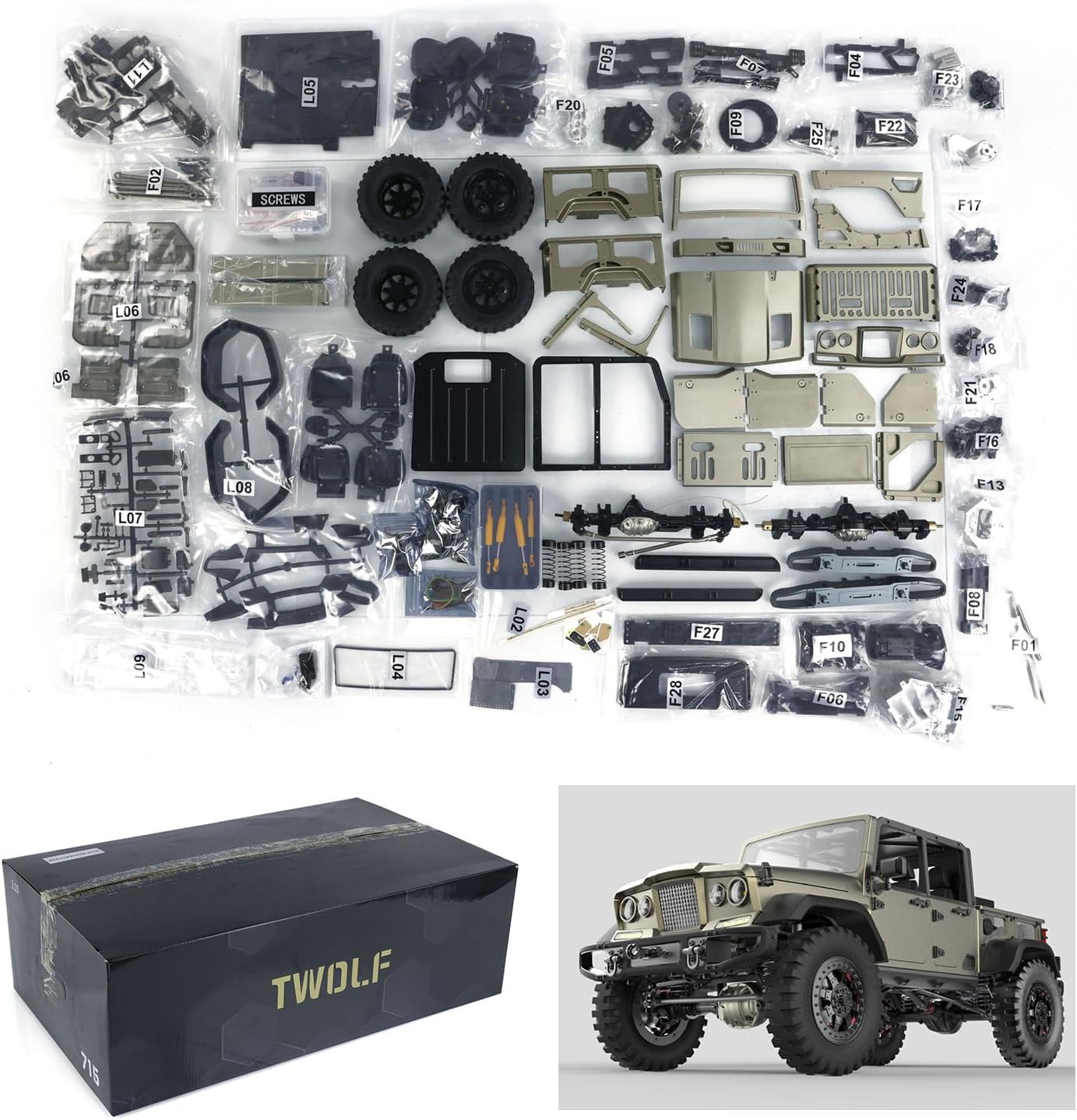 Costruzione CNC interamente in metallo: realizzato con parti metalliche lavorate a CNC ad alta precisione per un'estrema durata e una sensazione di alta qualità, garantendo prestazioni durature in condizioni fuoristrada difficili. Trasmissione a due marce - dispone di un cambio a due velocità (alto/basso) che consente di passare dalla guida orientata alla velocità e al crawling ad alta coppia per gestire terreni versatili. Grande scala 1:10 con struttura robusta: 537,8 mm di lunghezza, 5,85 kg di peso netto – un modello fuoristrada robusto e realistico con un interasse di 332 mm per una maggiore stabilità su rocce e terreni accidentati. Kit non assemblato per la personalizzazione: viene fornito smontato e preverniciato (oro), ideale per hobbisti che amano costruire e apportare modifiche individuali.