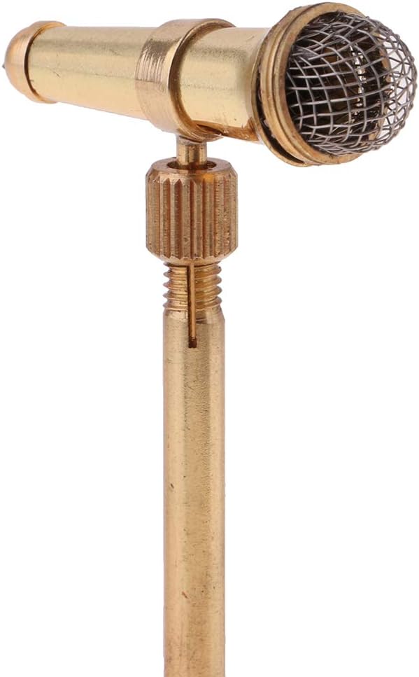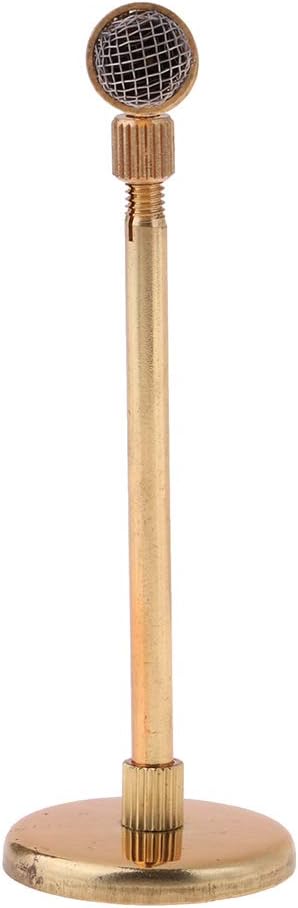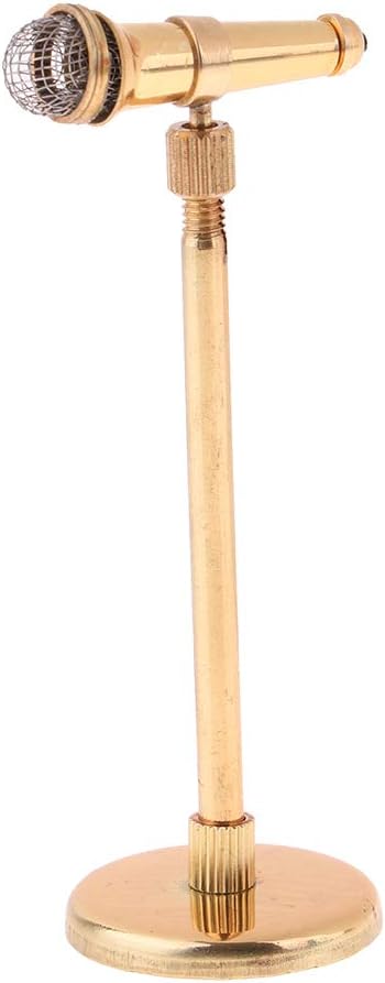 Adatto per casa delle bambole in miniatura 1:12; decorazione per la casa delle bambole, creando scene di vita colorate Colore principale: oro Microfono in metallo miniatura rimovibile con supporto modello strumenti musicali per accessori decorativi per casa delle bambole Materiale: metallo Bellissimo design e ottima fattura, collezione squisita