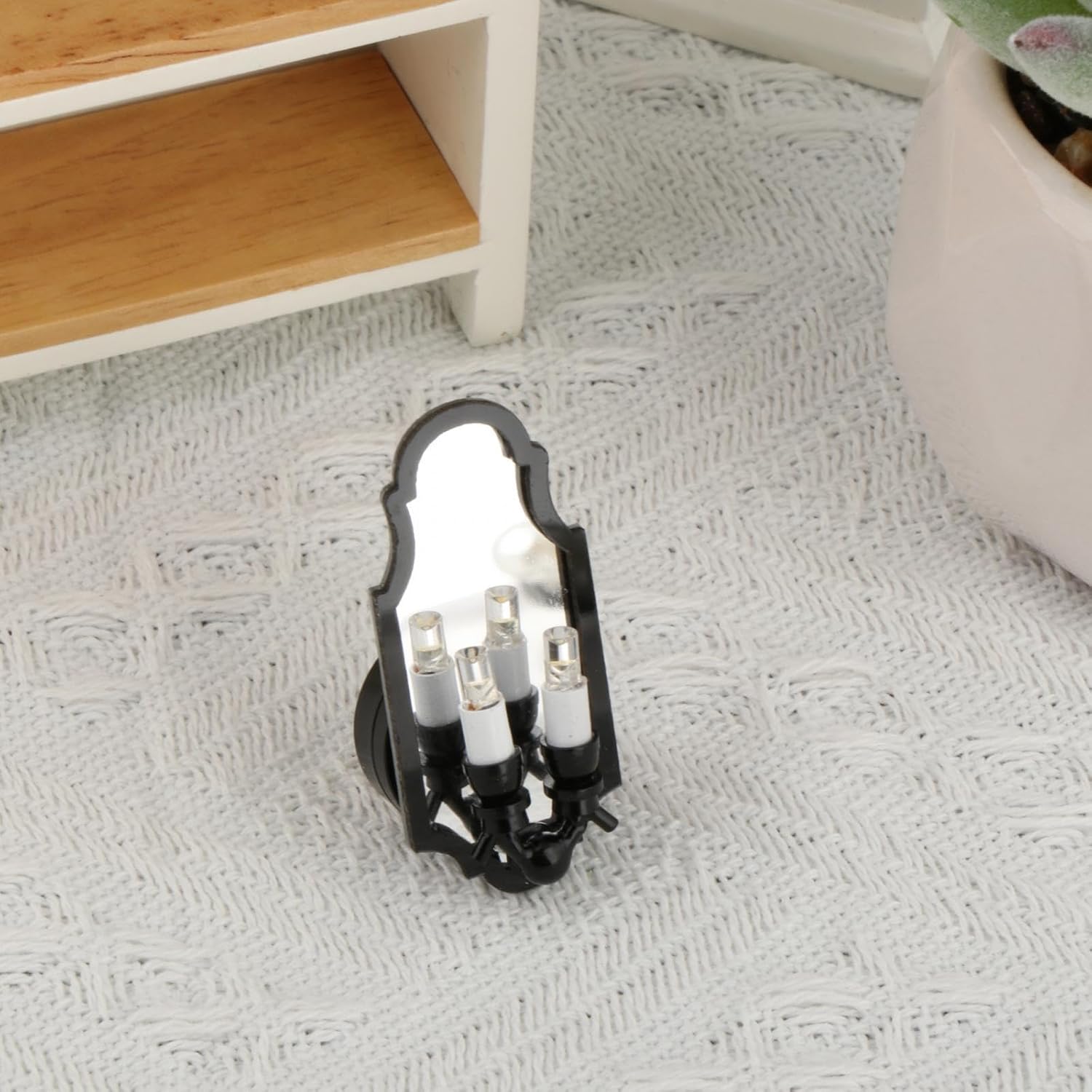 Ottima idea regalo: questa lampada da parete con interruttore di controllo manuale, consente di accendere e spegnere facilmente la luce secondo necessità, un regalo per collezionisti di bambole o chiunque apprezza l'arte in miniatura. Dimensioni: questo specchio da parete in miniatura è alto 4,5 cm e la larghezza dello specchio è di 2 cm, diametro della base 1,9 cm. Accessori per bambole: la lampada da parete a specchio nero in miniatura è un accessorio per bambole e casa delle bambole in scala 1/12, decorazione scena bambola. [Mobili per la casa delle bambole]: la luce a specchio da parete in miniatura è una decorazione molto bella per la casa delle bambole in scala 1/2, rende la tua casa delle bambole più bella. Materiale: la lampada da parete a specchio nero 1/12 è realizzata in materiale metallico, robusto, molto elegante e bello.