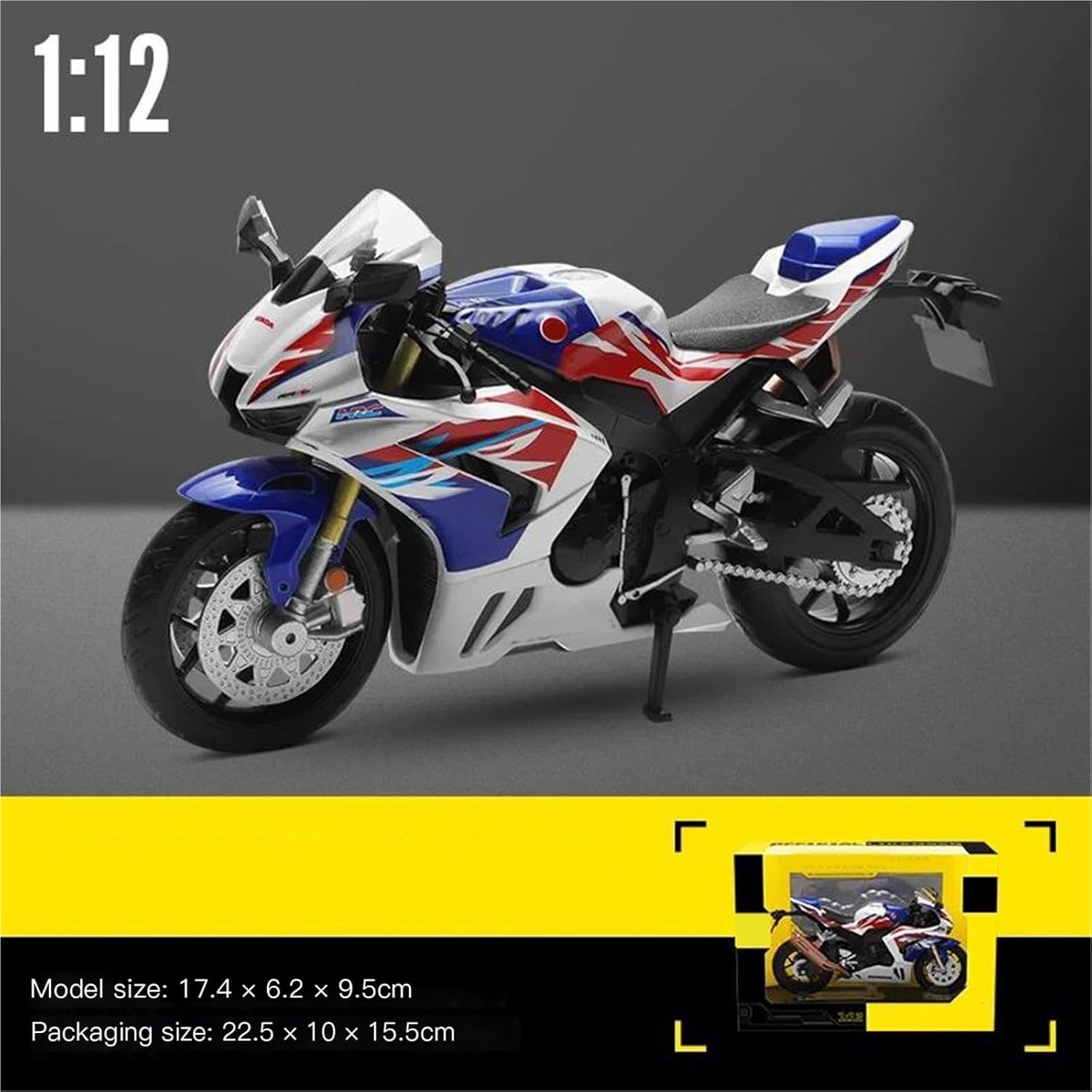 Per CBR1000RR-R Fireblade SP, modello di moto, ottimo per collezionismo e arredamento per ufficio. Modello di auto giocattolo moto in scala 1:12, il modello è durevole e duraturo. La costruzione robusta consente di esporlo con orgoglio anno dopo anno senza rompersi. Il modello di moto è un modello squisito realizzato in stretta conformità con la forma, la struttura, il colore, gli interni e altre proporzioni del veicolo originale. È un modello in miniatura del veicolo originale ed è progettato per riprodurre l'aspetto del veicolo originale. Modello di auto di simulazione Realizzato in resistente lega di zinco, è resistente alle cadute e all'usura, garantendo la durevolezza del modello e la sua lunga conservazione. La finitura della vernice è uniformemente liscia, con colori vivaci e duraturi che resistono allo sbiadimento e alle scheggiature, garantendo un aspetto costantemente brillante.