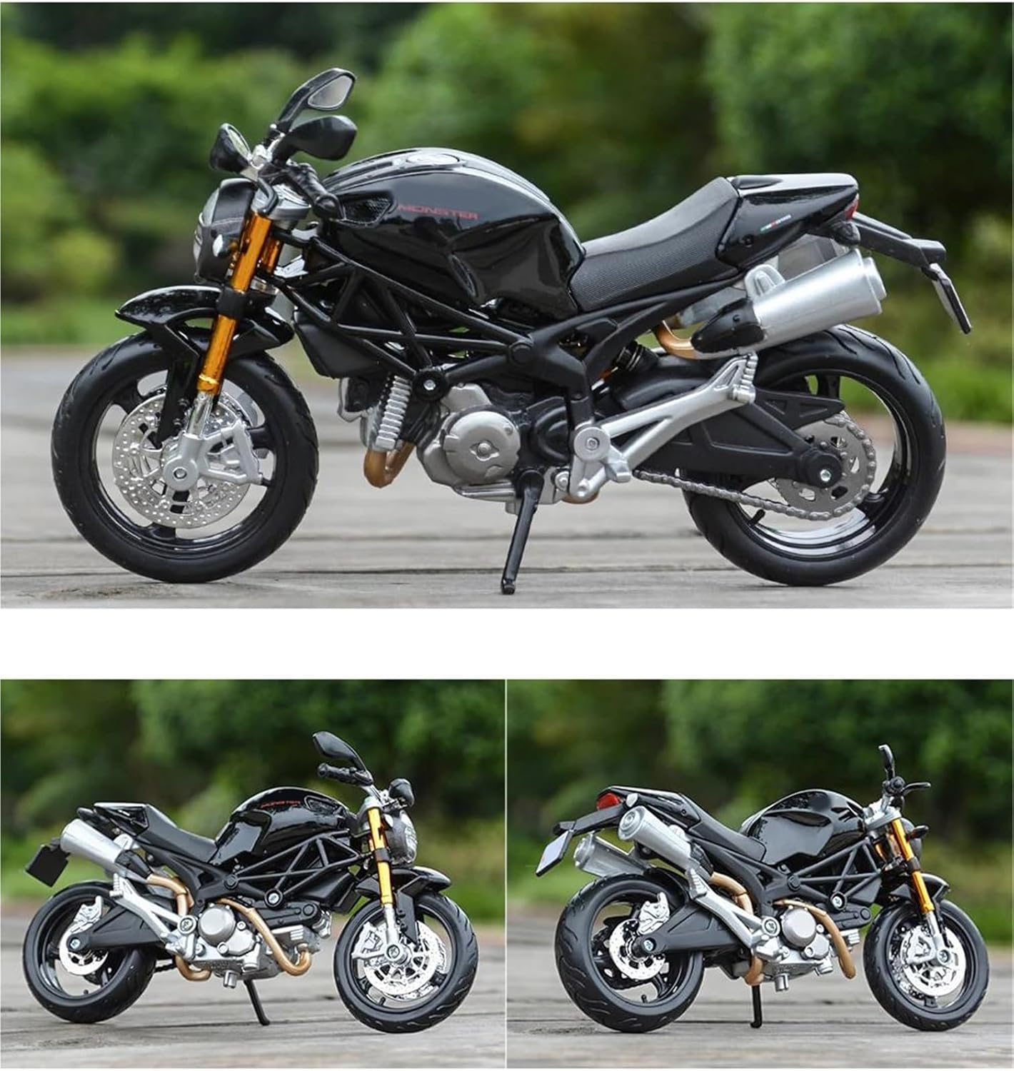 Modello di motocicletta per Monster 696 Modelli di motociclette giocattolo in scala 1:12, la ruota anteriore e il manubrio possono oscillare da un lato all'altro, cavalletto mobile, ruote libere, sospensioni posteriori a molla Il design intricato del modello di motocicletta mette in mostra la ricca storia e l'eleganza delle motociclette. Dalle ruote e dai manubri realistici ai tubi di scarico e al motore, ogni elemento è realizzato in modo intricato per catturare l'essenza di un vero classico, rendendolo un regalo ideale per la festa del papà per i papà che amano le motociclette. La finitura liscia e senza sbavature e la vernice lucida e uniforme dimostrano una maestria artigianale eccezionale. Questo modello incarna lo stile di una motocicletta, soddisfacendo l'amore degli appassionati per i modelli nostalgici.