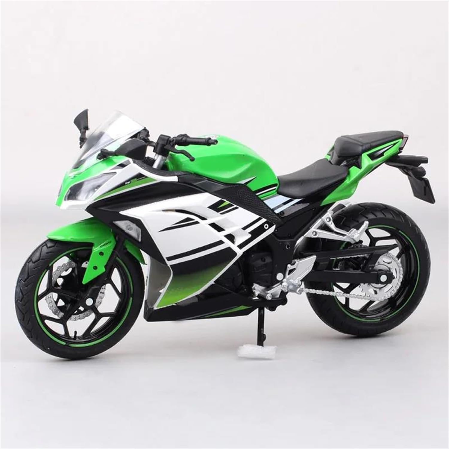Modello di motocicletta per per Ninja 250 Il modello di motocicletta è un modello squisito realizzato in stretta conformità con la forma, la struttura, il colore, gli interni e altre proporzioni del veicolo originale. È un modello in miniatura del veicolo originale ed è progettato per riprodurre l'aspetto del veicolo originale. Modello di auto di simulazione Modello di motocicletta giocattolo in scala 1:12, materiale: lega, ABS, colore: blu, verde, bianco Realizzato in resistente lega di zinco, è resistente alle cadute e all'usura, garantendo la durevolezza del modello e la sua lunga conservazione. La finitura della vernice è uniformemente liscia, con colori vivaci e duraturi che resistono allo sbiadimento e alle scheggiature, garantendo un aspetto costantemente brillante.