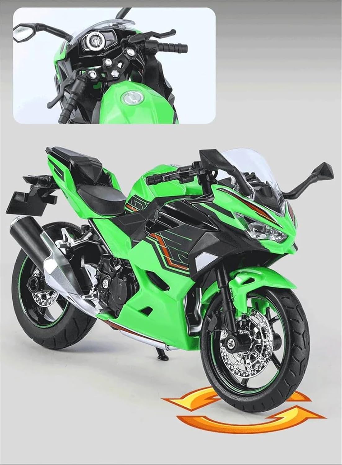 Materiale: lega e ABS, scala: 1:12, la confezione include: 1 modello in lega Il modello di motocicletta è un modello squisito realizzato in stretta conformità con la forma, la struttura, il colore, gli interni e altre proporzioni del veicolo originale. È un modello in miniatura del veicolo originale ed è progettato per riprodurre l'aspetto del veicolo originale. Il modello è durevole e duraturo. La costruzione robusta consente di esporlo con orgoglio anno dopo anno senza rompersi. La finitura liscia e senza sbavature e la vernice lucida e uniforme dimostrano una maestria artigianale eccezionale. Questo modello incarna lo stile di una motocicletta, soddisfacendo l'amore degli appassionati per i modelli nostalgici.