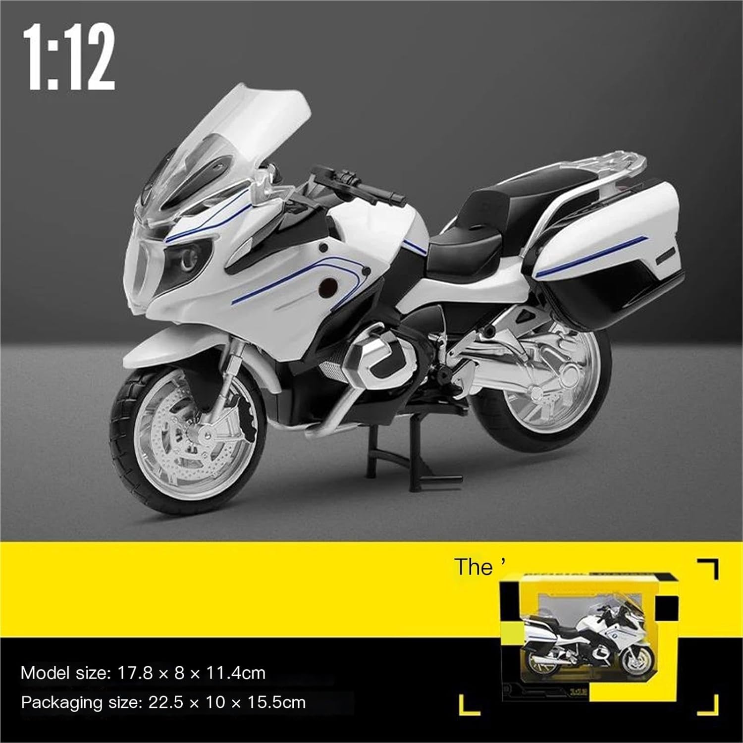 Per R1250RT R 1250 RT, modello di motocicletta, stile vivido, pieno di personalità. Modello di auto giocattolo moto in scala 1:12, il modello è durevole e duraturo. La costruzione robusta consente di esporlo con orgoglio anno dopo anno senza rompersi. Il modello di motocicletta è un modello squisito realizzato in stretta conformità con la forma, la struttura, il colore, gli interni e altre proporzioni del veicolo originale. È un modello in miniatura del veicolo originale ed è progettato per riprodurre l'aspetto del veicolo originale. Modello di auto di simulazione Realizzato in resistente lega di zinco, è resistente alle cadute e all'usura, garantendo la durevolezza del modello e la sua lunga conservazione. La finitura della vernice è uniformemente liscia, con colori vivaci e duraturi che resistono allo sbiadimento e alle scheggiature, garantendo un aspetto costantemente brillante.