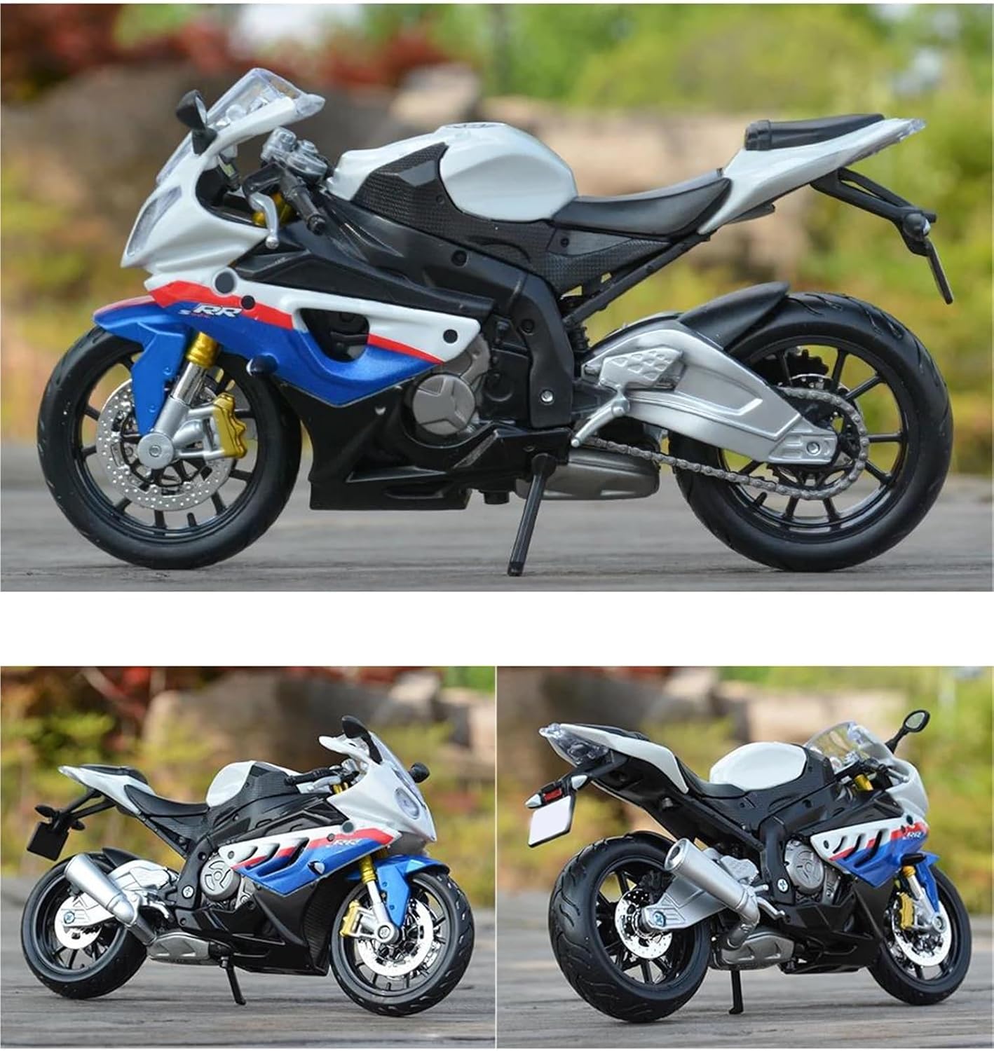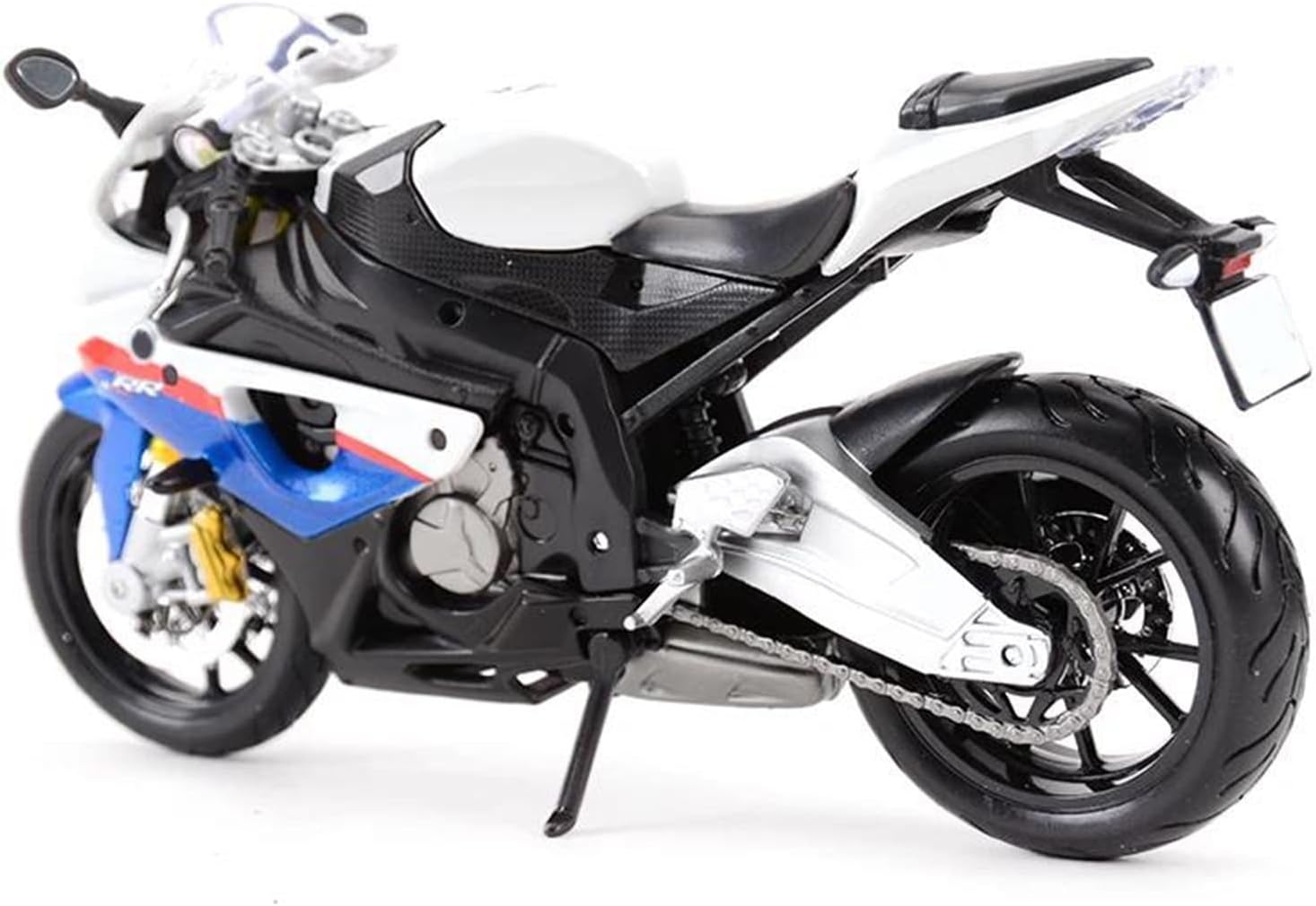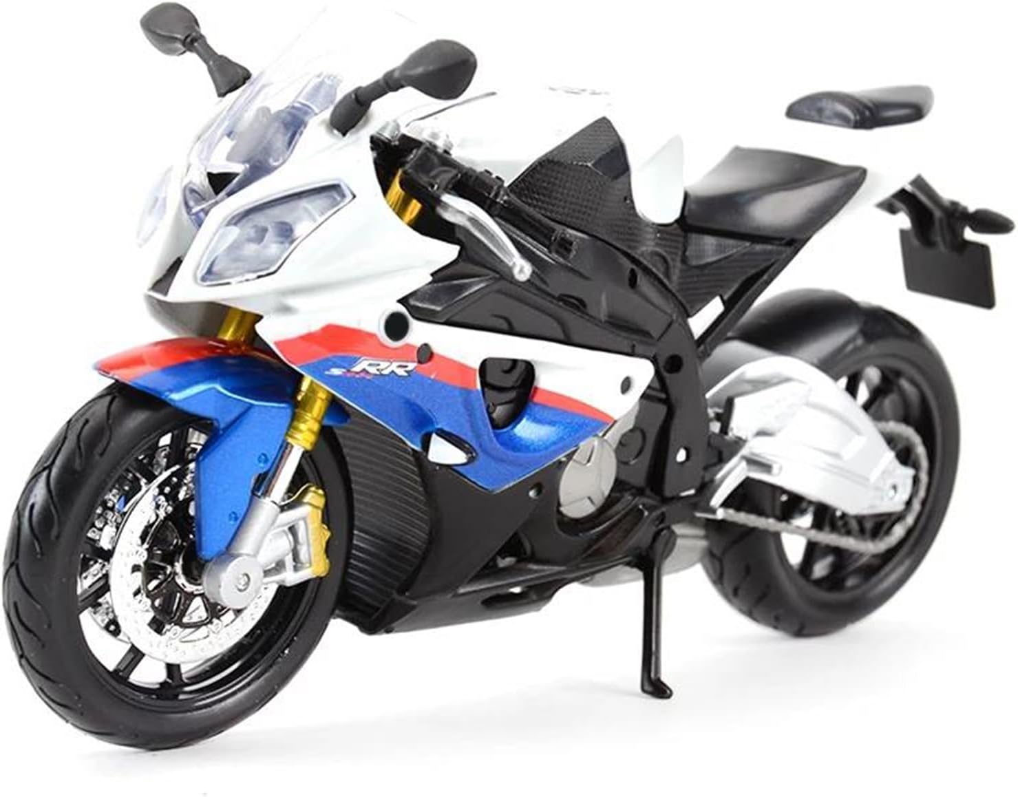 Modellini di moto giocattolo in scala 1:12 per S 1000 RR S1000RR Ruota anteriore e manubrio oscillanti da un lato all'altro, cavalletto mobile, ruote libere, sospensioni posteriori a molla L'intricato design del modello di moto mette in mostra la ricca storia e l'eleganza delle motociclette. Dalle ruote e dai manubri realistici ai tubi di scarico e al motore, ogni elemento è realizzato in modo intricato per catturare l'essenza di un vero classico, rendendolo un regalo ideale per la festa del papà per i papà che amano le motociclette. La finitura liscia e senza sbavature e la vernice lucida e uniforme dimostrano una maestria artigianale eccezionale. Questo modello incarna lo stile di una motocicletta, soddisfacendo l'amore degli appassionati per i modelli nostalgici.