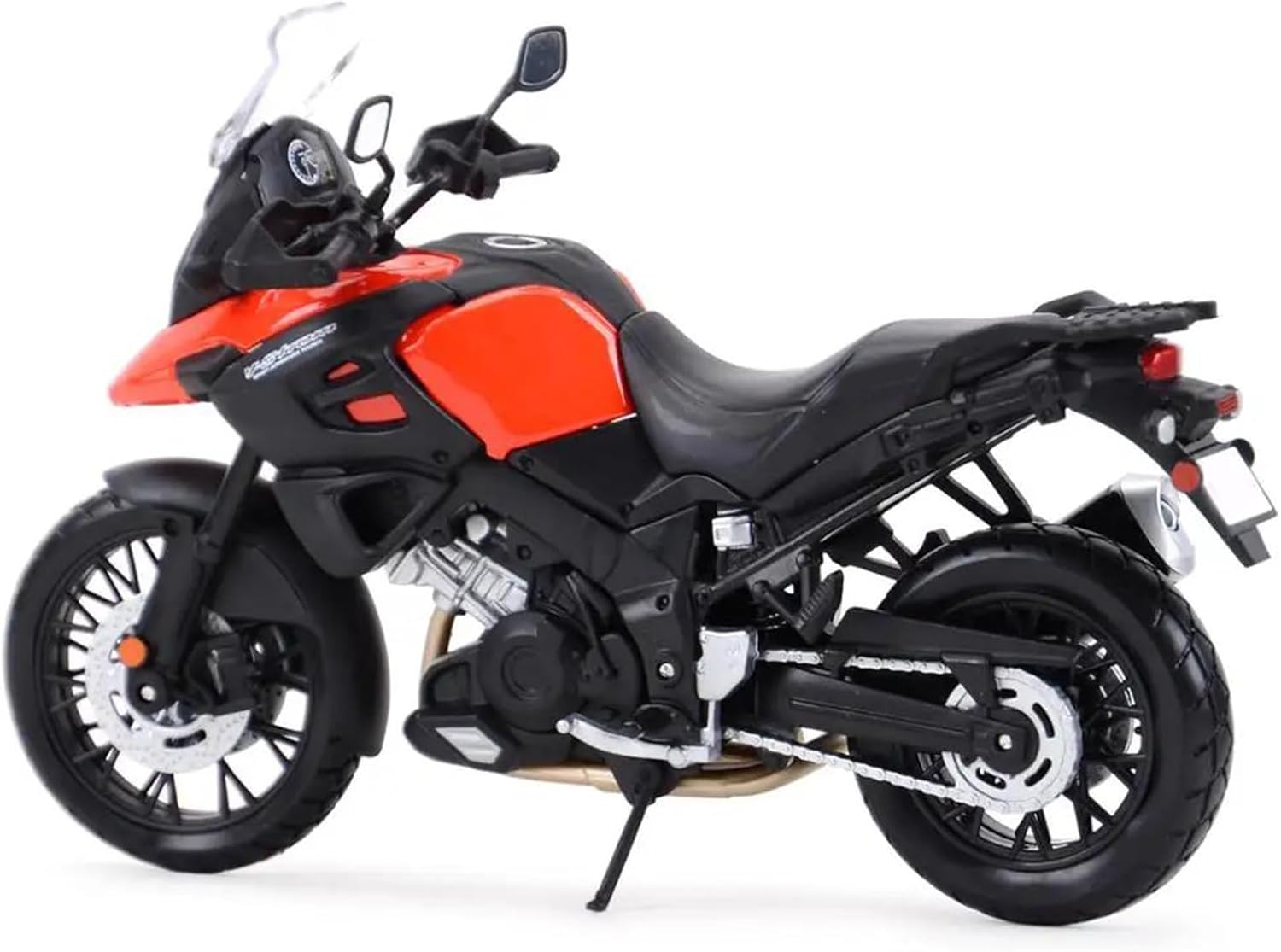 Modellini di moto giocattolo in scala 1:12 per V-Strom Modello di moto, una moto classica ed elegante, replicata con eccezionale accuratezza dove nessun dettaglio è trascurato, dal motore distintivo, sella e curve eleganti, una moto replica assolutamente fedele. La ruota anteriore e il manubrio possono oscillare da un lato all'altro, cavalletto mobile, ruote libere, sospensione posteriore a molla. La finitura liscia e senza sbavature e la vernice lucida e uniforme dimostrano una maestria artigianale eccezionale. Questo modello incarna lo stile di una motocicletta, soddisfacendo l'amore degli appassionati per i modelli nostalgici.