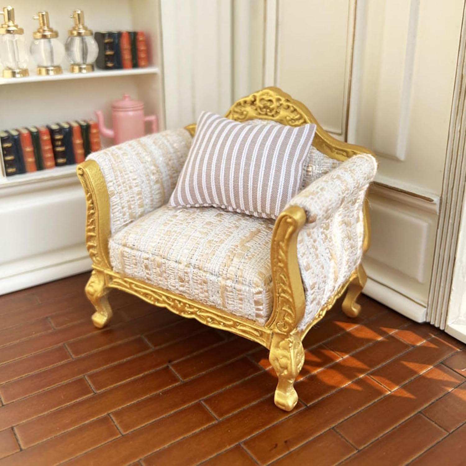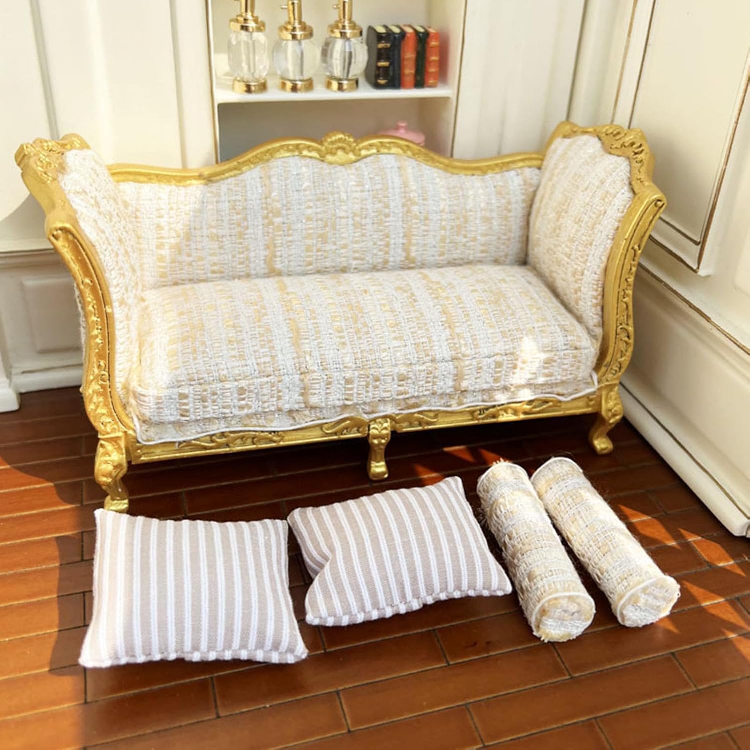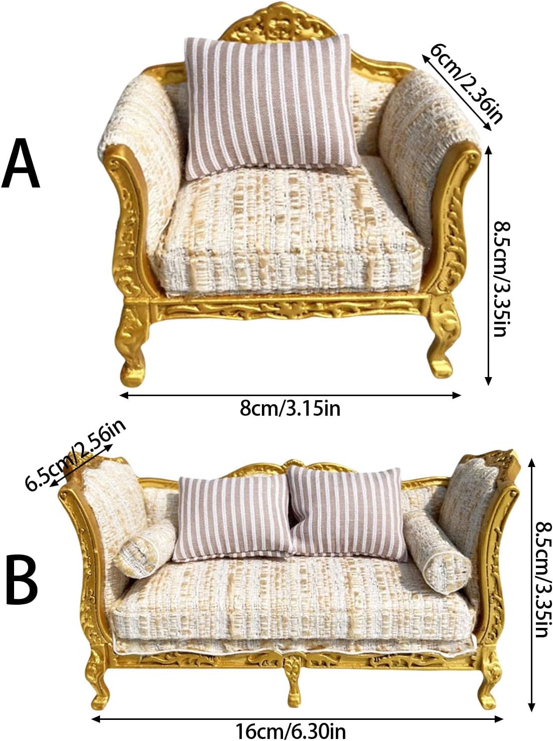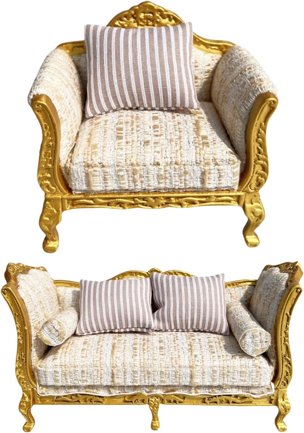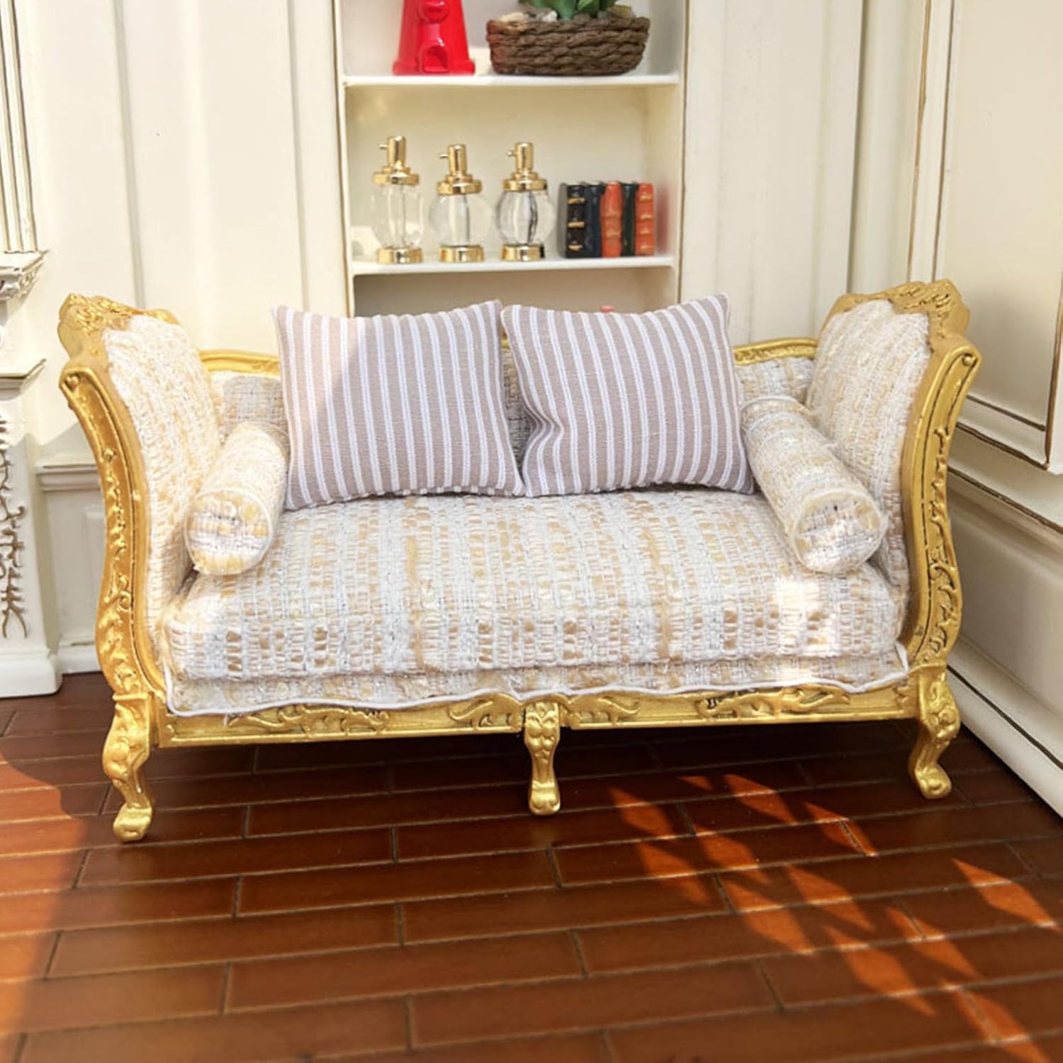 Modello di divano elaborato e vintage, compatto e classico, alto grado di riduzione. Realizzato in tessuto e materiali in legno, questo divano è visivamente accattivante. È molto divertente per chi ama i decoratori di case delle bambole. Materiali in legno. Non si deforma facilmente, innocuo. L'eccellente modello di aspetto è molto vicino alla realtà. Ottimi oggetti di scena fotografici.