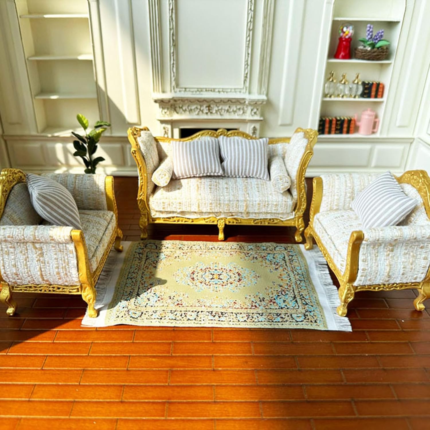 Modello di divano elaborato e vintage, compatto e classico, alto grado di riduzione. Realizzato in tessuto e materiali in legno, questo divano è visivamente accattivante. È molto divertente per chi ama i decoratori di case delle bambole. Materiali in legno. Non si deforma facilmente, innocuo. Che buon oggetto da collezione per un grande piano per la casa delle bambole!