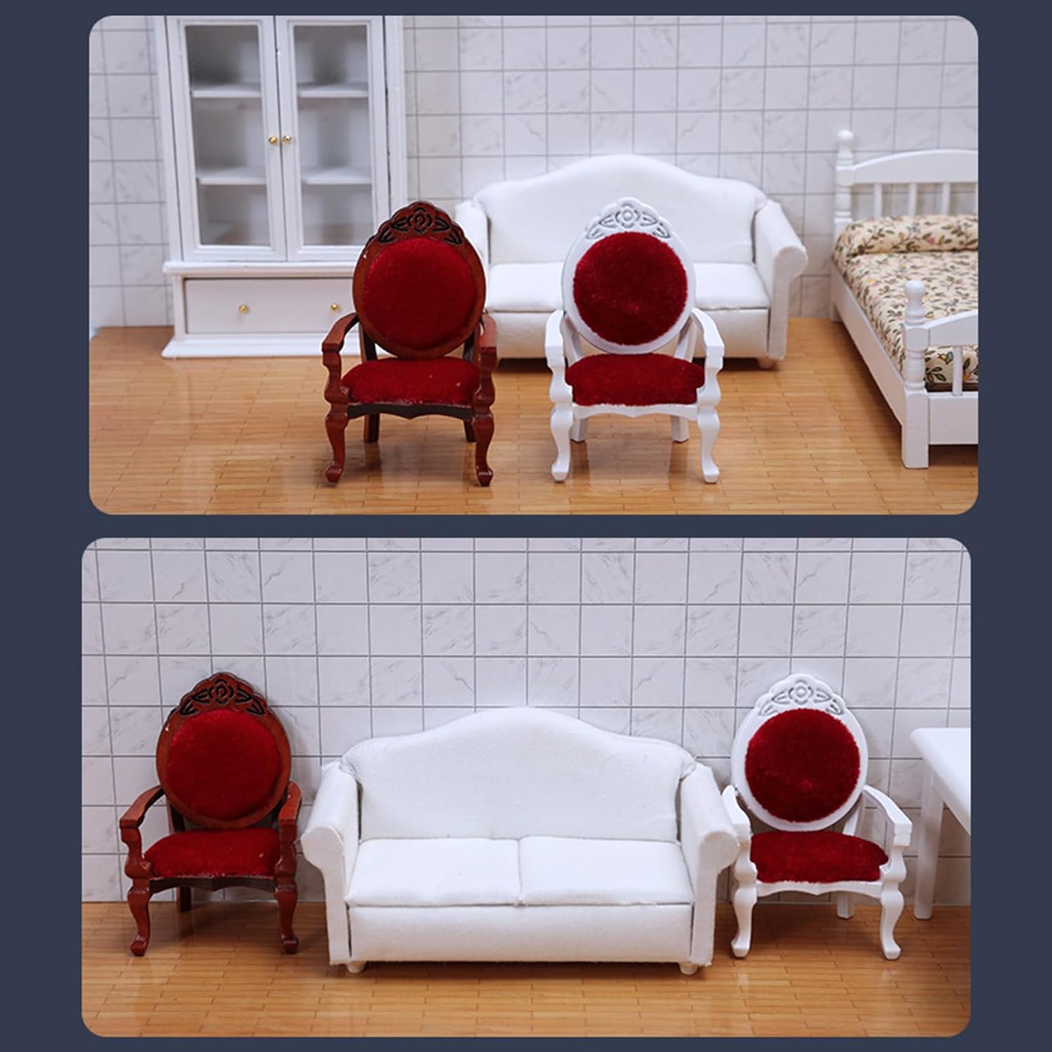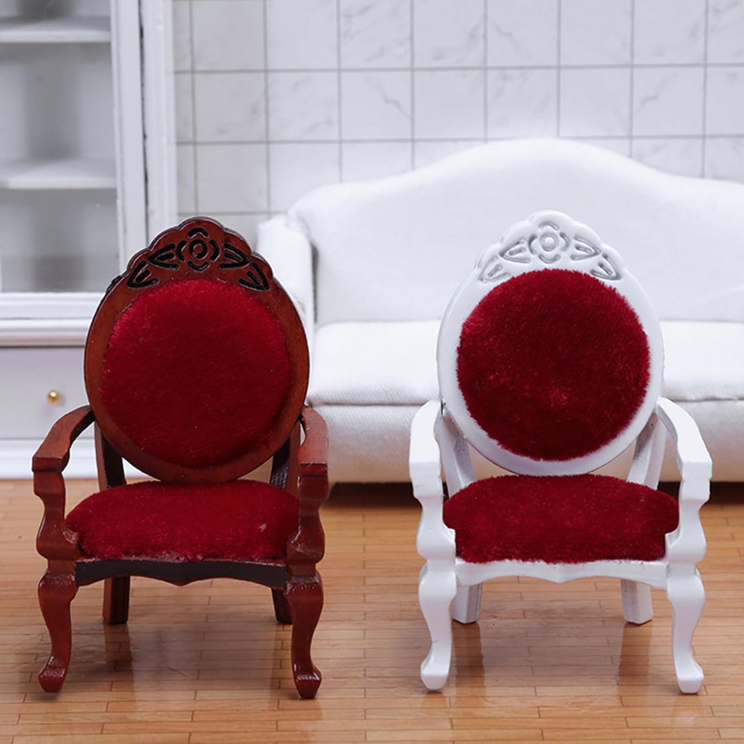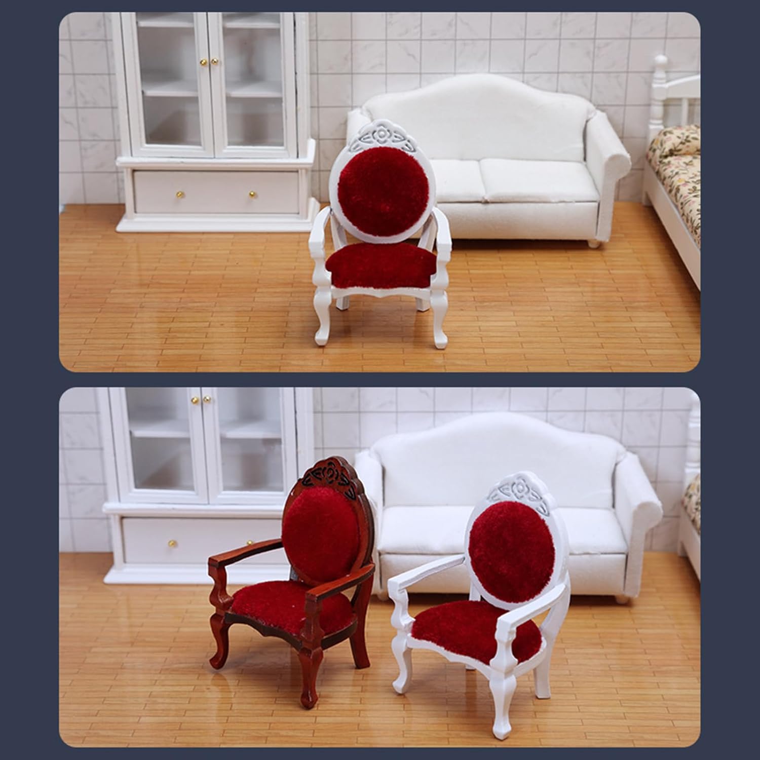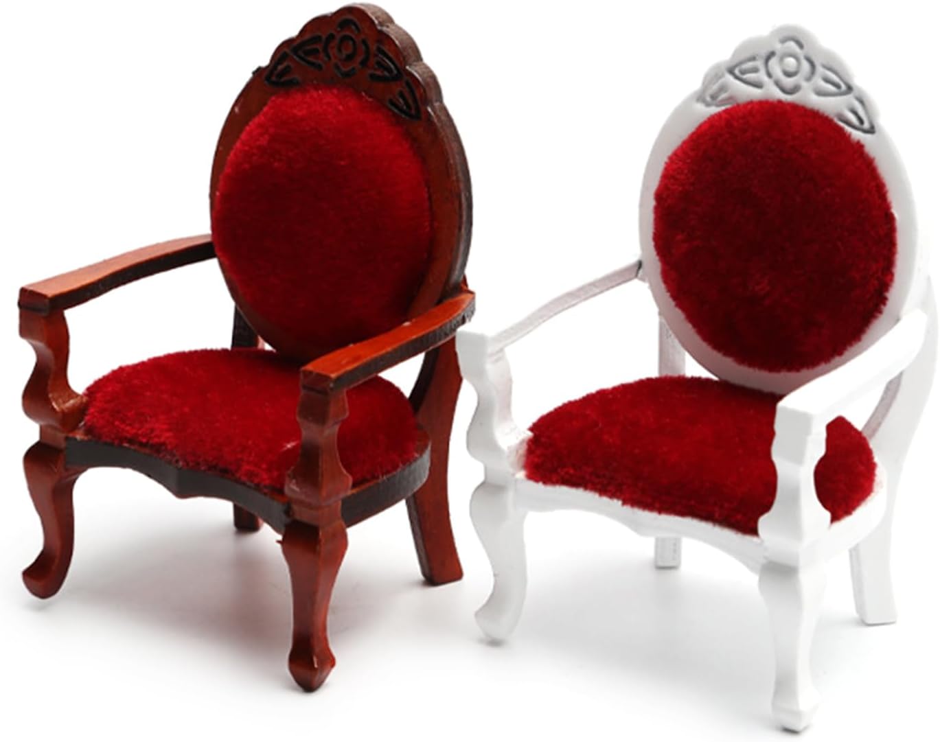 Questi legno possono portarti un calore confortevole, e la sedia in miniatura può essere applicata come famiglia e amico che hanno persone in miniatura da accontentare a Natale, compleanno, feste e altre vacanze, e adatta anche come ornamento per decorare la tua stanza Dimensioni: circa 4,7 x 5,6 x 8,5 cm Le sedie sono sapientemente realizzate e imbottite. Il legno ha intagli dettagliati Sedia fatta a mano per mobili per le case in miniatura Le case in miniatura sedia legno
