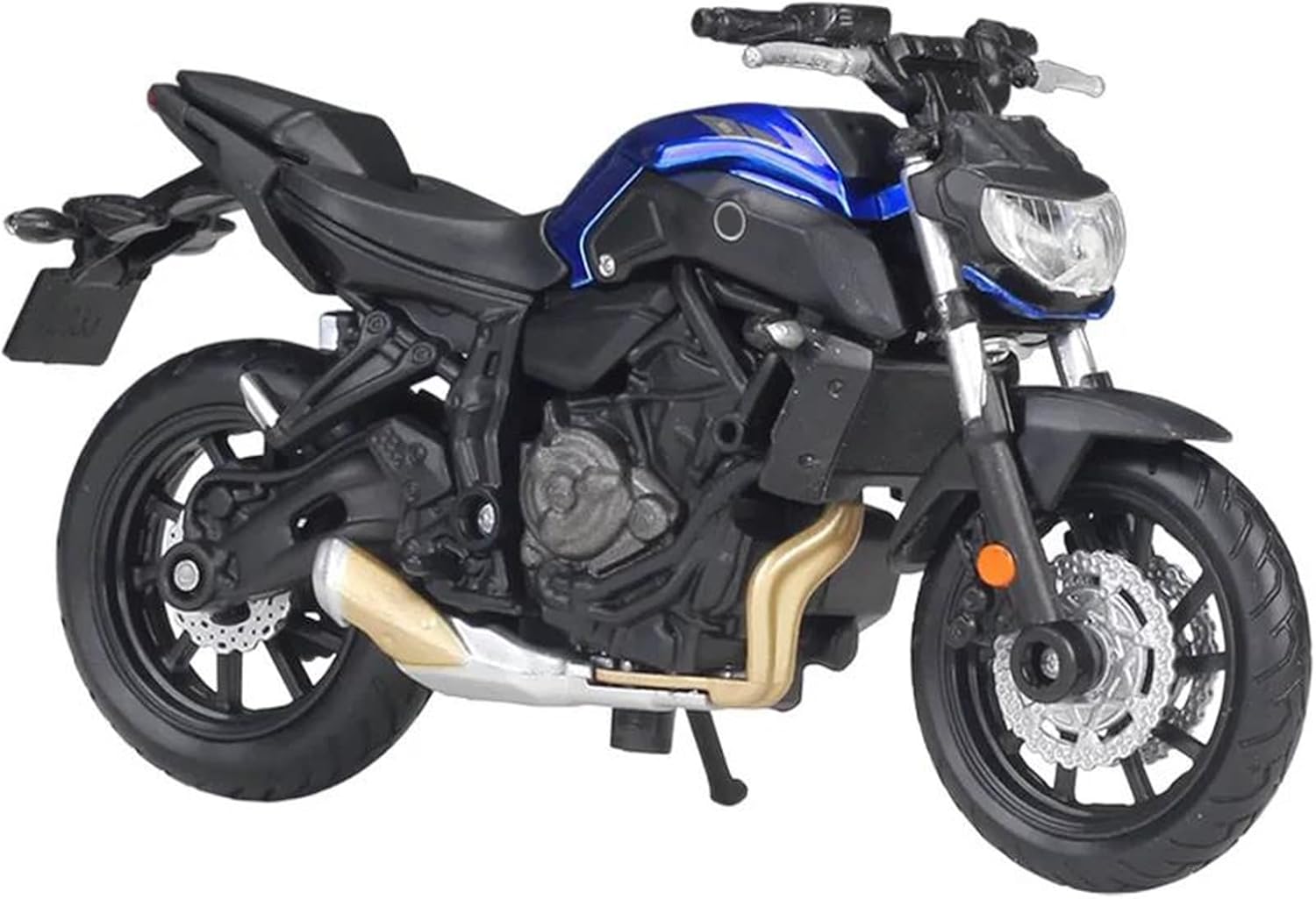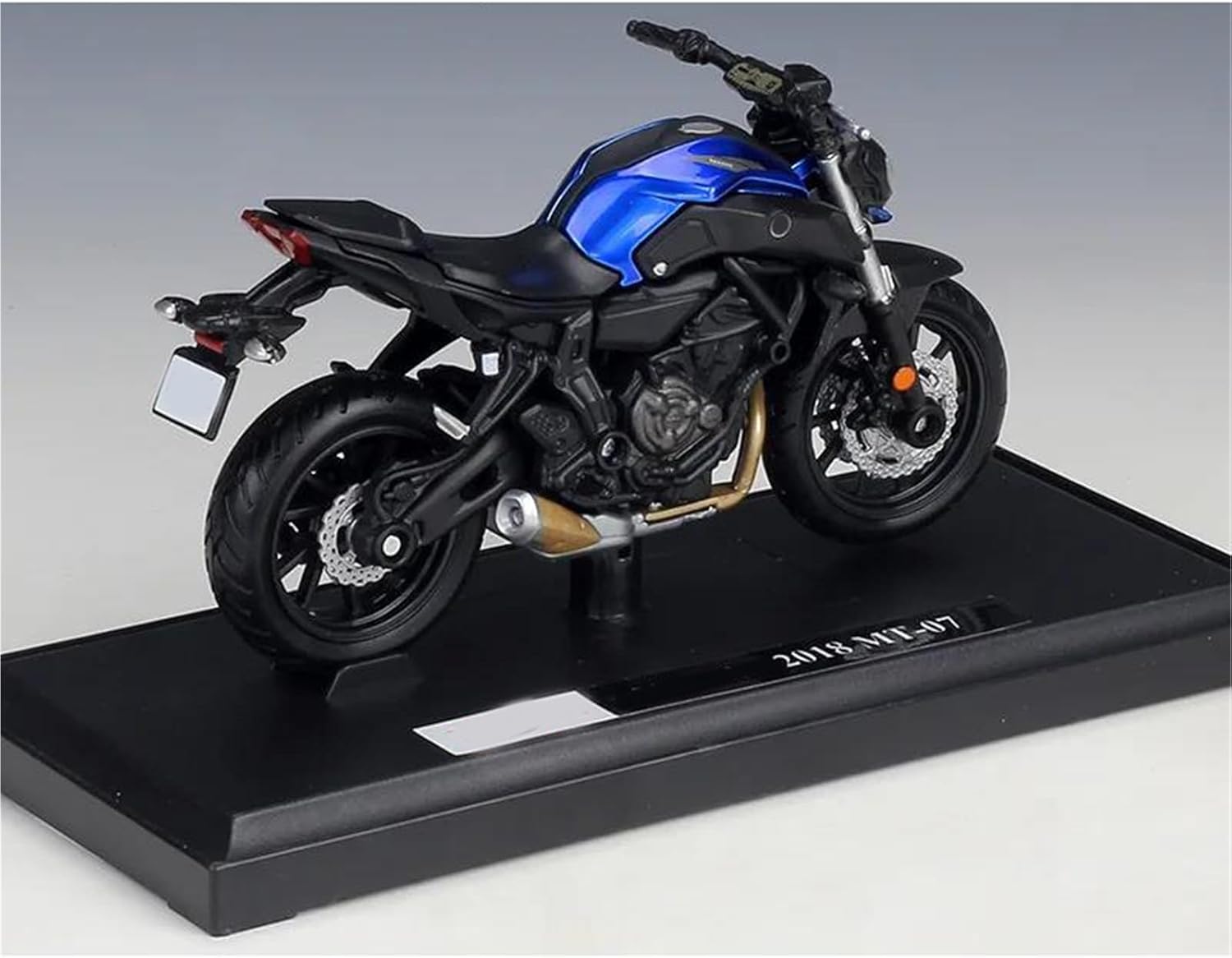 Modello di motocicletta 2018 per MT07 MT-07 Modelli di motociclette giocattolo in scala 1:18, ruota anteriore e manubrio possono oscillare da un lato all'altro, cavalletto mobile, sospensione posteriore a molla, ruote libere Il modello di motocicletta è un modello squisito realizzato in stretta conformità con la forma, la struttura, il colore, gli interni e altre proporzioni del veicolo originale. È un modello in miniatura del veicolo originale ed è progettato per riprodurre l'aspetto del veicolo originale. La finitura liscia e senza sbavature e la vernice lucida e uniforme dimostrano una maestria artigianale eccezionale. Questo modello incarna lo stile di una motocicletta, soddisfacendo l'amore degli appassionati per i modelli nostalgici.