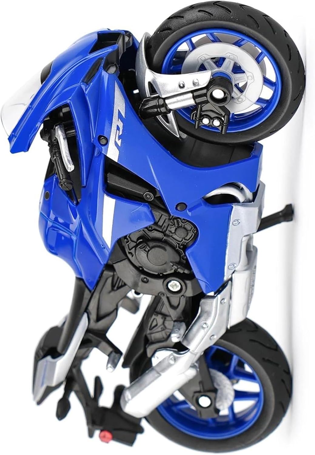 Modello di moto per YZF-R1 YZFR1 Modelli di moto giocattolo in scala 1:18, ruota anteriore e manubrio possono oscillare da un lato all'altro, cavalletto mobile, ruote libere, sospensione posteriore a molla Parti squisite progettate secondo le proporzioni originali dell'auto, cruscotto, pedali del freno e dell'acceleratore sono progettati per essere realistici e precisi. Stile vivido, pieno di personalità. La finitura liscia e senza sbavature e la vernice lucida e uniforme dimostrano una maestria artigianale eccezionale. Questo modello incarna lo stile di una motocicletta, soddisfacendo l'amore degli appassionati per i modelli nostalgici.