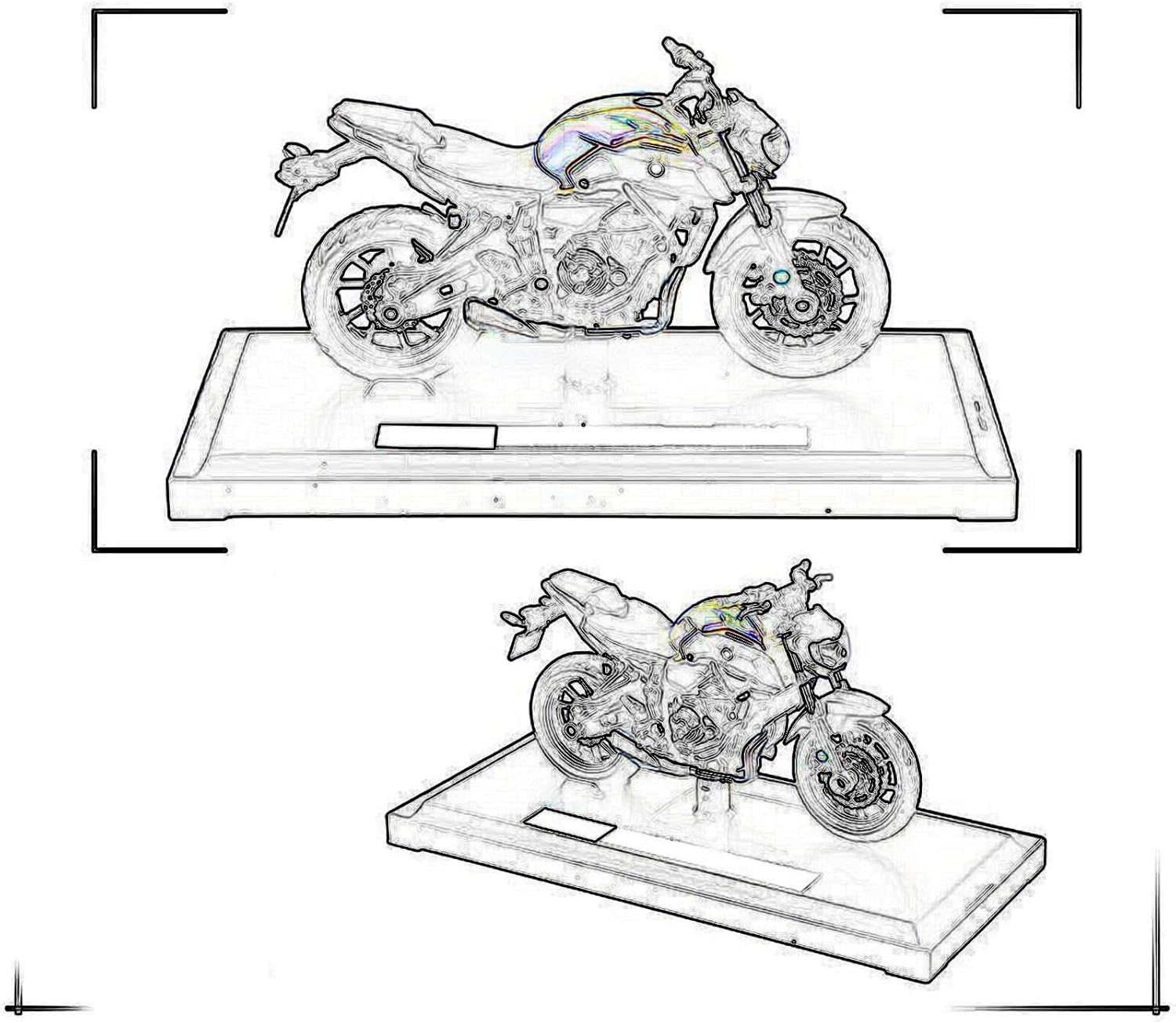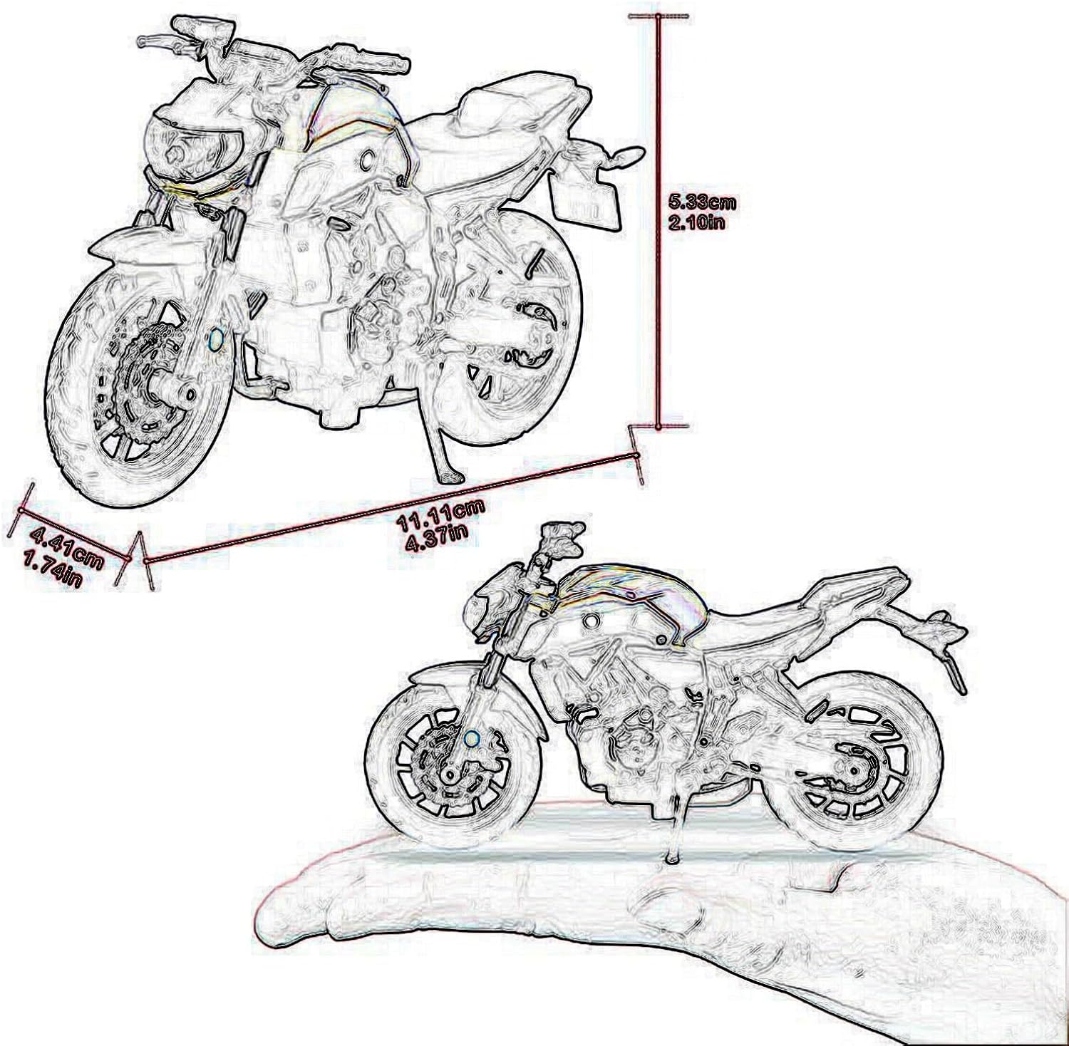 Modellini di moto giocattolo in scala 1:18 per Diavel Carbon, materiale: metallo pressofuso con parti in ABS Modello di moto, una moto classica ed elegante, replicata con eccezionale accuratezza dove nessun dettaglio è trascurato, dal motore distintivo, sella e curve eleganti, una moto replica assolutamente fedele. Modello di auto di simulazione, ruota anteriore e manubrio possono oscillare da un lato all'altro, cavalletto mobile, sospensione posteriore a molla, ruote libere La finitura liscia e senza sbavature e la vernice lucida e uniforme dimostrano una maestria artigianale eccezionale. Questo modello incarna lo stile di una motocicletta, soddisfacendo l'amore degli appassionati per i modelli nostalgici.
