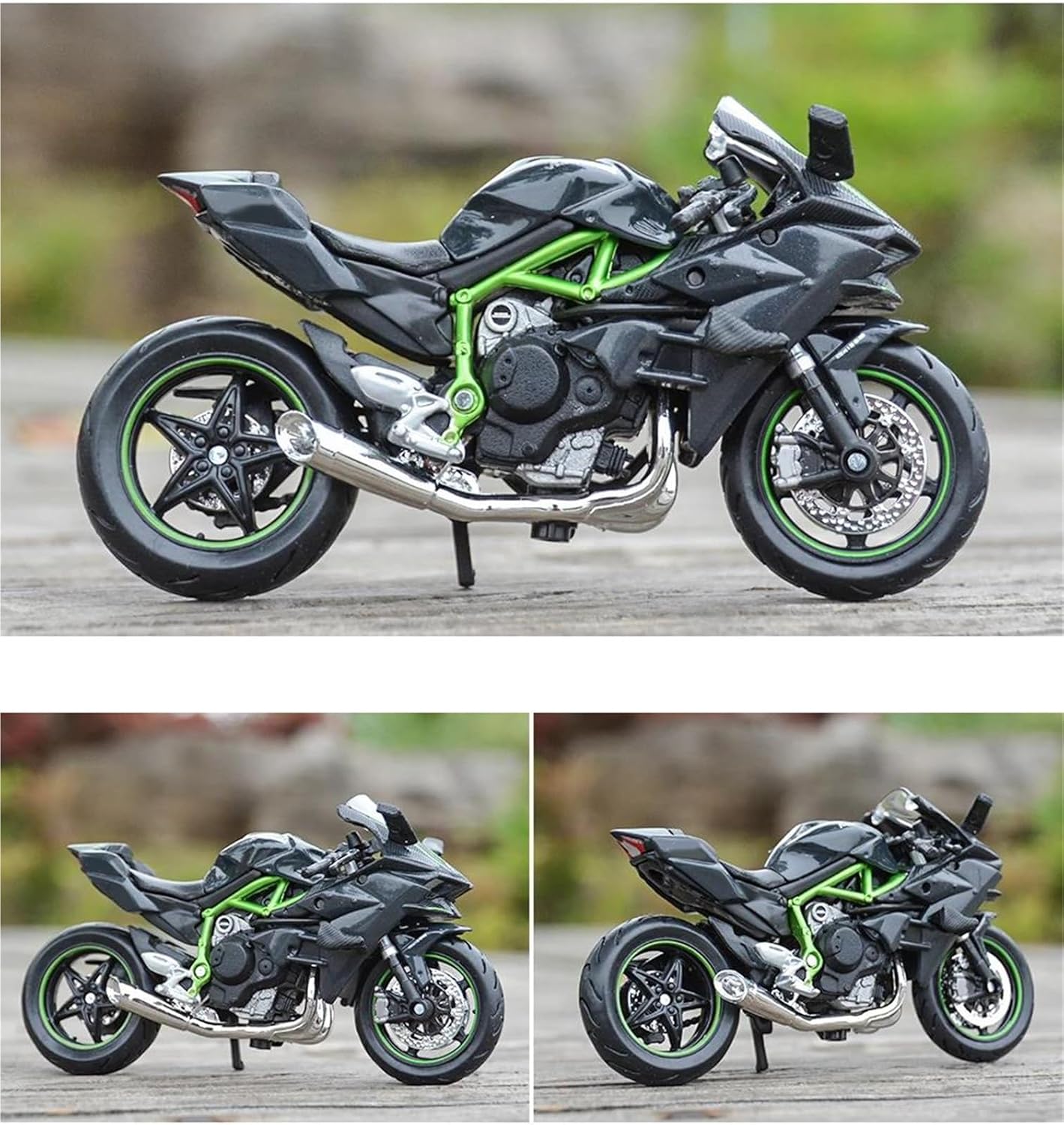 Modellini di moto giocattolo in scala 1:18 per H2 R per Ninja Modello di motocicletta simulata, la ruota anteriore e il manubrio possono oscillare da un lato all'altro, cavalletto mobile, sospensioni posteriori a molla, ruote libere Modello di motocicletta, una motocicletta classica ed elegante, replicata con eccezionale accuratezza dove nessun dettaglio è trascurato, dal motore distintivo, alla sella e alle curve eleganti, una moto replica assolutamente fedele. La finitura liscia e senza sbavature e la vernice lucida e uniforme dimostrano una maestria artigianale eccezionale. Questo modello incarna lo stile di una motocicletta, soddisfacendo l'amore degli appassionati per i modelli nostalgici.