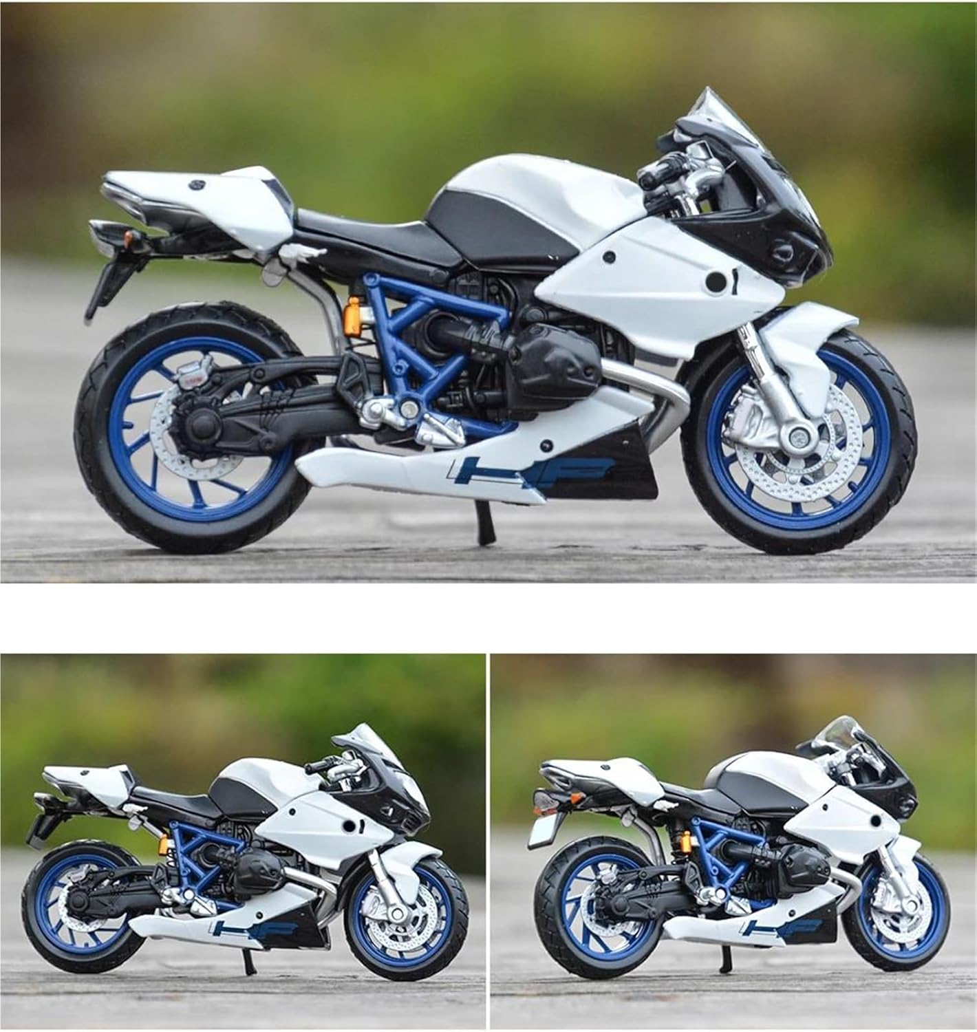 Modellini di motociclette giocattolo in scala 1:18 per HP2 Sport Modello di motocicletta, una motocicletta classica ed elegante, replicata con eccezionale accuratezza dove nessun dettaglio è trascurato, dal motore distintivo, alla sella e alle curve eleganti, una moto replica assolutamente fedele. La ruota anteriore e il manubrio possono oscillare da un lato all'altro, cavalletto mobile, ruote libere, sospensioni posteriori a molla. Realizzato in resistente lega di zinco, è resistente alle cadute e all'usura, garantendo la durevolezza del modello e la sua lunga conservazione. La finitura della vernice è uniformemente liscia, con colori vivaci e duraturi che resistono allo sbiadimento e alle scheggiature, garantendo un aspetto costantemente brillante.