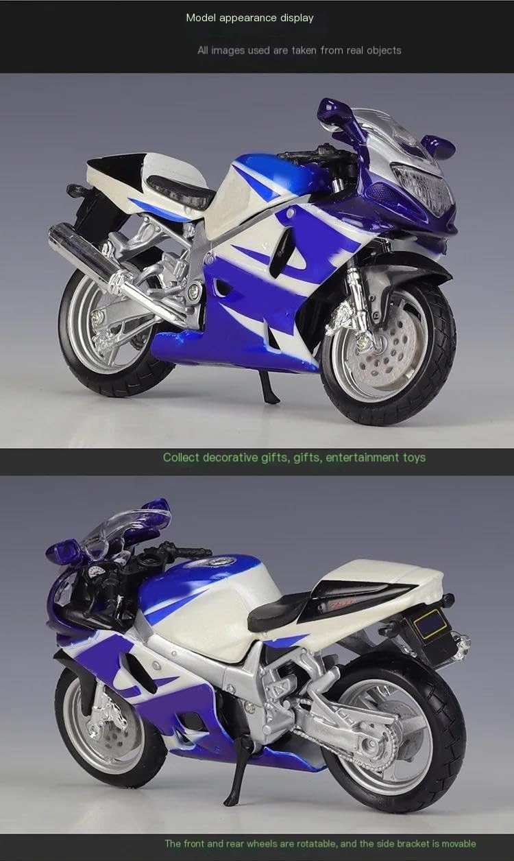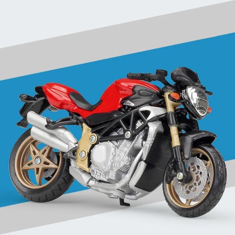 Modello di motocicletta per MV per Agusta Oro Il modello di motocicletta è un modello squisito realizzato in stretta conformità con la forma, la struttura, il colore, gli interni e altre proporzioni del veicolo originale. È un modello in miniatura del veicolo originale ed è progettato per riprodurre l'aspetto del veicolo originale. Modello di motocicletta di simulazione Modelli di auto giocattolo motociclette 1:18, l'intenzione originale della nascita di questa vettura è quella di risvegliare l'interesse degli appassionati, combinata con scienza e tecnologia nel processo creativo per cercare di costruire questo modello di motocicletta con fattori tradizionali per soddisfare le preferenze di diversi tipi di clienti, un piccolo modello per ispirare molta ispirazione per portare nel sogno di coesione e il potere di costruire un sogno! La finitura liscia e senza sbavature e la vernice lucida e uniforme dimostrano una maestria artigianale eccezionale. Questo modello incarna lo stile di una motocicletta, soddisfacendo l'amore degli appassionati per i modelli nostalgici.
