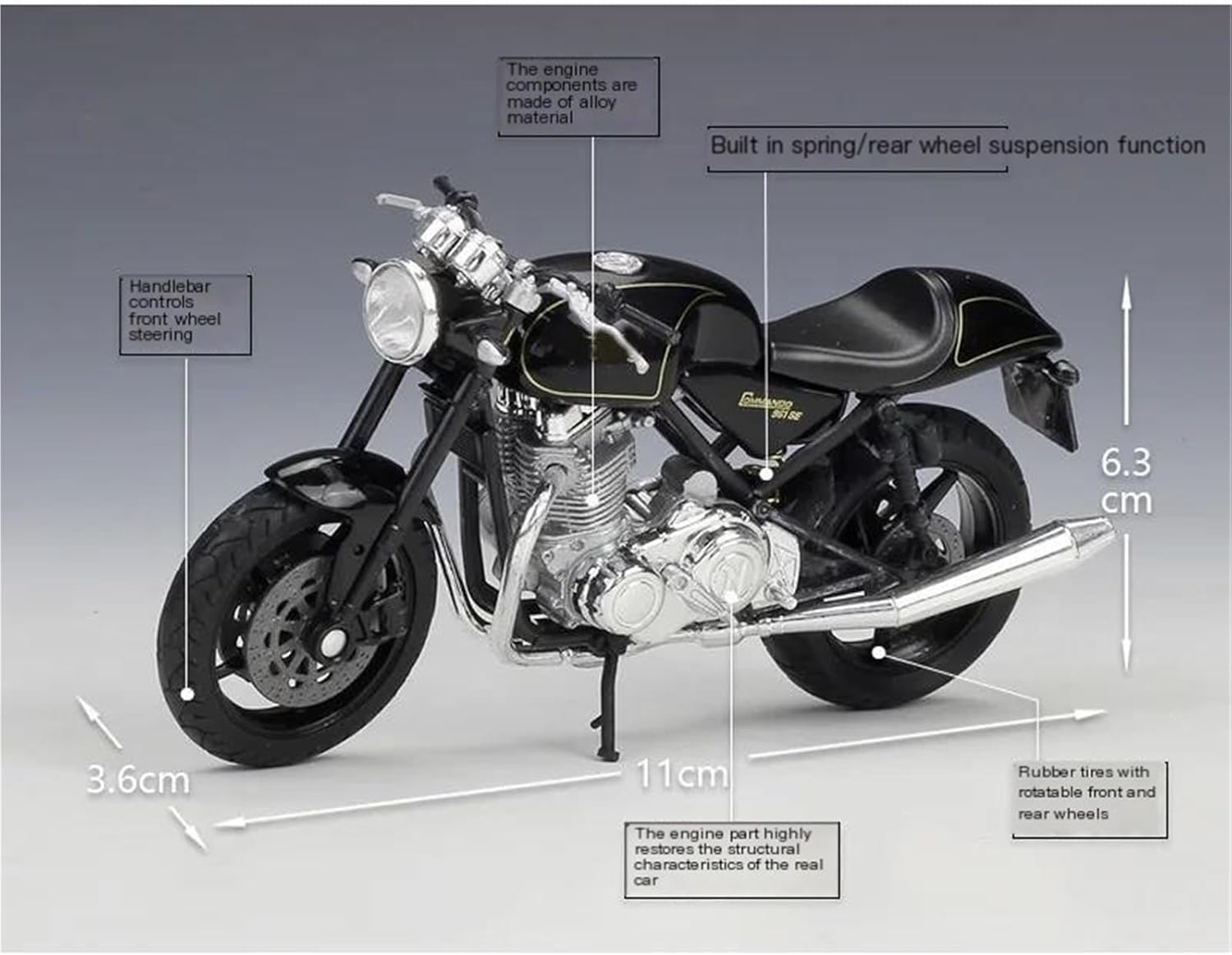 Modellini di motociclette giocattolo in scala 1:18, parti squisite progettate secondo le proporzioni originali dell'auto, cruscotto, pedali del freno e dell'acceleratore sono progettati per essere realistici e precisi. la modalità di simulazione della motocicletta è piena di personalità, così bella. Il modello è durevole e duraturo. La costruzione robusta consente di esporlo con orgoglio anno dopo anno senza rompersi. Modello di motocicletta per Norton Commando 961 Se La finitura liscia e senza sbavature e la vernice lucida e uniforme dimostrano una maestria artigianale eccezionale. Questo modello incarna lo stile di una motocicletta, soddisfacendo l'amore degli appassionati per i modelli nostalgici.