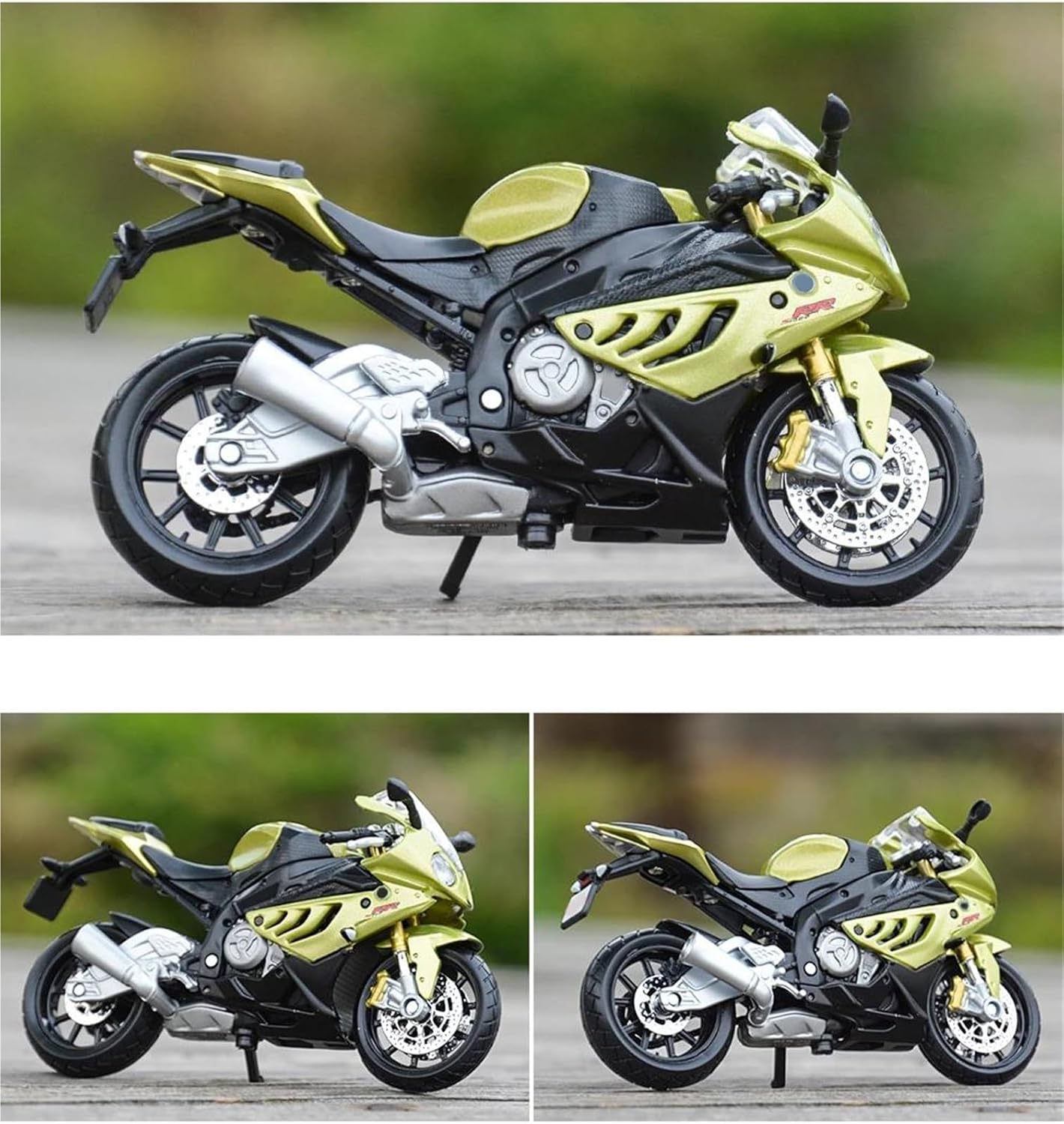 Modellini di moto giocattolo in scala 1:18 per S1000RR S 1000 RR Ruota anteriore e manubrio oscillanti da un lato all'altro, cavalletto mobile, ruote libere, sospensioni posteriori a molla Il design intricato del modello di moto mette in mostra la ricca storia e l'eleganza delle motociclette. Dalle ruote e dai manubri realistici ai tubi di scarico e al motore, ogni elemento è realizzato in modo intricato per catturare l'essenza di un vero classico, rendendolo un regalo ideale per la festa del papà per i papà che amano le motociclette. Realizzato in resistente lega di zinco, è resistente alle cadute e all'usura, garantendo la durevolezza del modello e la sua lunga conservazione. La finitura della vernice è uniformemente liscia, con colori vivaci e duraturi che resistono allo sbiadimento e alle scheggiature, garantendo un aspetto costantemente brillante.