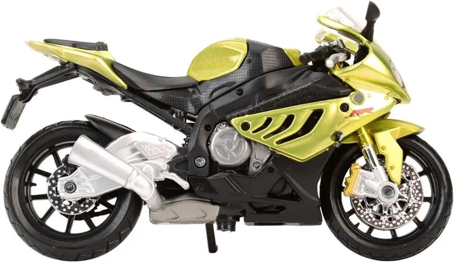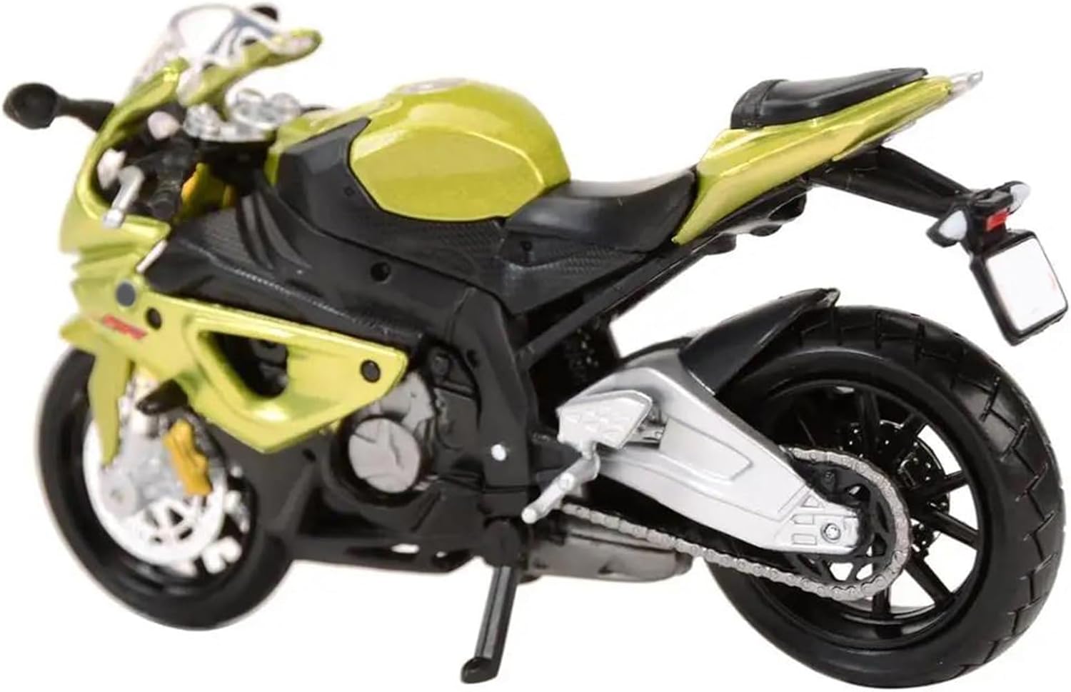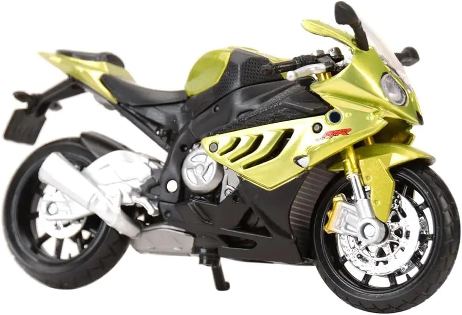 Modellini di moto giocattolo in scala 1:18 per S1000RR S 1000 RR Ruota anteriore e manubrio oscillanti da un lato all'altro, cavalletto mobile, ruote libere, sospensioni posteriori a molla Il design intricato del modello di moto mette in mostra la ricca storia e l'eleganza delle motociclette. Dalle ruote e dai manubri realistici ai tubi di scarico e al motore, ogni elemento è realizzato in modo intricato per catturare l'essenza di un vero classico, rendendolo un regalo ideale per la festa del papà per i papà che amano le motociclette. La finitura liscia e senza sbavature e la vernice lucida e uniforme dimostrano una maestria artigianale eccezionale. Questo modello incarna lo stile di una motocicletta, soddisfacendo l'amore degli appassionati per i modelli nostalgici.