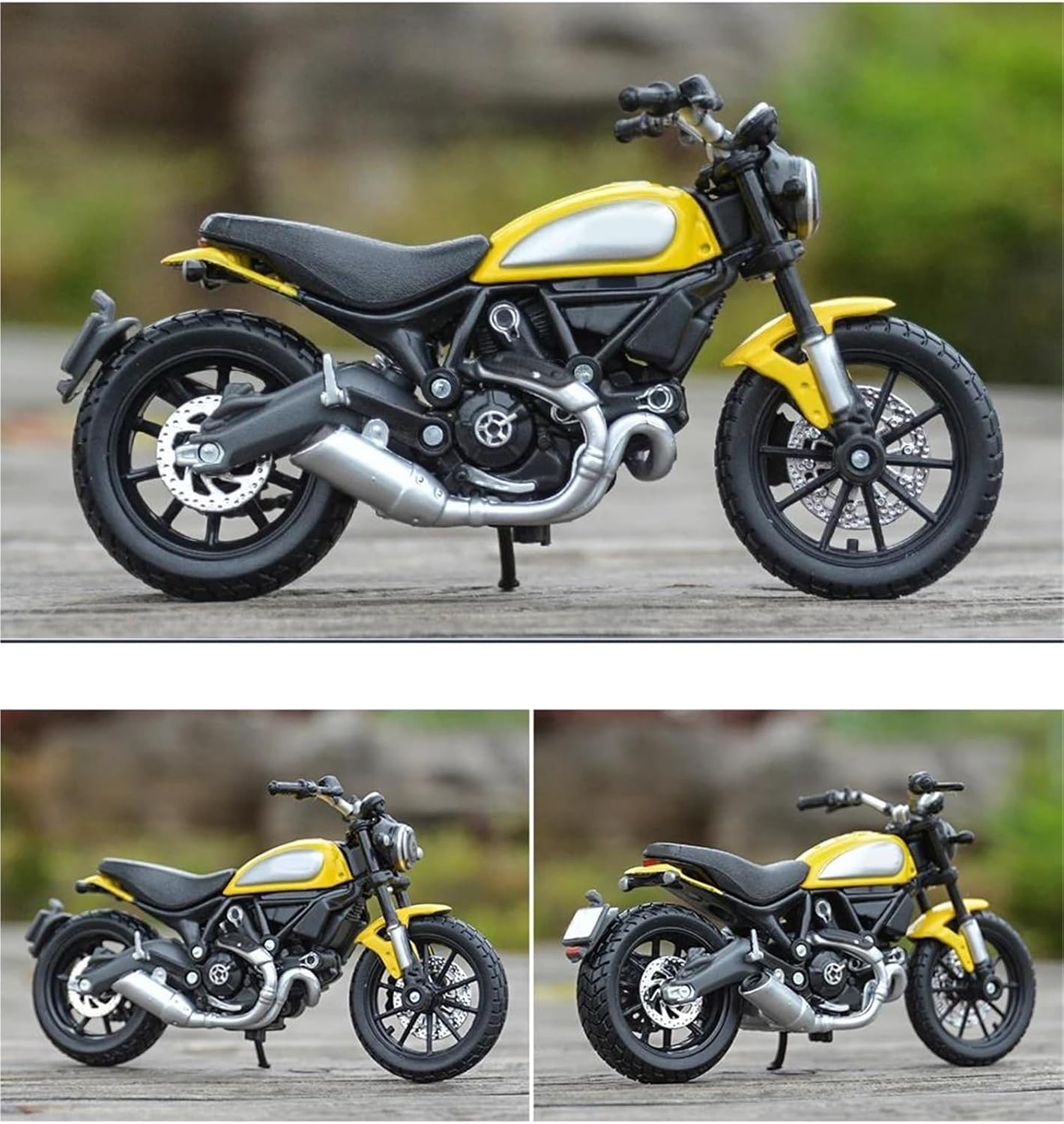 Modellini di motociclette giocattolo in scala 1:18 per Scrambler Modello di motocicletta simulata, ruota anteriore e manubrio oscillanti da un lato all'altro, cavalletto mobile, sospensione posteriore a molla, ruote libere rendendolo un regalo unico e innovativo per adolescenti e adulti a Natale, Ringraziamento, compleanni, festa del papà, ritorno a casa e altre occasioni. Ottimo come regalo, collezione, souvenir, arredamento, casa, ufficio e sala studio. Modello di motocicletta La finitura liscia e senza sbavature e la vernice lucida e uniforme dimostrano una maestria artigianale eccezionale. Questo modello incarna lo stile di una motocicletta, soddisfacendo l'amore degli appassionati per i modelli nostalgici.