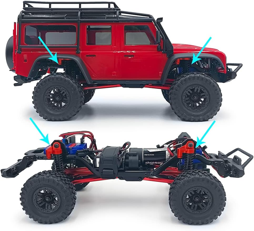 Nome del prodotto: 1/18th RC Car Shock Questo rc auto scosse aggiornamento per TRX4M Bronco Defender 1/18th rc crawler car Facile da installare e durevole. Effetto smorzamento liscio ed eccellente. La parte migliore per modificare e aggiornare la tua auto con telecomando. Foro centro al foro centro: 51 mm. Dopo la compressione: 39 mm