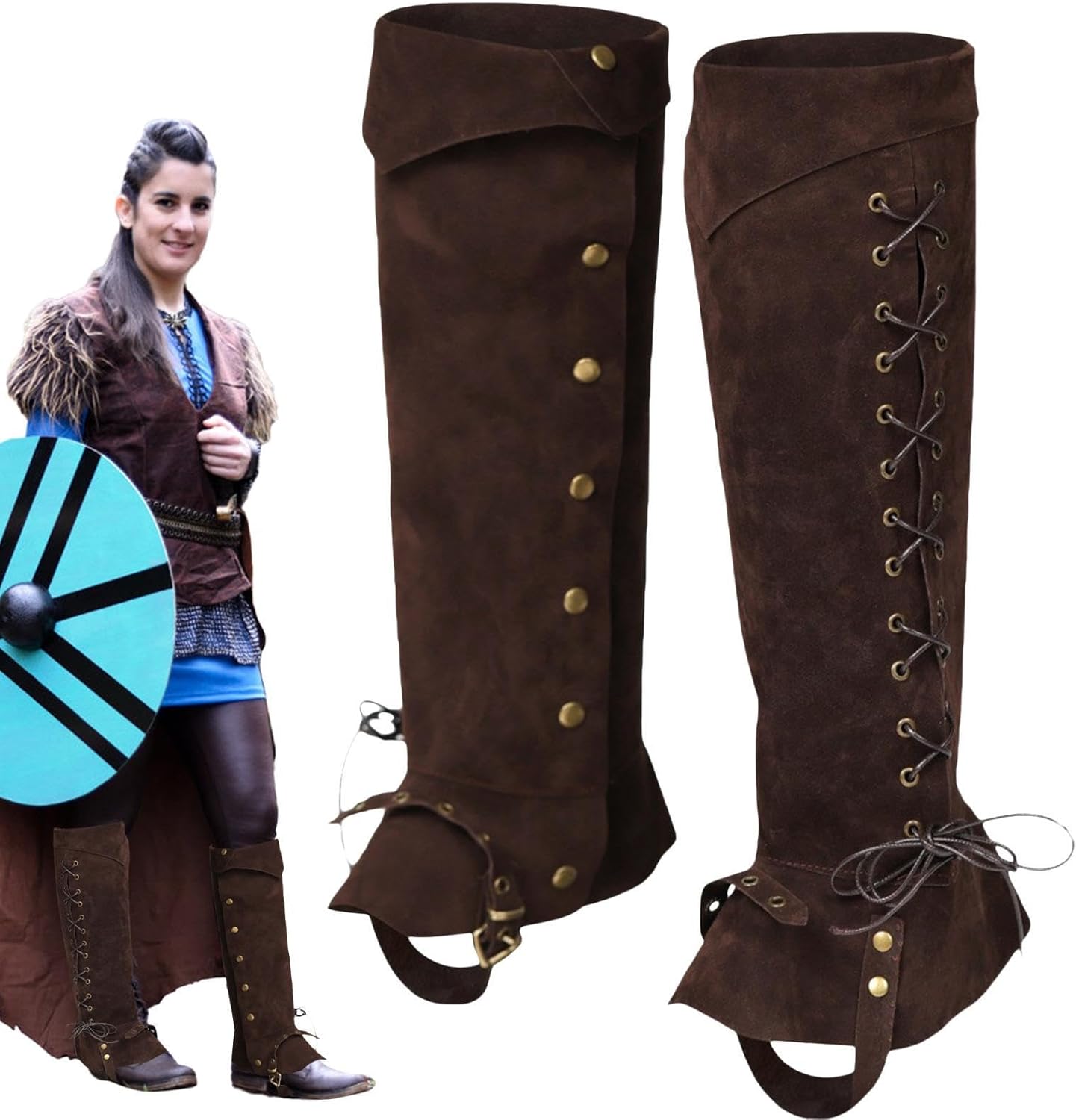 Stile cavaliere retrò: indossare copriscarpe pirata può aiutare a creare uno stile retrò da cavaliere perché è un'imitazione degli stivali da pilota medievale da pirata per adulti con uno stile retrò. Materiale traspirante: i copriscarpe sono comodi, traspiranti, forti, resistenti all'usura e possono essere utilizzati a lungo perché gli stivali da pirata sono realizzati in pelle artificiale. Comodi da indossare: il costume copriscarpe è leggero (circa 300 g), quindi è comodo da indossare. Allo stesso tempo, lo stivale da pirata è pieghevole e facile da riporre e trasportare. Semplice da regolare: con un design con corda elastica, è possibile regolare facilmente i copriscarpe da pirata da uomo per adattarsi meglio agli stivali da pirata in base alla circonferenza del polpaccio. Ampia gamma di applicazioni: è possibile utilizzare i copriscarpe vichinghi per fotografia, feste in maschera, giochi di ruolo, drammi, Halloween, Natale e stivali da pirata, altre attività e uso quotidiano.