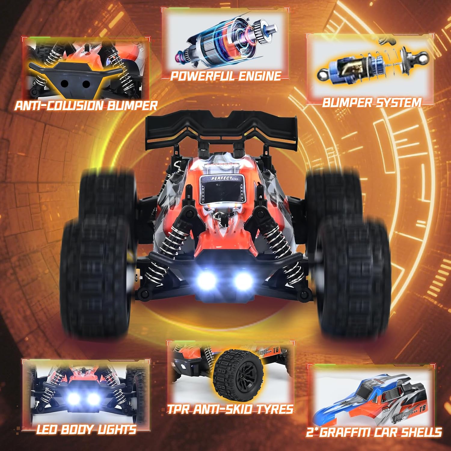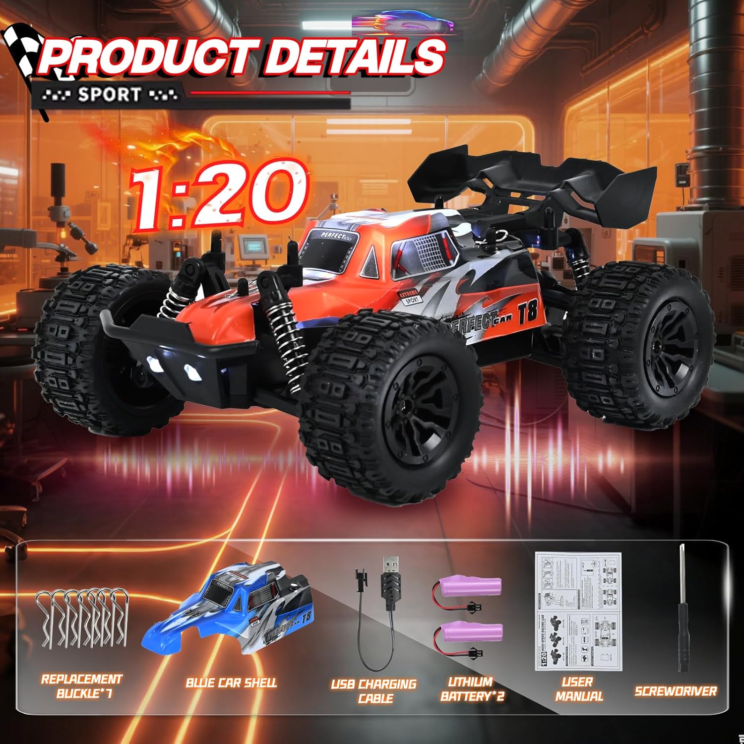 🏆🏆【1:20 Macchina Telecomandata per Bambini】Riceverete 1 fantastico fuoristrada telecomandato in scala 1:20, 2 carrozzerie intercambiabili (blu + rossa), 1 telecomando, 2 batterie ricaricabili, 1 manuale di istruzioni e 1 cacciavite. Questa auto giocattolo telecomandata con carrozzeria intercambiabile è il veicolo perfetto per ogni ragazzo che desidera realizzare il suo sogno di diventare un pilota da corsa. ✨✨【Carrozzeria Intercambiabile】Il set include due fantastiche carrozzerie con bellissimi motivi graffiti. Con i fari a LED, di notte l'auto sembra un animale selvaggio fuggito dalla sua gabbia. In questo modo i bambini possono divertirsi il doppio e godersela il doppio più a lungo! 🏁🏁【Telecomando 2,4 GHz】 La tecnologia radio a 2,4 GHz consente una portata fino a 25 metri e un controllo preciso. Il sistema intelligente di accoppiamento delle frequenze assicura che ogni telecomando controlli la propria auto. In questo modo, più auto possono competere tra loro senza interferire l'una con l'altra, offrendo puro divertimento con il telecomando. 🌈🌈【Carrozzeria Intercambiabile】Il set include due fantastiche carrozzerie con w【Doppia durata della batteria】La confezione include 2 batterie ricaricabili, ciascuna con una durata di circa 25-30 minuti. Grazie agli pneumatici di alta qualità, alla carrozzeria impermeabile e al sistema antiurto, il monster truck telecomandato può guidare senza problemi su terreni complessi come sabbia, erba o ghiaia. È adatto sia ai principianti che ai piloti esperti, consentendo a genitori e figli di organizzare emozionanti inseguimenti. 🎁🎁【Il Regalo Perfetto per i Bambini】Con il suo colorato spettacolo di luci, gli impressionanti effetti fumogeni e le precise prestazioni in derapata, questa supercar telecomandata diventerà sicuramente il giocattolo preferito dei piccoli piloti a partire dai 3 anni. La bella confezione regalo lo rende il regalo ideale per compleanni, Natale e Capodanno, affinché ogni bambino possa vivere i momenti gloriosi di un pilota da corsa!