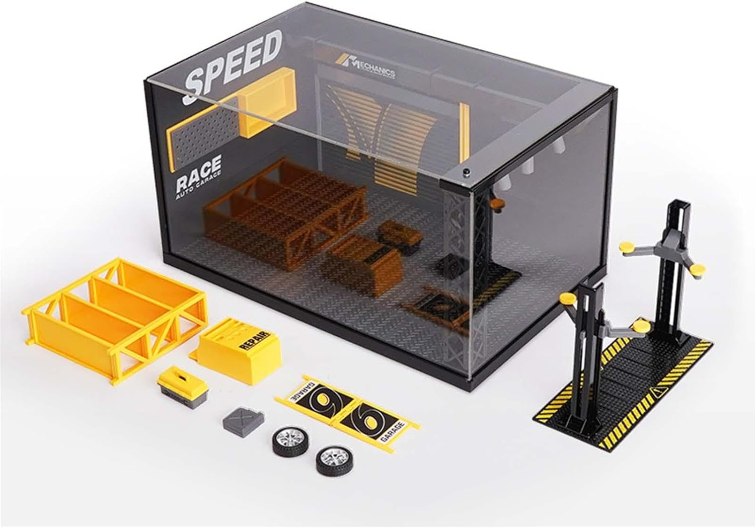【Squisito】: vetrina per garage per auto Diorama con pregevole fattura. Adatto per la visualizzazione di modelli di auto con scene 1/1/24, ornamenti da tavolo in sabbia diorama. 【Con luci】: simulazione in scala 1:24 di un'officina di riparazioni auto modello di parcheggio modello di scena . 【Utilizzo】: modello di garage per auto Diorama può essere utilizzato per la raccolta, l'esposizione, l'ufficio, la casa, la decorazione della scrivania. 【Fai da te】: questo modello di officina di riparazione deve essere installato da solo. 【Ampia applicazione】:Il modello di scena dell'officina automobilistica 1/24 può essere utilizzato per display di modelli di auto, diorami di layout di scene, ornamenti decorativi.