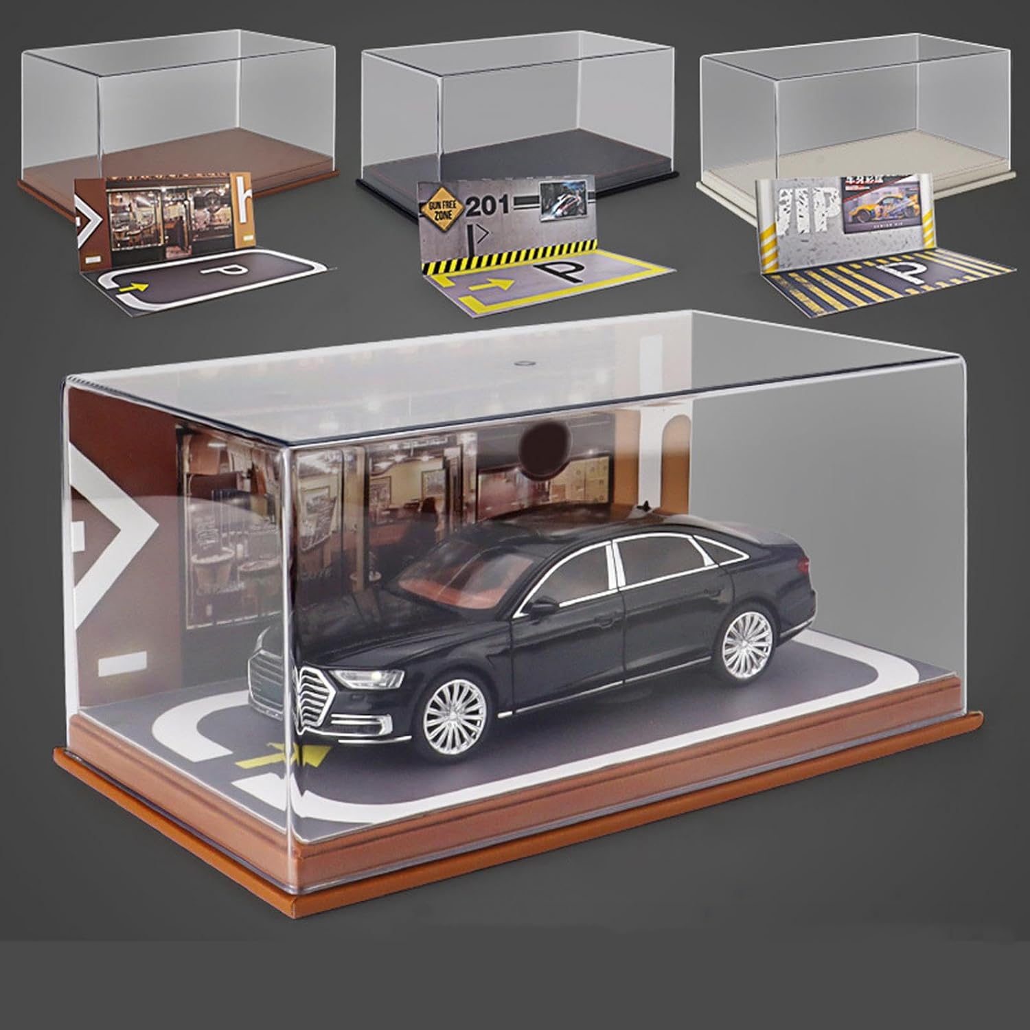 [Vetrina per garage]: vetrina per garage in scala 1/24 con copertura, antipolvere può essere abbinata a bambole, modelli di auto, oggetti di scena fotografici, modelli di parcheggio con scena diorama, ecc. Ampiamente usato: vetrina per auto in scala 1:24 per collezione, display, ufficio, casa, decorazione della scrivania. [1/24 Scenery Simulation Parcheggio]: vetrina per auto da collezione per riporre e visualizzare modelli di auto pressofuse 1/24. [Regalo]: la vetrina per auto hobby è un ottimo regalo di compleanno per collezione, amici, appassionati di modelli di auto Materiale: mini scena di parcheggio in scala 1:24 realizzata in PVC di alta qualità, legno e pelle PU, durevole e squisita fattura.