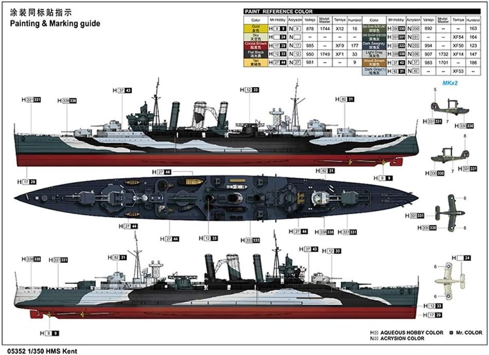 Kit modello in plastica di un incrociatore corazzato britannico del 1900 con 400 parti, parti in metallo e fotoincise e supporto. Lunghezza costruita 548,5 mm / diametro 65,6 mm. Modello: Hms Kent Materiale: kit modello in plastica. Colla non inclusa Produttore: Trumpeter