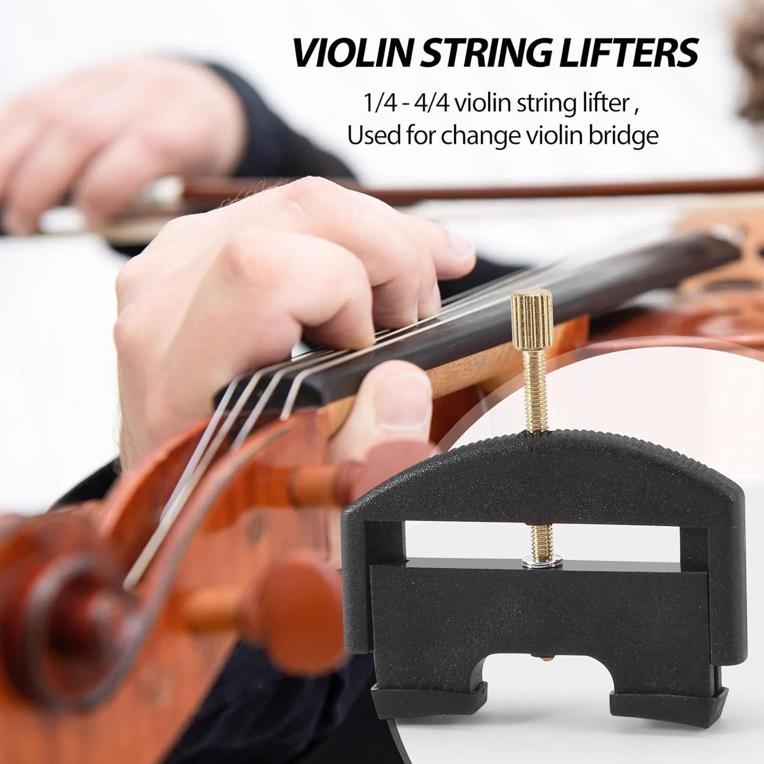 Ne in ogni negozio di violini/violoncelli e in plastica molto resistente per una lunga durata Sollevatore per corde di violino 1/4 - 4/4, utilizzato per cambiare il ponte del violino, sollevare in sicurezza le corde parte superiore seghettata del sollevatore per le corde in posizione, strumenti molto utili. Sollevare in sicurezza le corde parte superiore seghettata del sollevatore per le corde in posizione