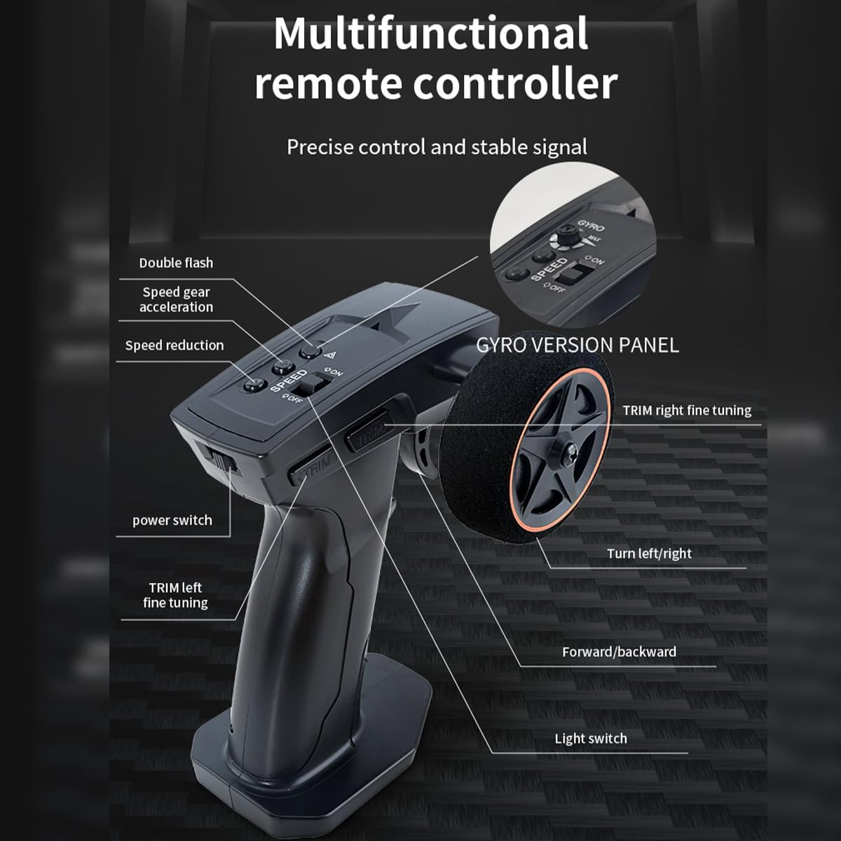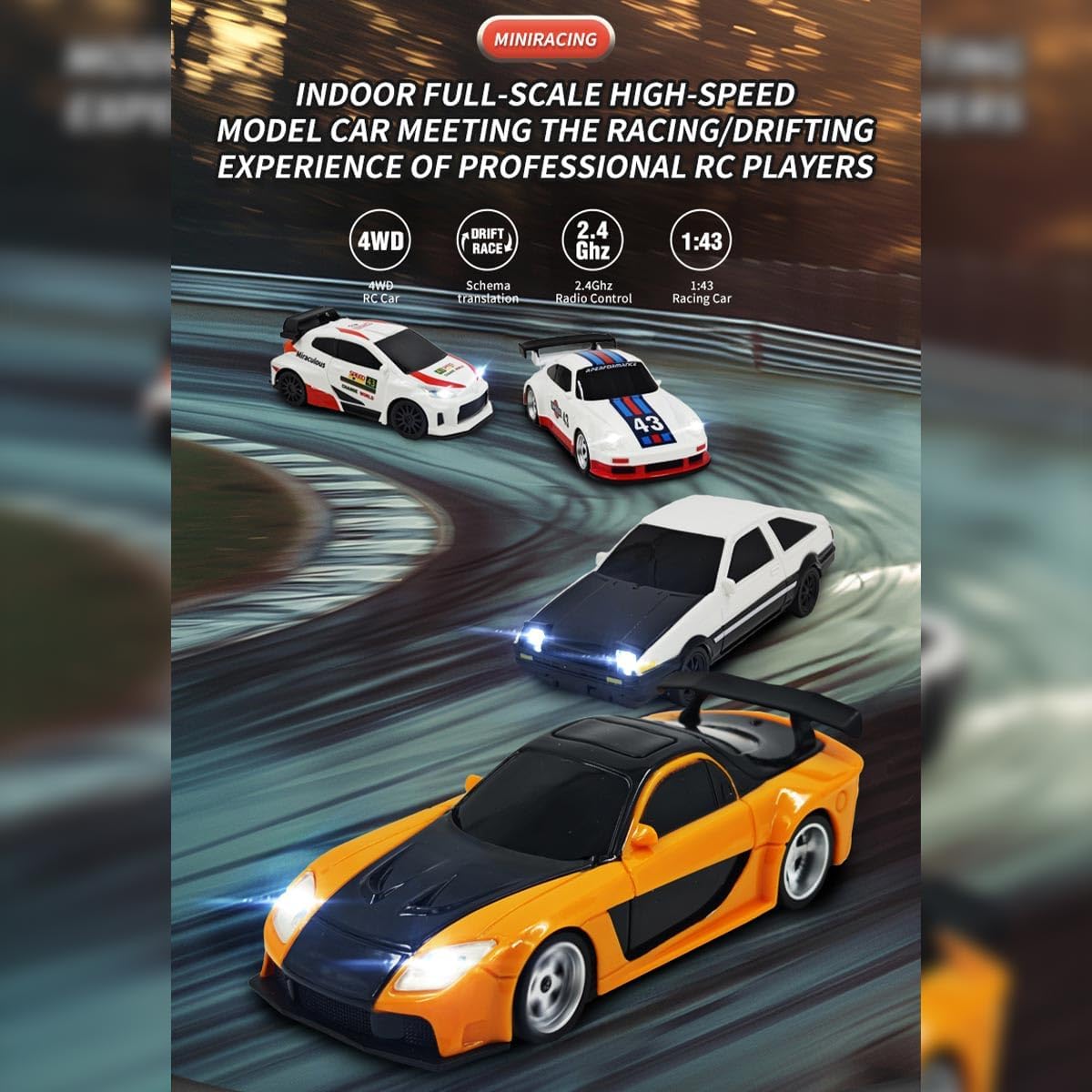 SCALA E DESIGN: mini auto drift da corsa scala 1/43 in elegante finitura bianca, perfetta per corse al coperto e intrattenimento drifting SISTEMA DI GUIDAZIONE: trazione integrale completa combinata con un controllo proporzionale preciso per prestazioni di corsa autentiche SISTEMA DI CONTROLO: Il sistema di controllo avanzato 2.4G garantisce una maneggevolezza reattiva e un funzionamento senza interferenze fino a 30 metri di portata CARATTERISTICHE DI STABILITÀ: il sistema giroscopio integrato offre una maggiore stabilità e controllo durante le manovre ad alta velocità RTR READY TO RUN: telecomando x 1, cavo di ricarica x 1, manuale inglese x 1, pneumatici da corsa/deriva x 4, fusti Roadblock x 8