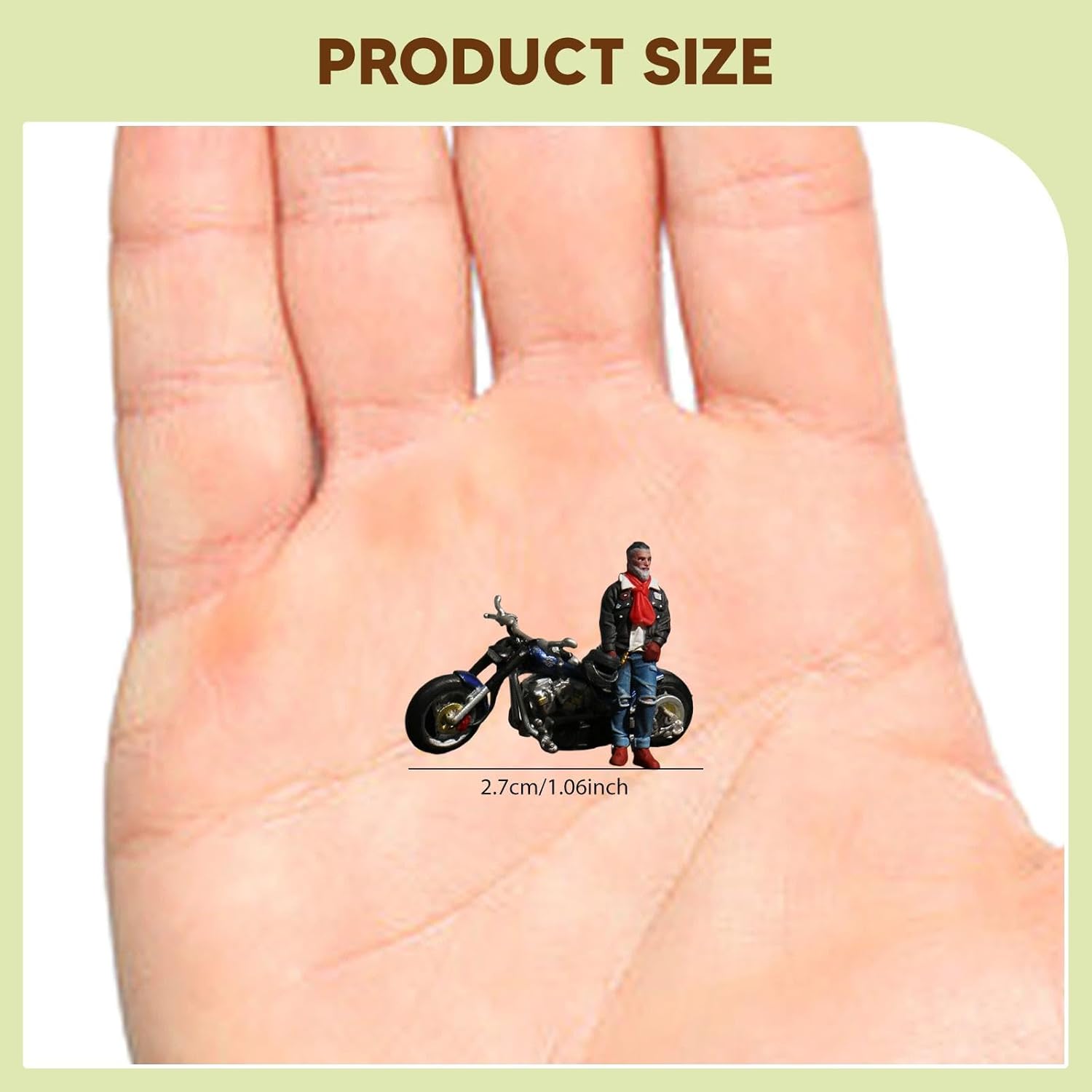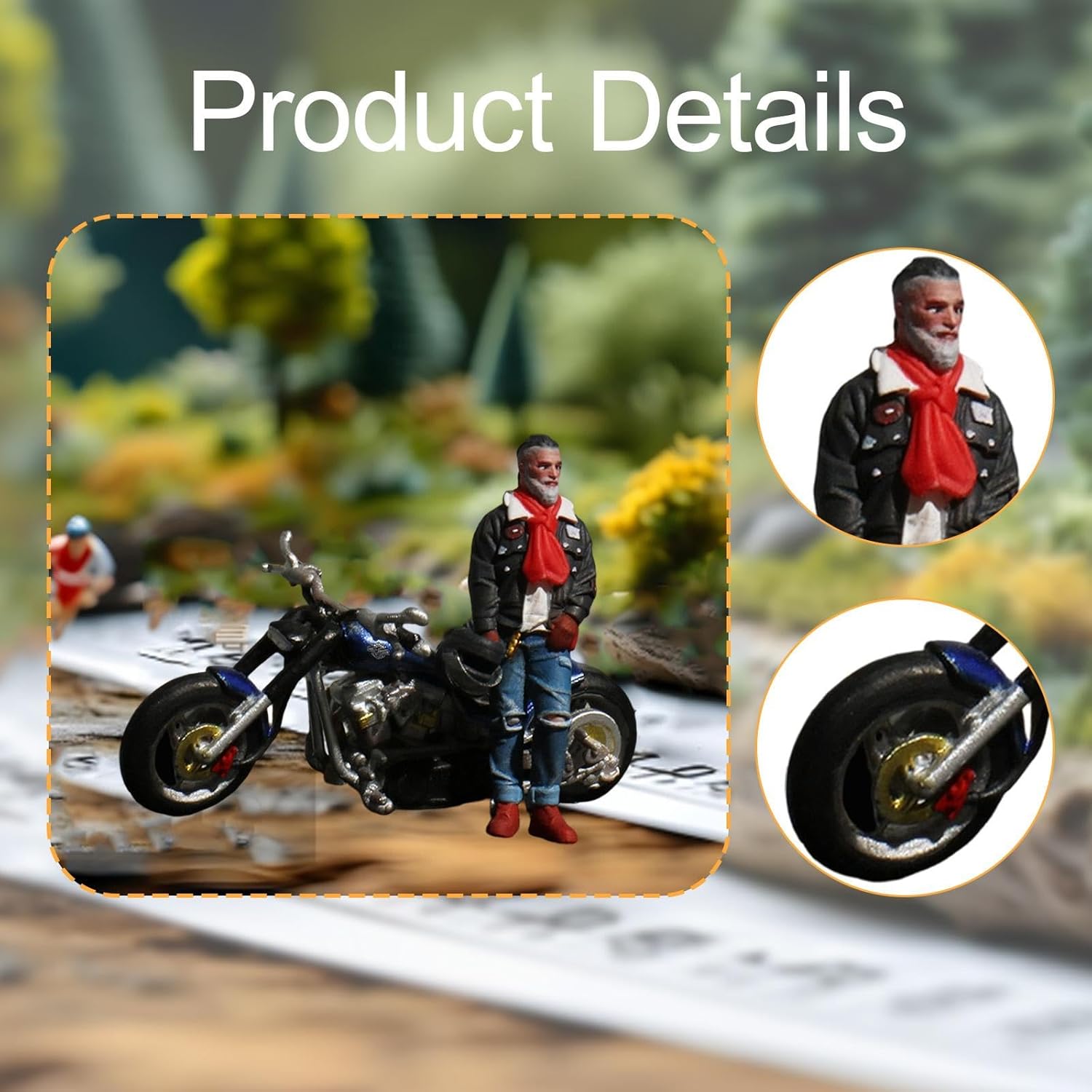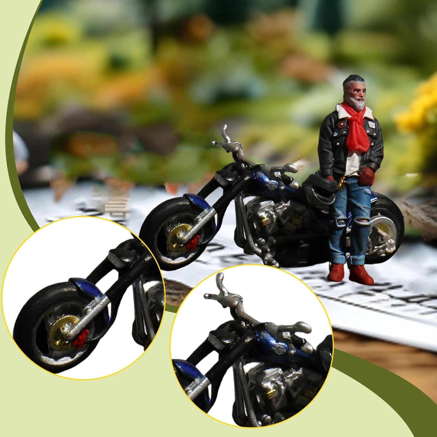 【Modelli in 1:64】: La miniatura del motociclista in 1/64 è perfetta per creare scene in miniatura realistiche, è un bel supporto per la fotografia e un supporto per il layout 【Ampie applicazioni】: il modello di figura in miniatura 1:64 è adatto per giocattoli da costruzione di scenari da tavolo di sabbia, modelli architettonici, decorazioni paesaggistiche in miniatura, accessori per case delle bambole, ornamenti da scrivania, ecc. 【Bel regalo】: il piccolo diorama è un regalo da collezione ideale per bambini e adulti in occasione di compleanni e festival, è una bella aggiunta alla collezione di qualsiasi appassionato di modellismo 【Materiale di alta qualità】: la statuetta in miniatura dipinta è realizzata in resina, ha una lavorazione e dettagli raffinati, non si rompe facilmente e garantisce un lungo utilizzo 【Figura di scena in miniatura】: la mini statuetta del motociclista ha una posa vivida e dettagliati, che possono aiutare ad arricchire le tue scene di modellismo. Altezza della figura: circa 2,7 cm / 1,06 pollici, lunghezza della motocicletta: circa 2,7 cm / 1,06 pollici