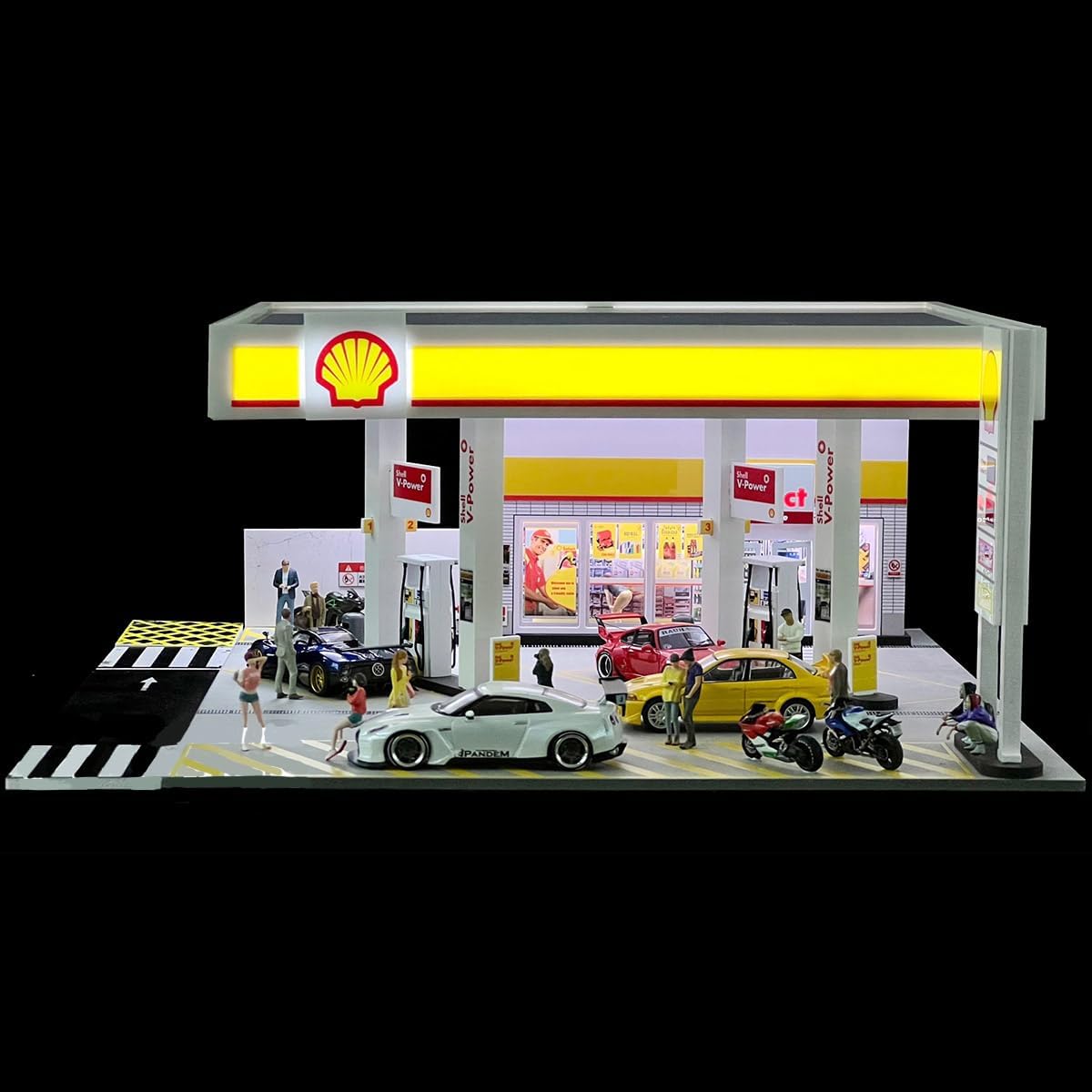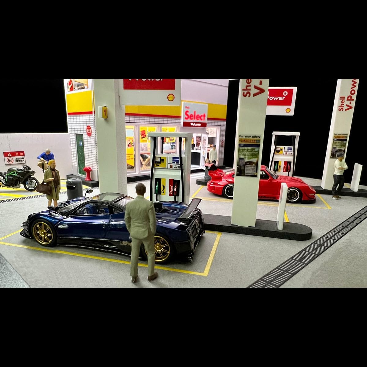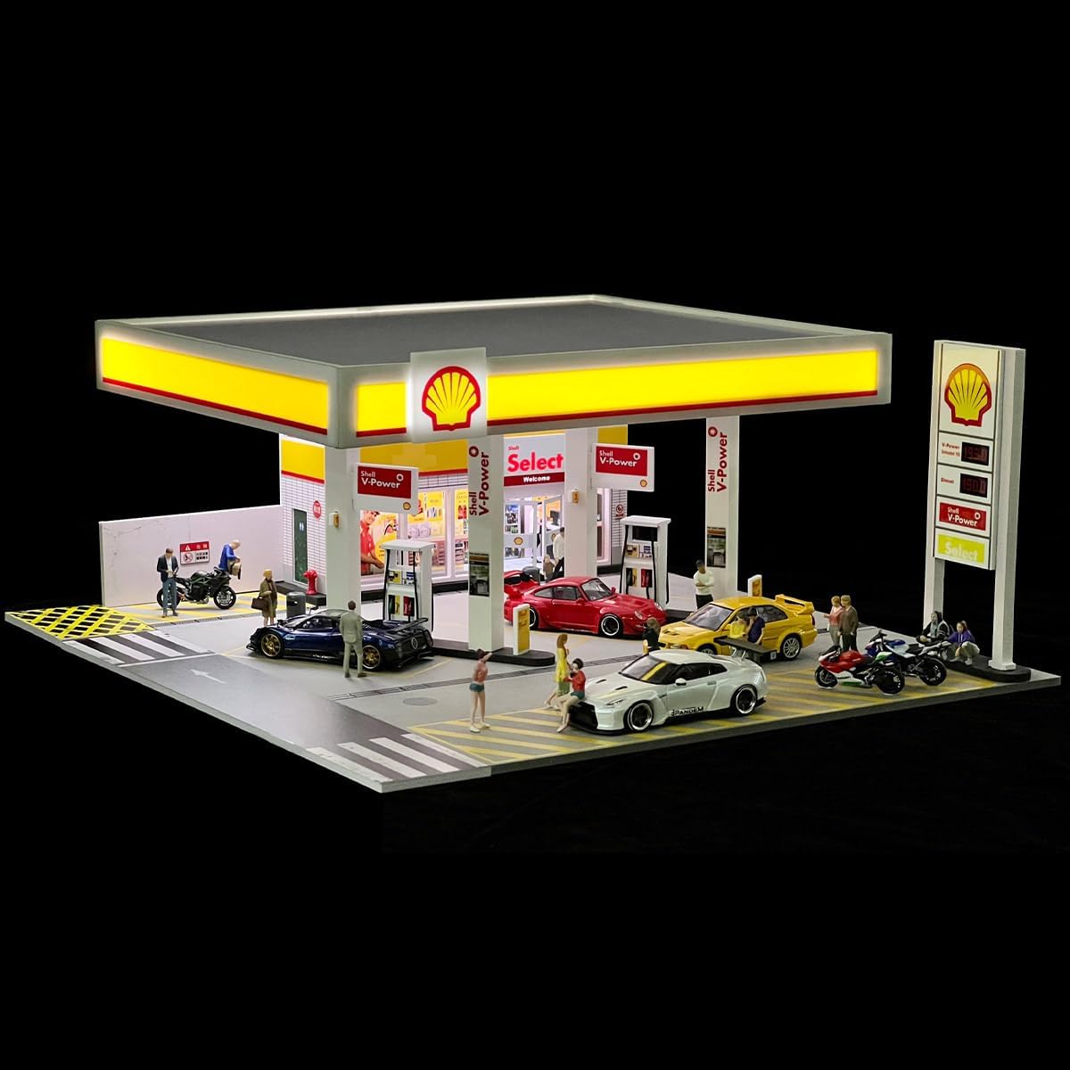 Architettura autentica Shell Station in scala 1:64: questo diorama in miniatura ricrea accuratamente il design iconico di una stazione di servizio Shell, completa di tettoia, segnaletica e zone di rifornimento. Perfettamente scalato per auto pressofuse 1:64, porta un senso di realismo al tuo espositore automobilistico o scaffale da collezione. Incredibile attenzione ai dettagli in ogni elemento: ogni componente è realizzato con precisione, creando una scena ricca e coinvolgente. Ideale per collezionisti che apprezzano i dettagli in miniatura raffinati. (Nota: questo modello non include auto o personaggi) Piena compatibilità con auto in pressofusione 1:64: progettata per un uso senza soluzione di continuità con tutte le principali marche in scala 1:64. Facilmente espandibile e personalizzabile, questo set ti consente di costruire la tua scena culturale in miniatura dell'automobile, perfetta per visualizzazione, fotografia o configurazioni narrative. Modulare e interattivo per display creativo: elementi riorganizzabili, consentendo layout dinamici come rifornimento, coda o fermate lungo la strada. Incoraggia la narrazione creativa e costituisce un ottimo centrotavola per qualsiasi diorama di auto modello. Illuminazione integrata per scene notturne realistiche: dotata di effetti di luce per simulare una stazione di servizio funzionante di notte. Combinata con elementi di scena dettagliati, l'illuminazione aggiunge profondità e realismo, perfetta per mostrare le tue auto in un ambiente urbano realistico.