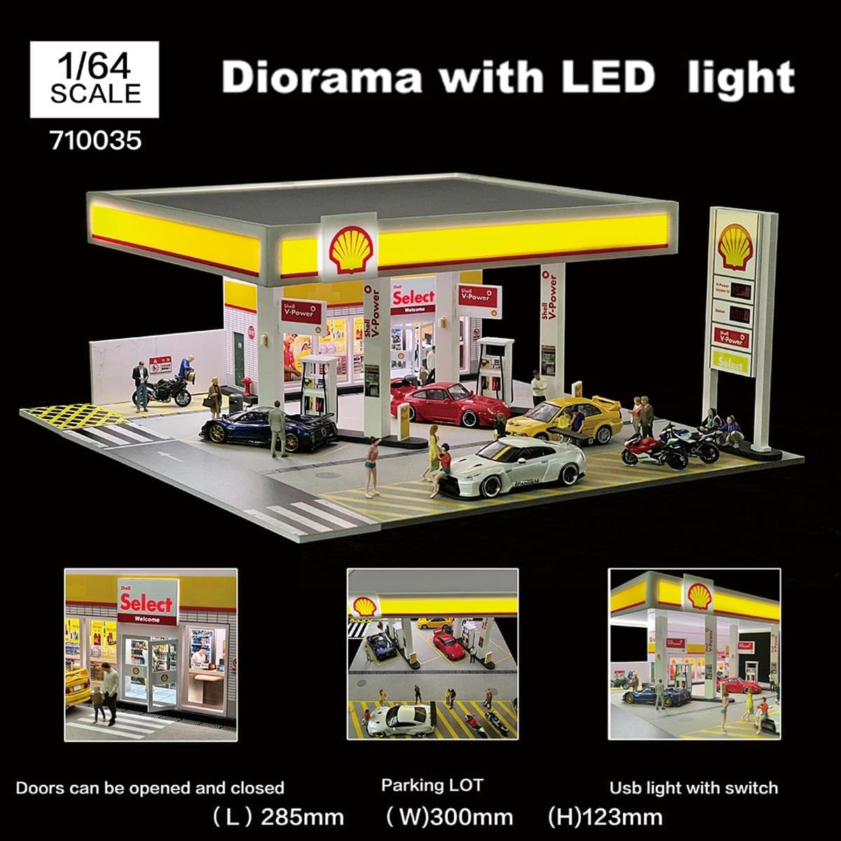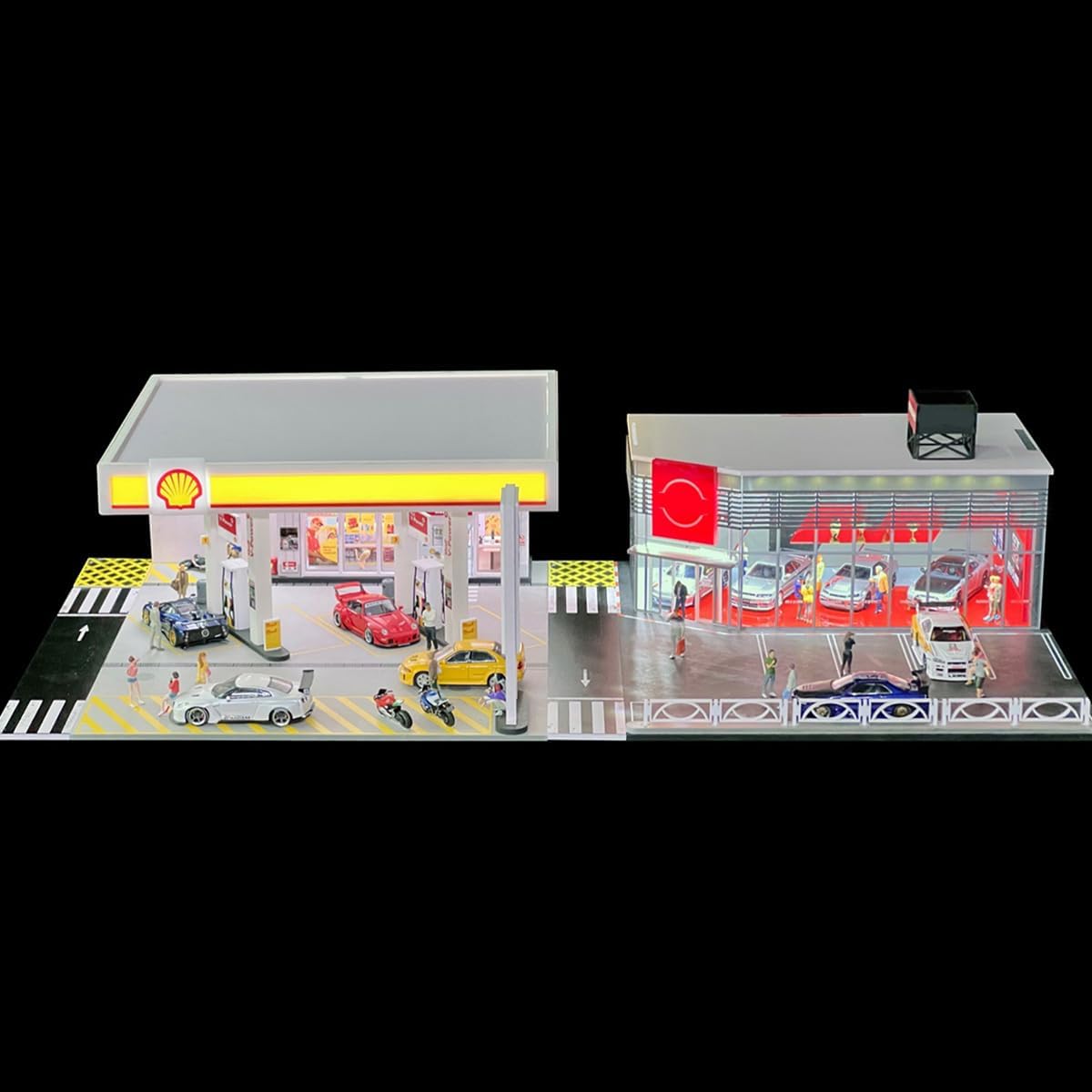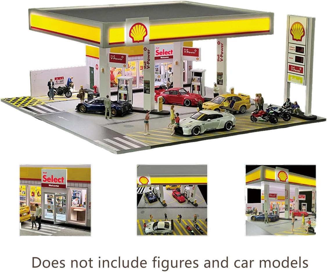 Architettura autentica Shell Station in scala 1:64: questo diorama in miniatura ricrea accuratamente il design iconico di una stazione di servizio Shell, completa di tettoia, segnaletica e zone di rifornimento. Perfettamente scalato per auto pressofuse 1:64, porta un senso di realismo al tuo espositore automobilistico o scaffale da collezione. Incredibile attenzione ai dettagli in ogni elemento: ogni componente è realizzato con precisione, creando una scena ricca e coinvolgente. Ideale per collezionisti che apprezzano i dettagli in miniatura raffinati. (Nota: questo modello non include auto o personaggi) Piena compatibilità con auto in pressofusione 1:64: progettata per un uso senza soluzione di continuità con tutte le principali marche in scala 1:64. Facilmente espandibile e personalizzabile, questo set ti consente di costruire la tua scena culturale in miniatura dell'automobile, perfetta per visualizzazione, fotografia o configurazioni narrative. Modulare e interattivo per display creativo: elementi riorganizzabili, consentendo layout dinamici come rifornimento, coda o fermate lungo la strada. Incoraggia la narrazione creativa e costituisce un ottimo centrotavola per qualsiasi diorama di auto modello. Illuminazione integrata per scene notturne realistiche: dotata di effetti di luce per simulare una stazione di servizio funzionante di notte. Combinata con elementi di scena dettagliati, l'illuminazione aggiunge profondità e realismo, perfetta per mostrare le tue auto in un ambiente urbano realistico.