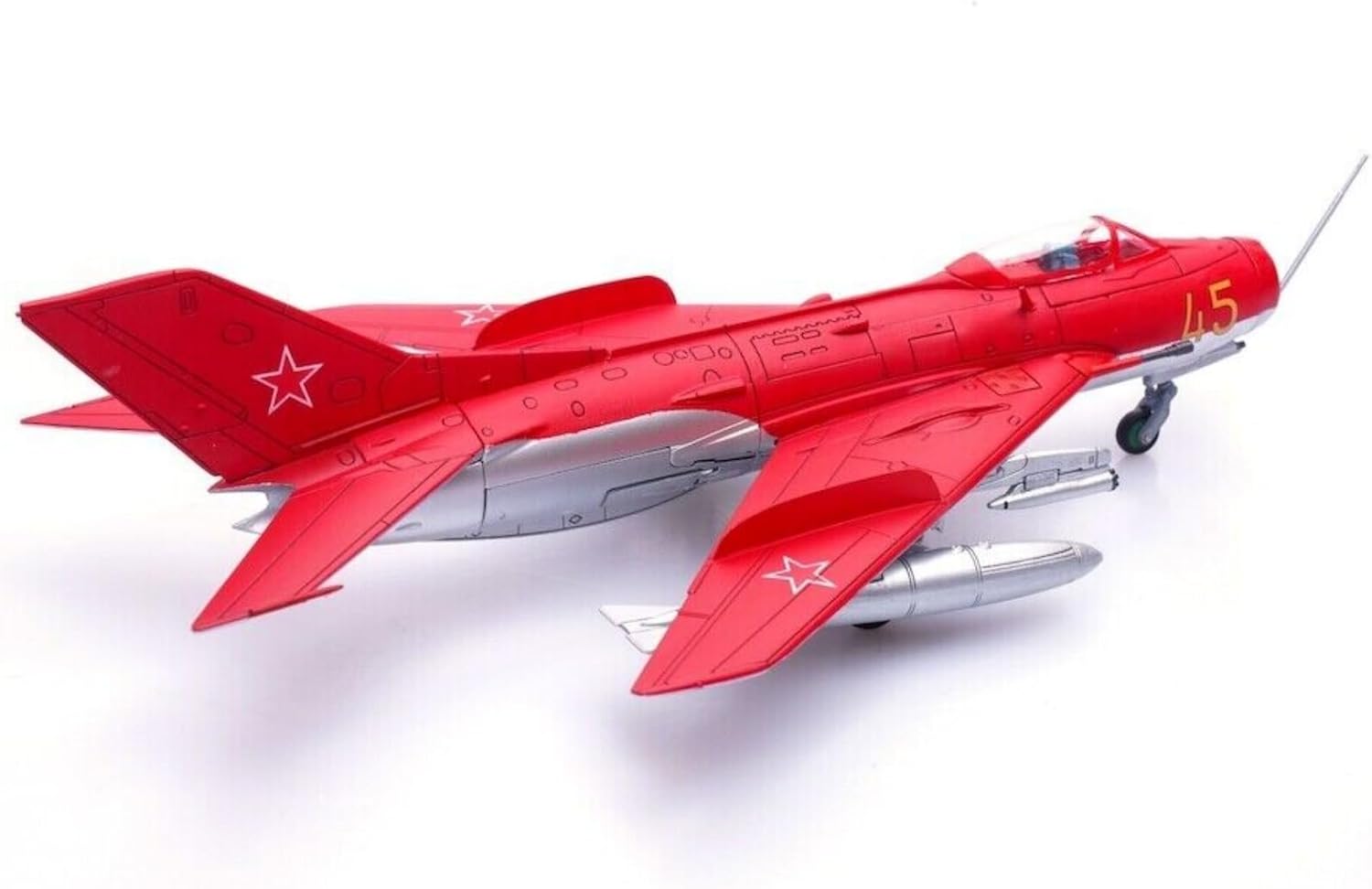 Aereo modello: caccia sovietico MiG-19 Aereo da collezione: aereo da combattimento sovietico MiG-19 modello in scala 1:72 La lunghezza del modello è di 20,3 cm Aerei Diecast: Il Modello Di Aeroplano È Rigorosamente Restaurato Secondo Le Proporzioni E I Dettagli Dell'Aeromobile Originali. Modello in lega pressofusa di alta qualità. Modello decorativo: il modello aereo è molto adatto per decorare la scrivania, la vetrina e la mensola. Regalo perfetto: la grande scelta regalo per compleanno, Natale, festa del papà per il tuo amante, appassionato di aviazione, collezione di aerei.