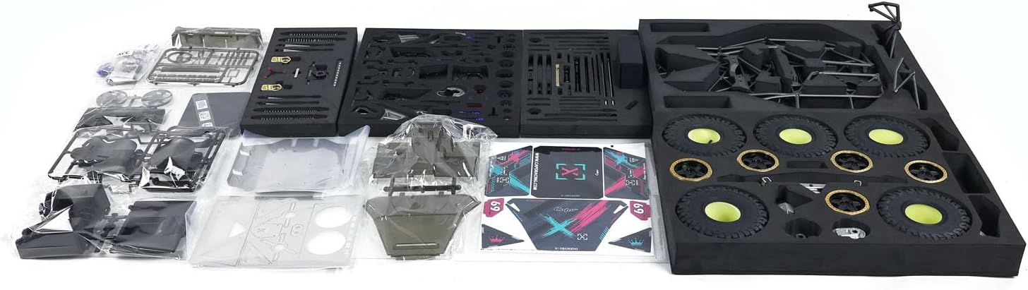 Voll-Aluminium-Legierung Rahmenstruktur: - Überwindet das Eigengewichtsproblem herkömmlicher Metallmaterialien. - Erzielt ein optimales Gleichgewicht zwischen Stärke und Leichtbau. - Aktualisierte Herstellungsverfahren und Materialien für eine zuverlässigere und detailliertere Struktur. COMMANDER-Lenksystem: - Die Simulation einer echten Zahnstangenlenkung sorgt für mehr Stabilität und Effizienz. CNC-Vollmetall-Fahrwerk: - Hergestellt mit CNC-Vollmetallverarbeitungstechniken. - Verfügt über blockierbare vordere und hintere Stabilisatoren. - Ausgestattet mit vier Sätzen von Zahnrädern und vier Sätzen von Dämpfungsstoßdämpfern, zusammen mit unabhängigen vorderen und hinteren geraden Brückenzugstangen. CNC-Vollmetall-Getriebebox mit zwei Geschwindigkeiten: - Enthält ein Zweigang-Getriebe, das durch CNC-Vollmetallverarbeitung hergestellt wird. - Verwendet mittelharten Kohlenstoffstahl mit gehärteten Schrägstirnrädern. - Effiziente 1:19,8-1:73 Dual-Speed-Getriebeübersetzungen, die Leistungswidersprüche zwischen Laufen und Klettern überwinden.