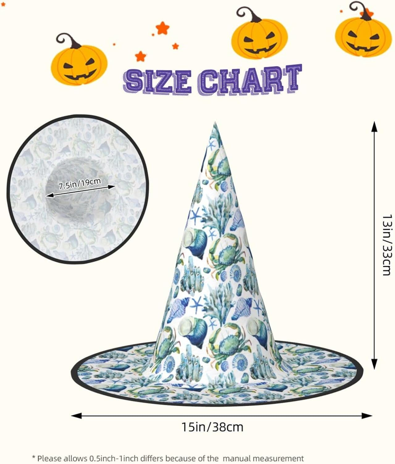 I cappelli da strega di Halloween a forma di conchiglia di granchio sono per adulti. \rIl cappello da strega è un ottimo accessorio per il costume di Halloween. Materiale: realizzato in resistente tessuto Oxford, morbido, confortevole e caldo. Dimensioni: standard. Dimensioni del prodotto: 33 x 38 cm. Perfetto per Halloween, Natale, balli in maschera, cosplay, riunioni, carnevali