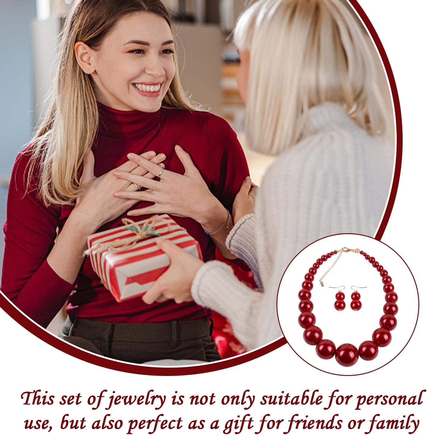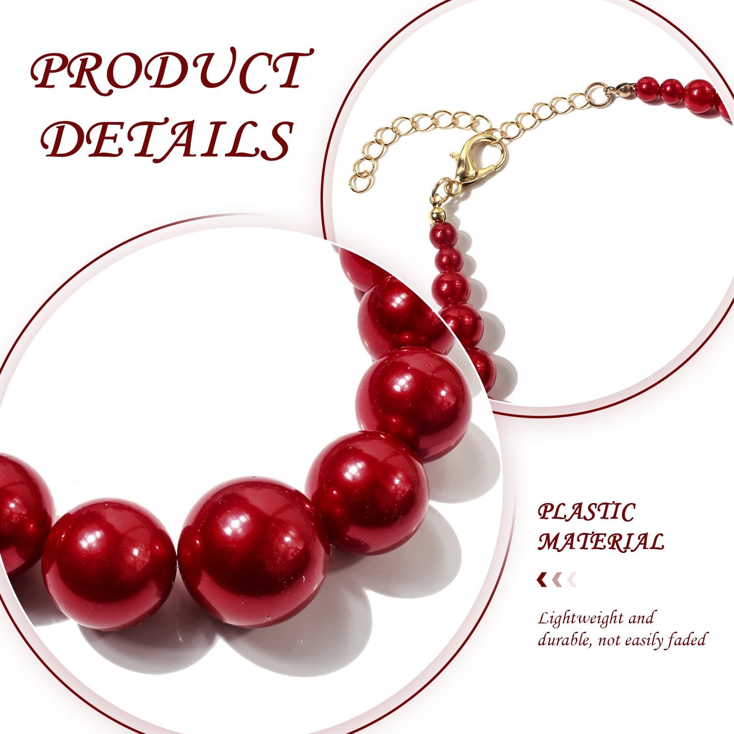 【Contenuto Del Prodotto】 Riceverai 1 Collana Di Perline E 1 Paio Di Orecchini. La Collana Ha Dimensioni Di Circa 41-50 Cm E Il Colore È Rosso; Gli Orecchini Hanno Dimensioni Di Circa 2 Cm E Il Colore È Rosso, Che È Adatto Per Abbinare Con Vari Vestiti. 【Materiale Del Prodotto】 La Collana E Gli Orecchini Sono Realizzati In Plastica, Che Sono Leggeri E Durevoli. Il Materiale Plastico Rende I Gioielli Alla Moda E Facili Da Indossare E Ha Alcune Proprietà Impermeabili E Non È Facile Da Sbiadire. 【Design Semplice】 Questo Design Del Prodotto È Semplice Senza Perdere Il Suo Stile Retrò. La Collana E Gli Orecchini Con Perline Per Perle Di Perle Aggiungono Una Sensazione Elee Alla Forma Generale, Che È Molto Adatta Come Accessorio Per L'Usura Quotidiana O Occasioni Speciali. 【Applicazione Multifunzionale】 Questo Set Di Gioielli Non È Solo Adatto Per Uso Personale, Ma Anche Molto Adatto Ai Regali Ad Amici O Familiari. Che Si Tratti Di Un Compleanno, Un Festival O Altre Occasioni Speciali, Può Aggiungere Un Fascino Di Moda Unico. 【Autod Industria】 Questo Design Di Gioielli Si Concentra Sull'Usura Del Comfort. La Collana E Gli Orecchini Sono Leggeri E Non Causano Irritazione Alla Pelle. Può Essere Tenuto Comodo Anche Dopo Aver Indossato Per Molto Tempo.
