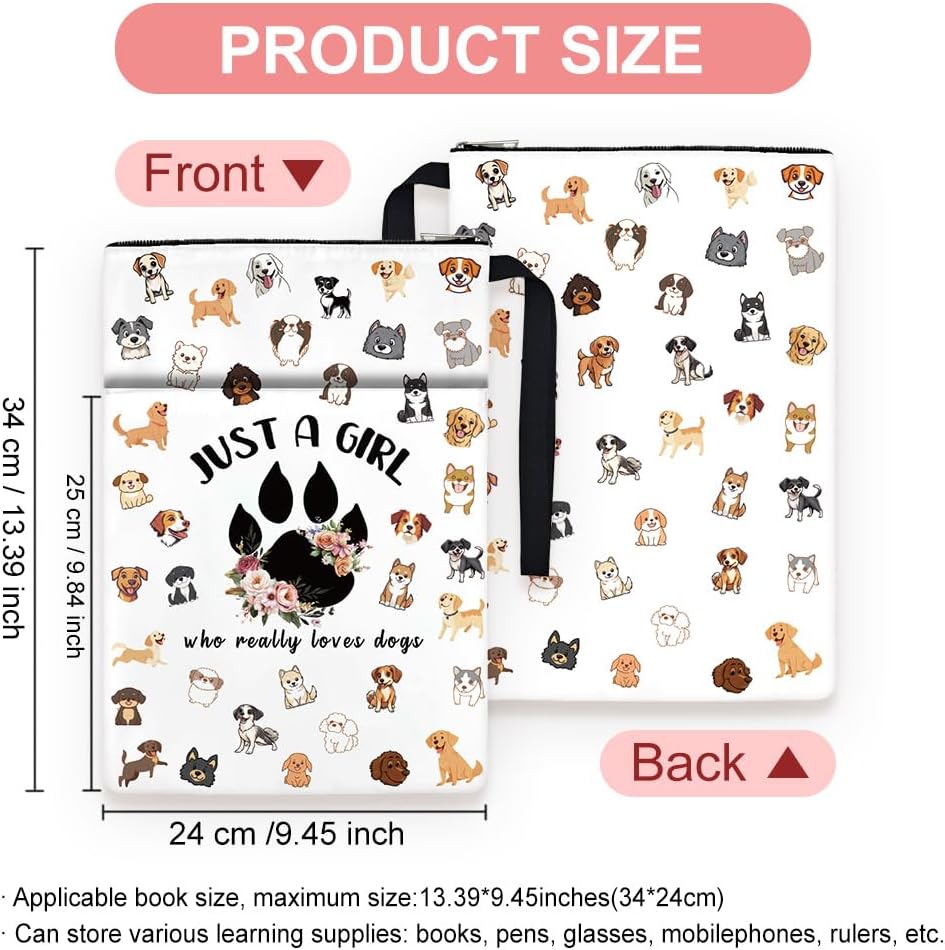 Design a scavo dei cartoni animati: la copertina del libro è stata progettata come vari motivi di cani e un artiglio di cane al centro, stampa con parole, solo una ragazza che ama davvero i cani, che sembra molto carina. I colori classici e il design unico aggiungono un tocco di moda alla copertina del libro. Dimensioni: la confezione include 1 copertina per libri con motivo di cani, la dimensione è lunga 34 cm e larga 24 cm, che è spaziosa per copertina rigida, copertina rigida, libri tascabili, libri morbidi, pad, romanzi e la maggior parte dei libri di dimensioni standard. Materiale: la copertina è realizzata in poliestere con imbottitura leggera impermeabile che è stata resistente e può proteggere i tuoi libri o altri oggetti da polvere e acqua. Con cerniera e tasca esterna: la copertina del libro si chiude con una cerniera liscia in modo che il libro non scivoli accidentalmente dalla custodia del libro migliorando la tenuta e la sicurezza. Ha una tasca extra e la dimensione è lunga 25 cm e larga 14 cm, che può contenere alcuni piccoli oggetti per renderlo più organizzato. Ampia applicazione: la copertina del libro ha una corda portatile che è comoda da trasportare, quindi gli accessori per libri non sono utilizzati solo come custodia per il trasporto di libri, ma come borsa da viaggio, borsa cosmetica, regali a tema club di libri, organizzazione di forniture per ufficio, grande sacchetto con cerniera e così via.