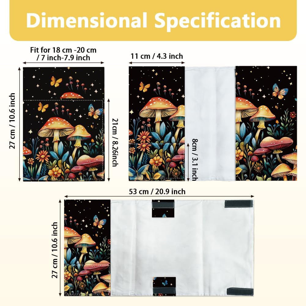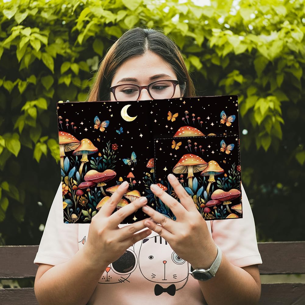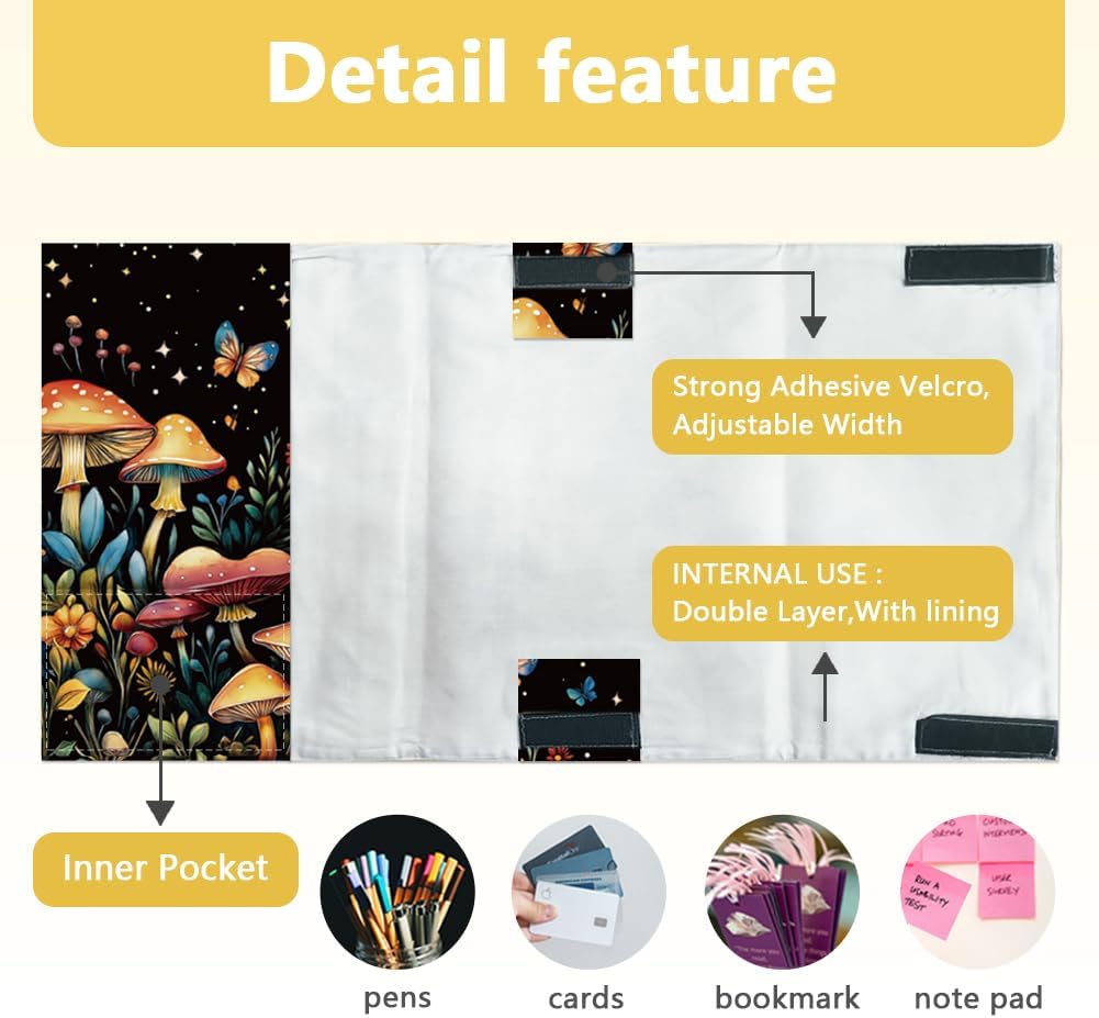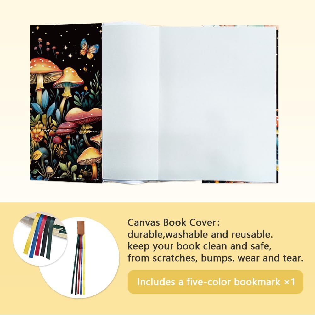 Design a funghi: la copertina per libri è progettata come motivo a funghi, i cespugli di funghi sono vivaci nel silenzio della notte, e alcune farfalle svolazzano su di loro, colori vivaci e motivi da sogno rendono i tuoi libri alla moda, accattivanti e riconoscibili. Misura regolabile: la protezione per copertina con chiusura in velcro, la larghezza della copertina è regolabile a sinistra e a destra. La dimensione aperta è di 68 cm di lunghezza e 29,5 cm di larghezza. La copertina per libri è di circa 27 cm di larghezza e 53 cm di lunghezza. Copertine per libri tascabili grandi, Bibbia, edizione rilegata, romanzi, quaderni, ecc. Materiale in poliestere riutilizzabile: la custodia per libro è realizzata in poliestere, lavabile e riutilizzabile. Può proteggere efficacemente il tuo libro da graffi, urti, usura. Mantieni il tuo libro pulito e protetto. Con tasche multiple e segnalibri: la copertina del libro contiene 1 grande tasca frontale e 1 piccola tasca interna, puoi mettere penne, carte, taccuini e altri oggetti. Ogni copertina del libro ha anche un segnalibro per trovare facilmente una pagina specifica., molto facile da usare. Regalo ideale: i motivi eleganti, carini e alla moda in poliestere riutilizzabile sono un regalo perfetto per il compleanno e le feste per i tuoi amanti dei libri, adolescenti e adulti. Senza paura di angoli danneggiati o coperture graffiate. Ti divertirai di più a tenere un libro in mano..