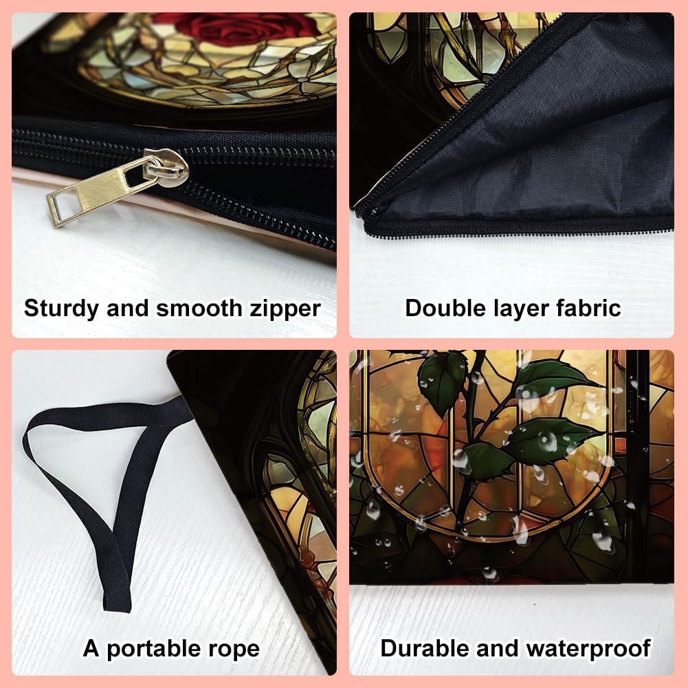 Design con rose e specchio: la copertina della copertina del libro è splendidamente progettata e stampata con un motivo a rose rosse e a specchio, non solo dona al tuo libro un tocco di bellezza naturale, ma offre anche un piacere visivo che rende la tua esperienza di lettura più piacevole. Dimensioni: la confezione include 1 copertina per libri tascabili, la dimensione è lunga 34 cm e larga 24 cm, spaziosa per copertina rigida, libri tascabili, libri morbidi, pad, romanzi e la maggior parte dei libri in formato standard. Materiale in poliestere: la copertina per libri è realizzata in poliestere con imbottitura impermeabile e leggera, resistente e può proteggere i tuoi libri o altri oggetti da polvere e acqua. Con chiusura lampo e tasca esterna: la tasca per libro si chiude con una cerniera liscia, in modo che il libro non scivoli accidentalmente dalla copertina del libro e allo stesso tempo migliorando la tenuta e la sicurezza. Ha una tasca aggiuntiva e la dimensione è lunga 25 cm e larga 14 cm, dove è possibile riporre piccoli oggetti per mantenere più ordine. Ampia applicazione: la protezione per libri ha una corda portatile che è comoda da trasportare, così gli accessori per libri non servono solo come protezione per i libri, ma anche come borsa per il trasporto, ma come borsa da viaggio, trousse per cosmetici, regali a tema club del libro, organizzazione di forniture per ufficio, grande tasca con cerniera e così via.