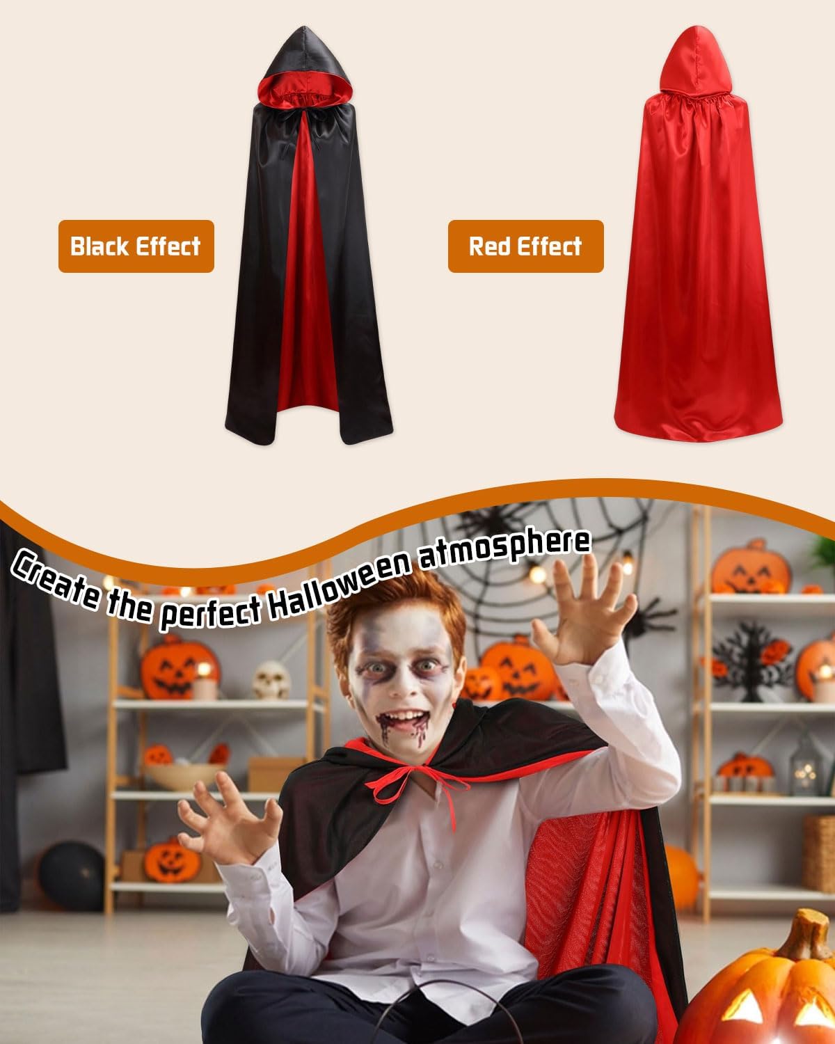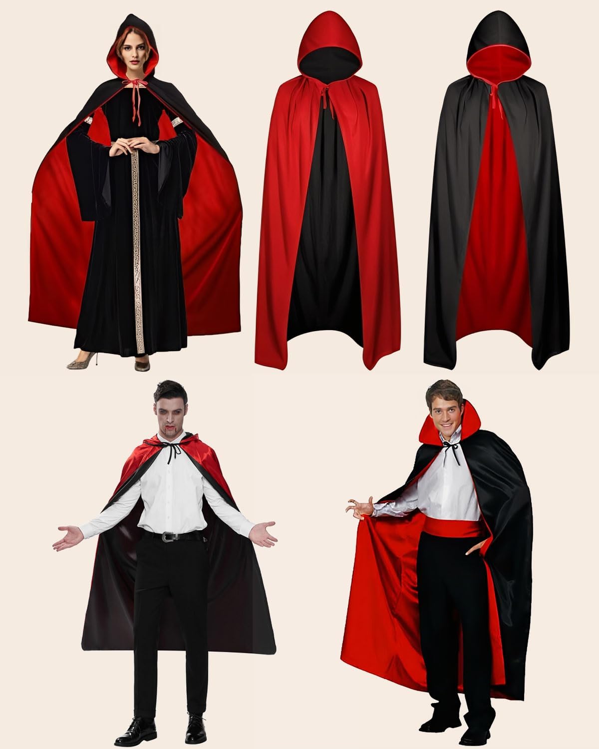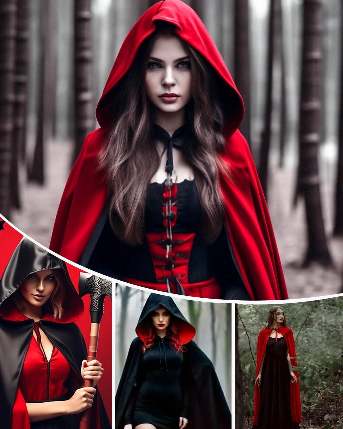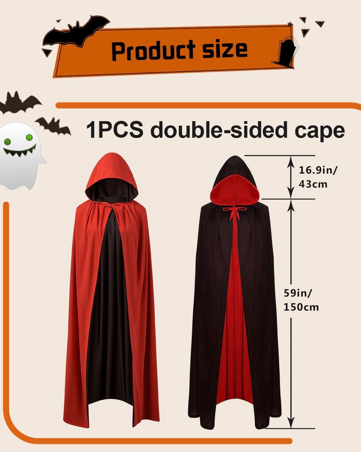 ♕ Il mantello ha una lunghezza totale di 150 cm (compresa l'altezza del cappello) ed è adatto per giacche da adulto. ♕Cappa double face, può essere usata come cappa nera o rossa, per soddisfare le diverse esigenze delle feste. ♕ Il cappuccio del mantello è ampio e molto morbido, adatto alla maggior parte delle circonferenze della testa. ♕ Il cordoncino sul mantello lo fissa efficacemente, impedendogli di volare via con il vento. ♕ Adatto per feste di Halloween, carnevale, streghe, vampiri, giochi di ruolo, molto misterioso da indossare