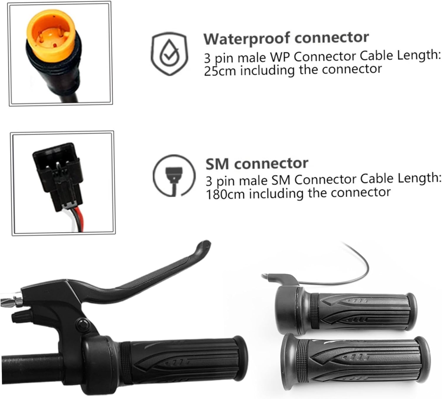 Stabile e impermeabile: dotato di un robusto connettore impermeabile a 3 pin, questo acceleratore è costruito per resistere a varie condizioni atmosferiche, garantendo prestazioni e affidabilità di lunga durata in qualsiasi ambiente esterno. Costruzione leggera e portatile: progettata per comodità, questa valvola a farfalla è leggera e portatile, garantendo che non aggiunga peso inutile alla tua eBike o allo scooter elettrico pieghevole, rendendo le tue pedalate più piacevoli. Compatibilità versatile: questo acceleratore è compatibile con la maggior parte delle eBike e degli scooter elettrici pieghevoli, offrendo versatilità agli utenti che desiderano aggiornare o sostituire il loro attuale acceleratore con un'opzione di qualità. Prestazioni migliorate: il meccanismo a rotazione completa migliora l'accelerazione e la reattività, consentendo ai ciclisti di sperimentare prestazioni e controllo migliorati durante le corse, garantendo ogni volta viaggi fluidi ed efficienti. Design intuitivo: l'acceleratore a rotazione completa è progettato per un facile controllo, offrendo un'esperienza di guida e intuitiva, rendendolo perfetto sia per i ciclisti esperti di eBike che per i principianti.
